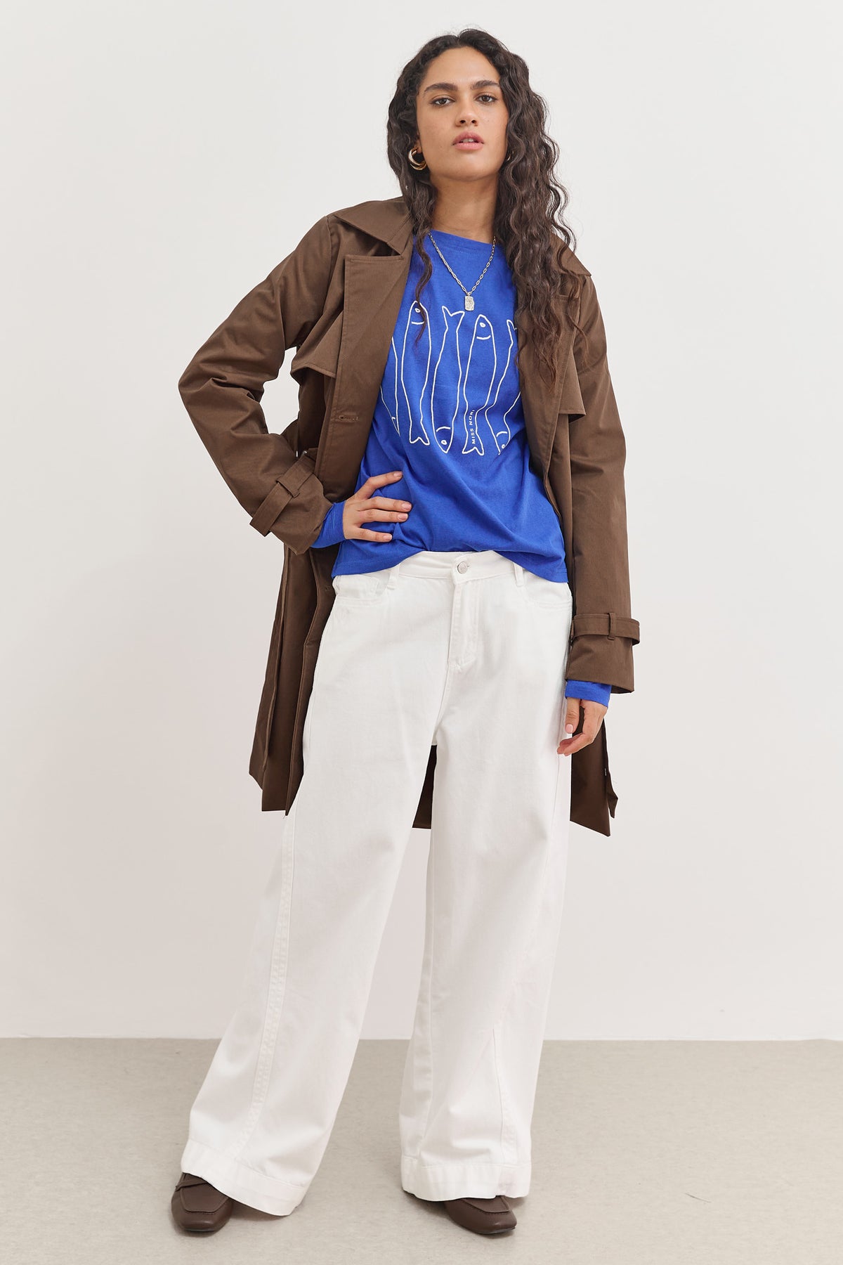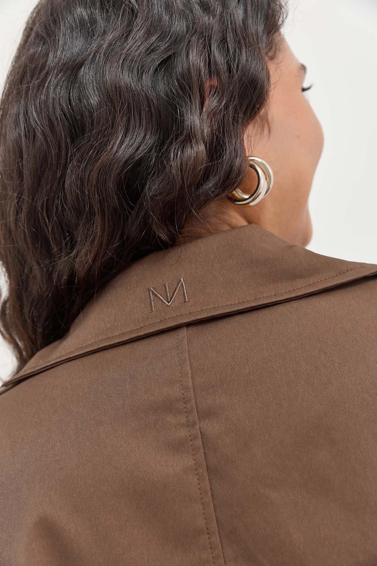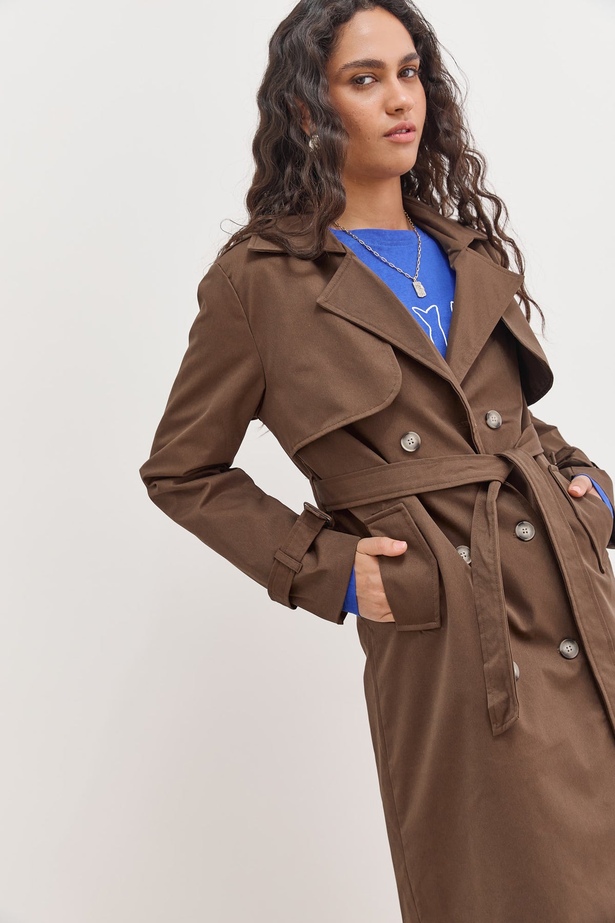 מעיל טראנץ׳ ארוך בעל בטנה עם הדפסי לוגו בשילוב רקמת לוגו בצווארון עם כפתורים וחגורת קשירה