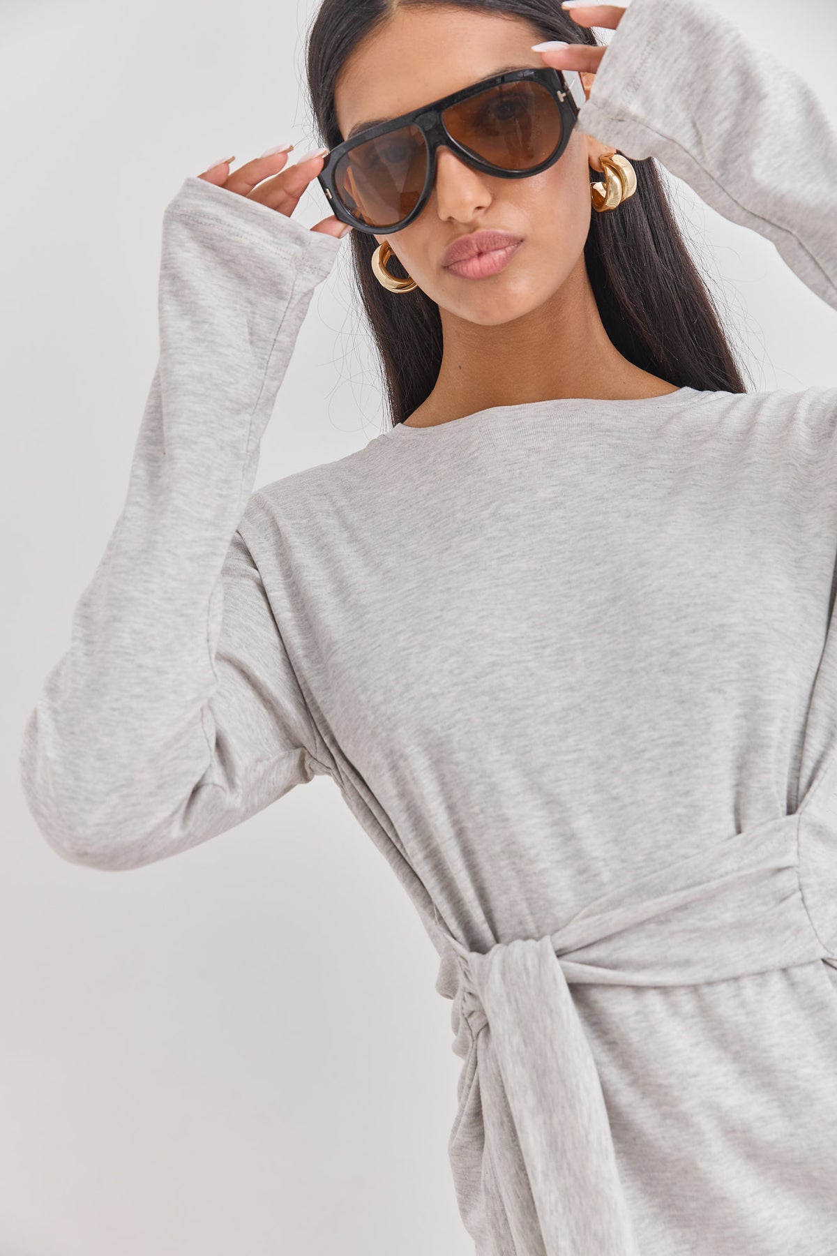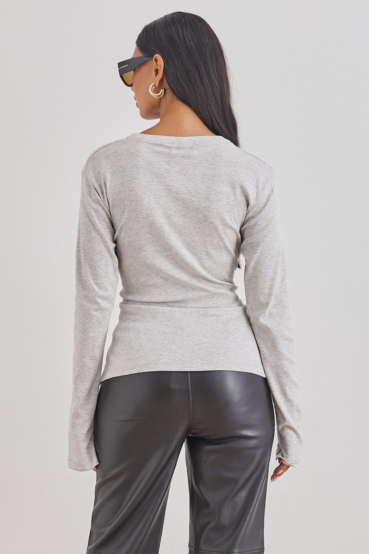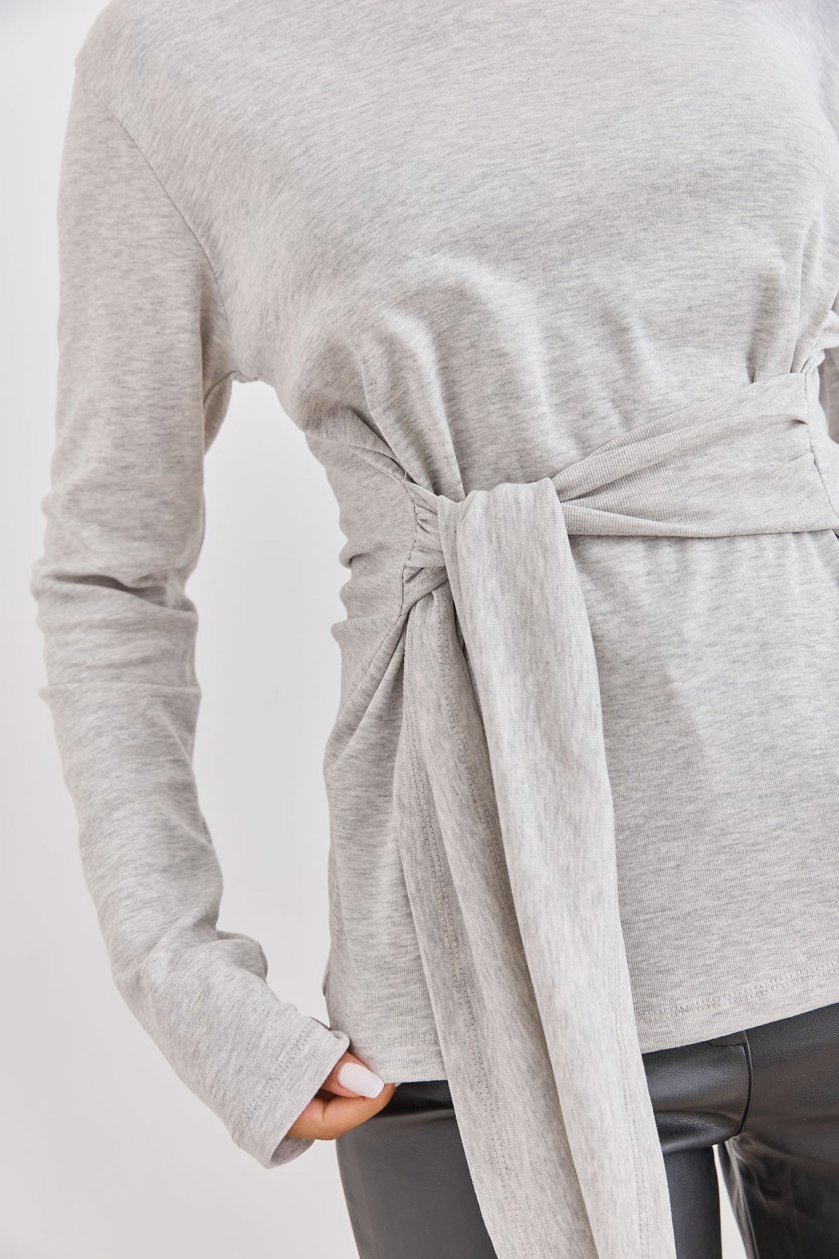 חולצה עם שרוולים ארוכים בשילוב רצועות קשירה שניתן לקשור במגוון דרכים