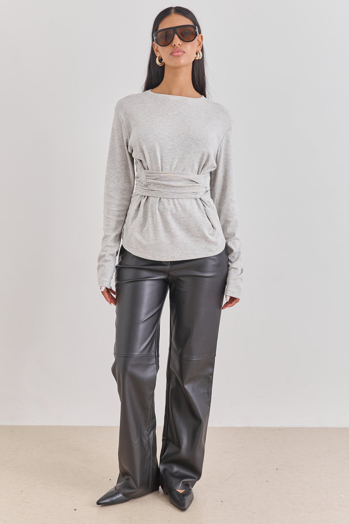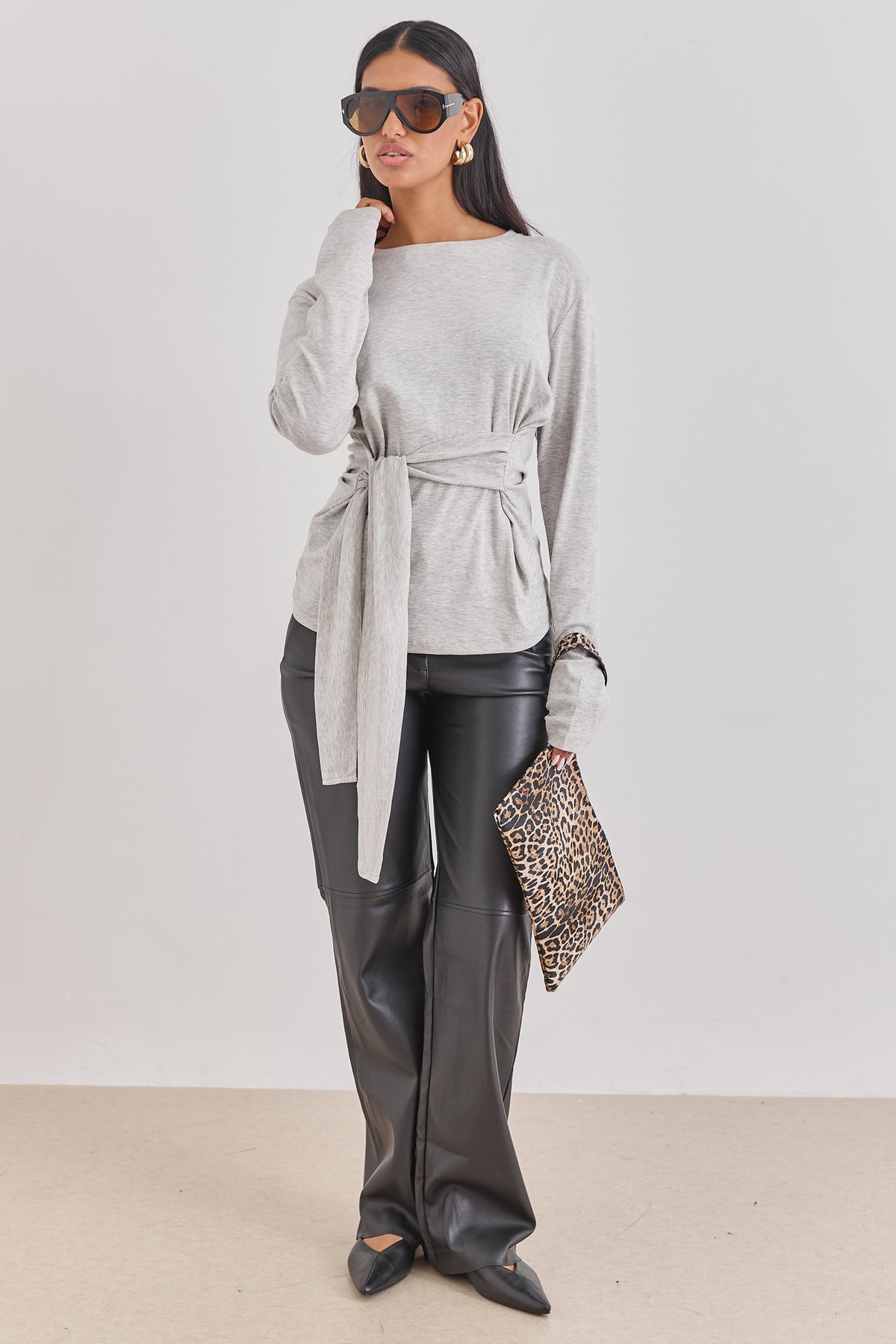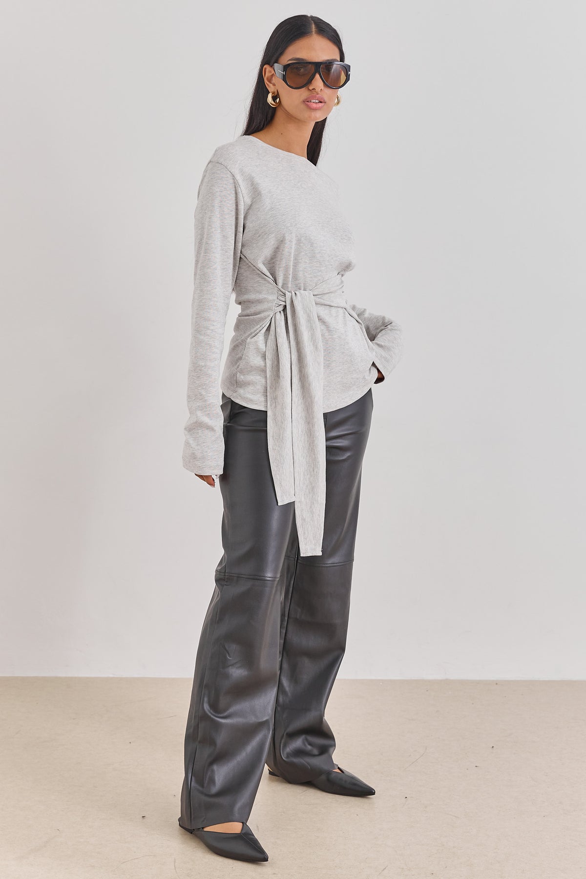 חולצה עם שרוולים ארוכים בשילוב רצועות קשירה שניתן לקשור במגוון דרכים