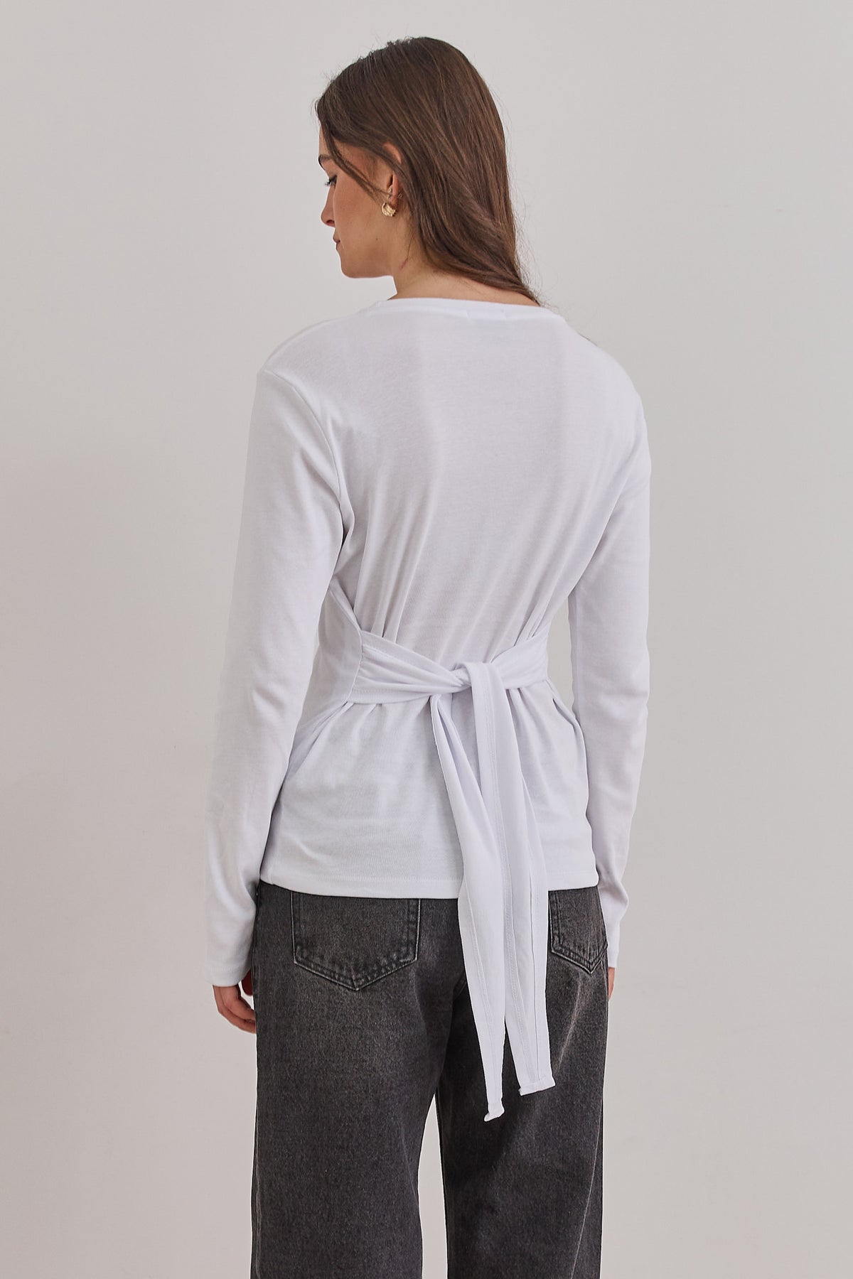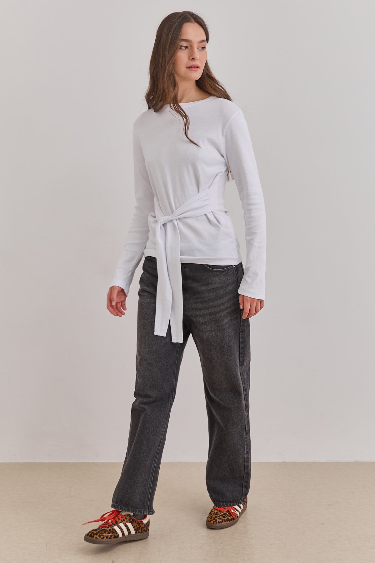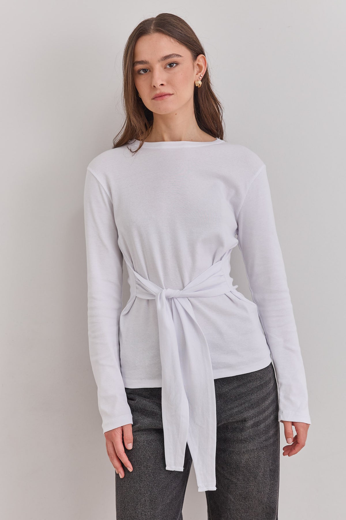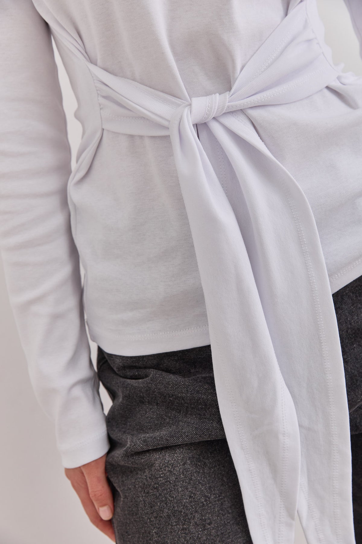 חולצה עם שרוולים ארוכים בשילוב רצועות קשירה שניתן לקשור במגוון דרכים