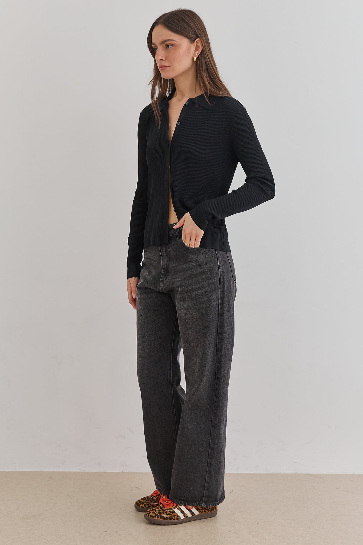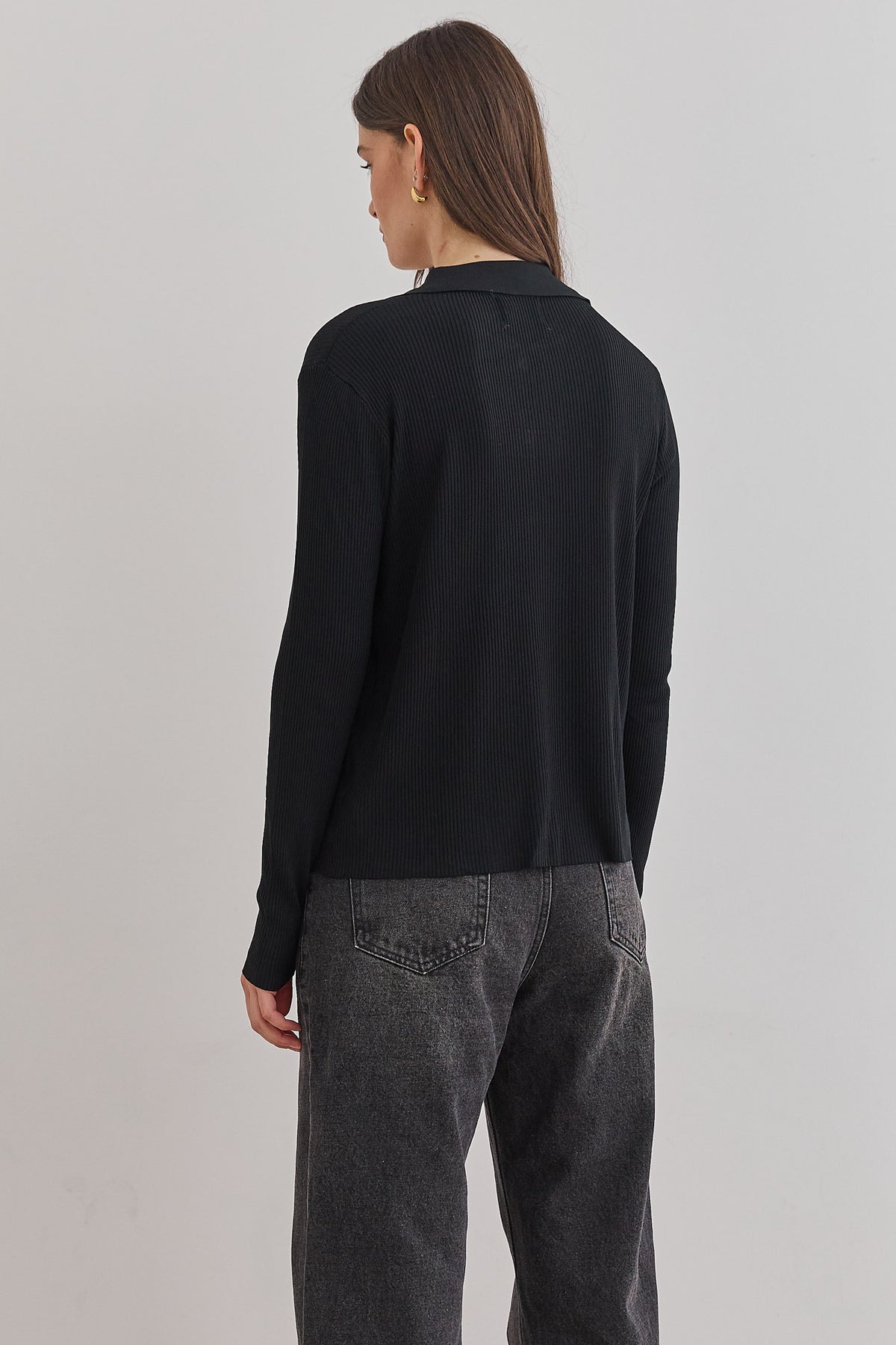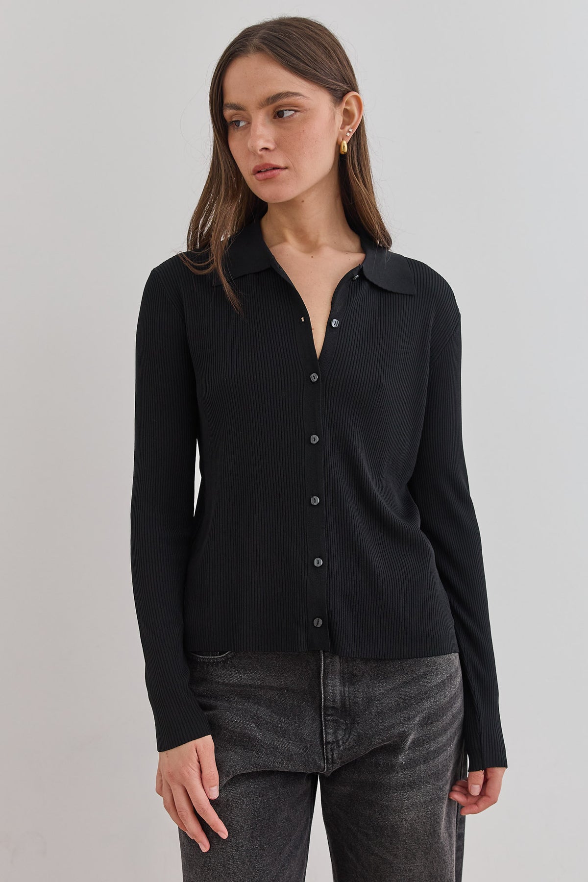 סריג דק מבד ריב בשילוב כפתורים וצווארון פולו