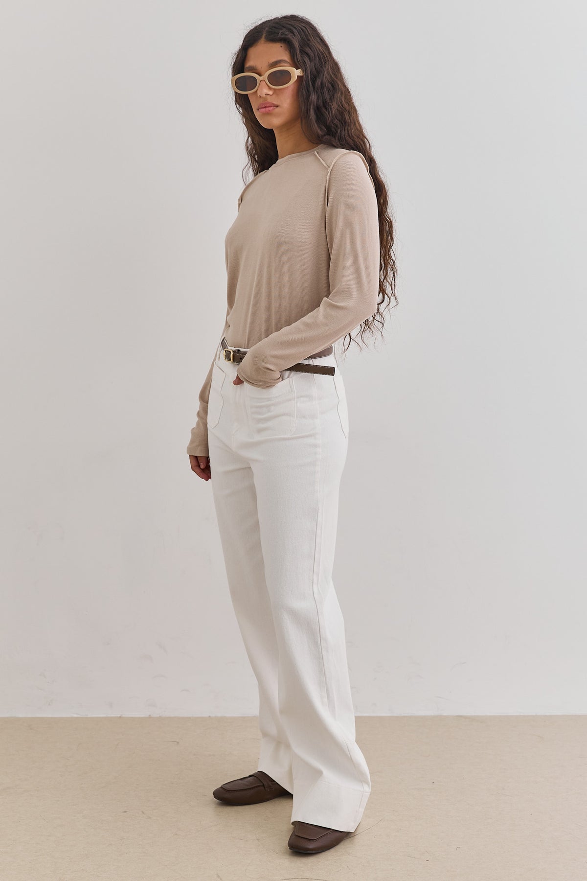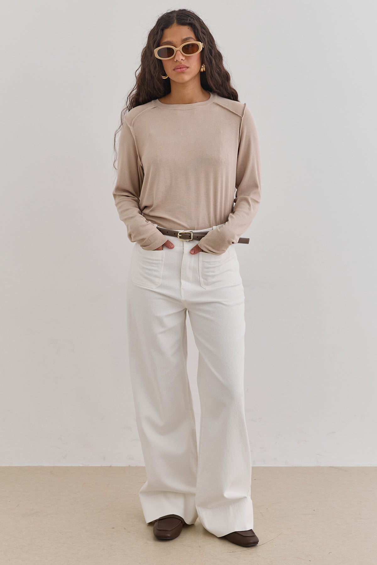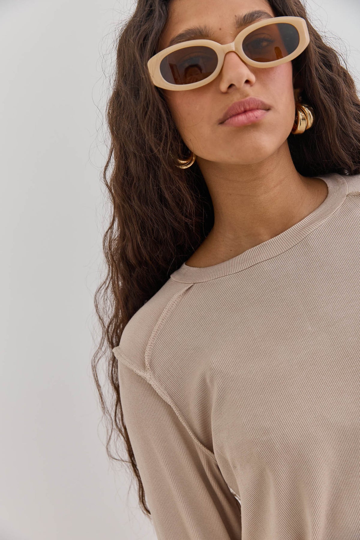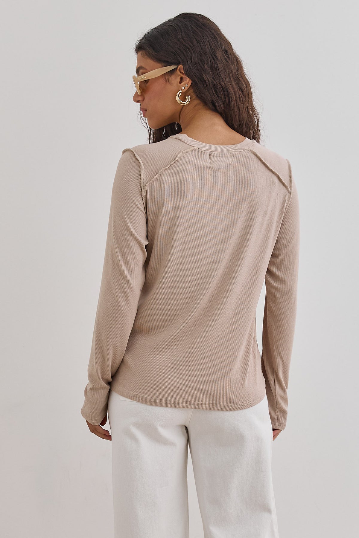 חולצת בייסיק דקה עם תיפורים בולטים, שרוולים ארוכים ומחשוף ניקי