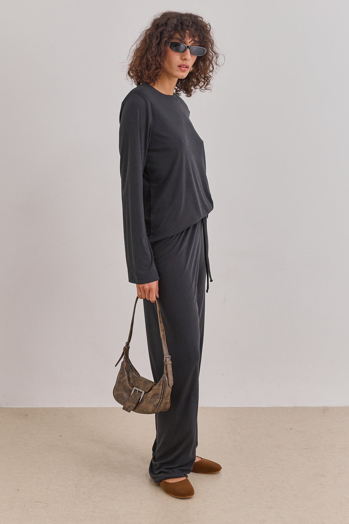 מכנסי ברטה גזרה ישרה גומי מותן | שחור