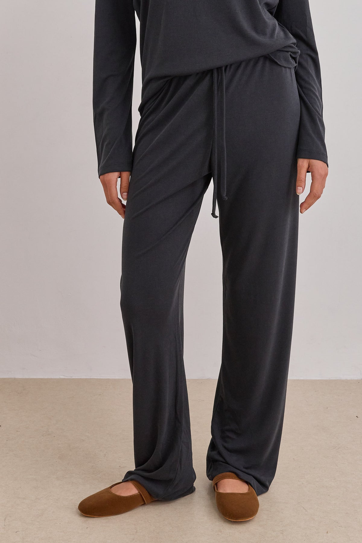 מכנסיים מבד נשפך בטקסטורת ריב בגזרה ישרה בשילוב גומי במותן ושרוך