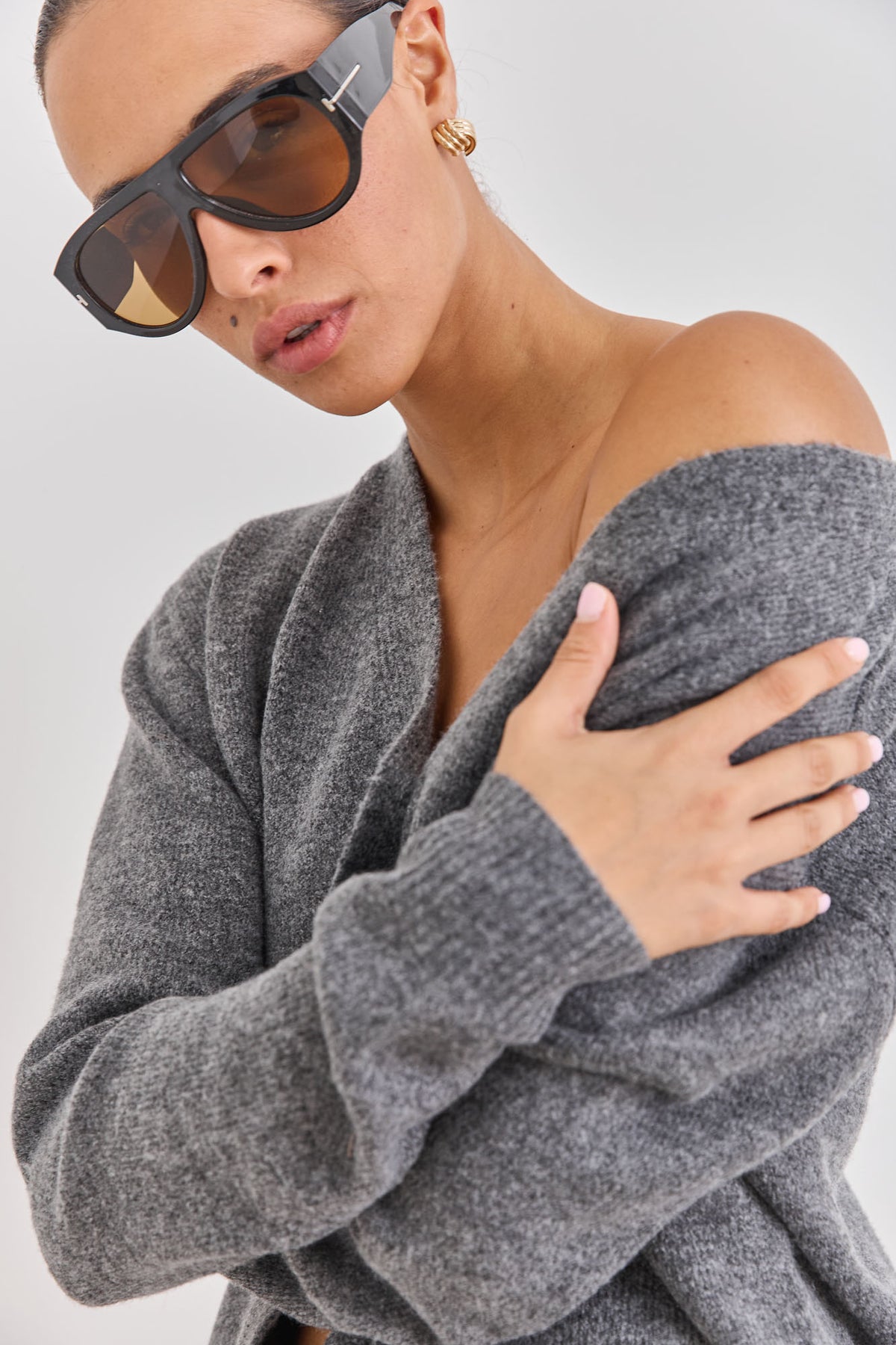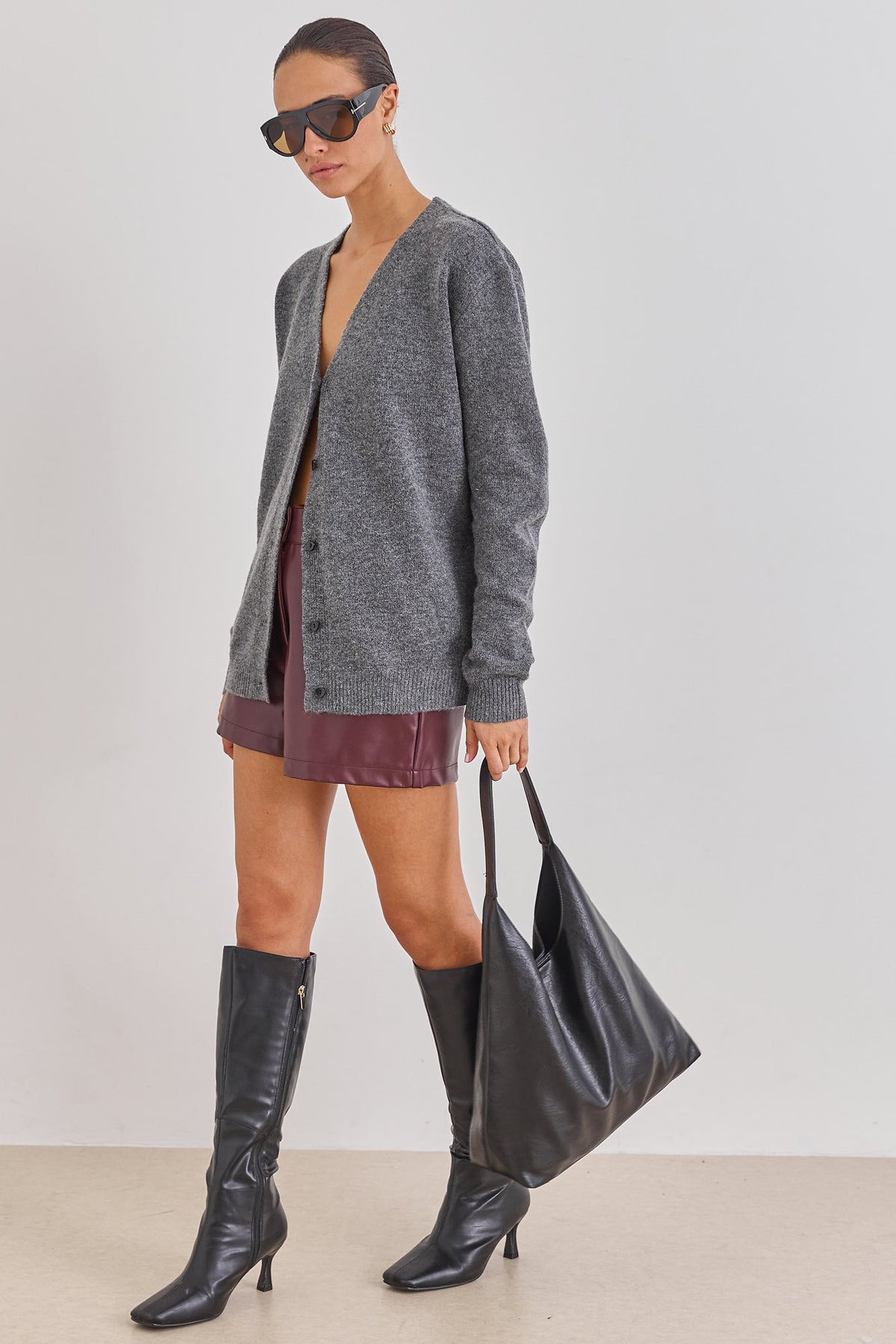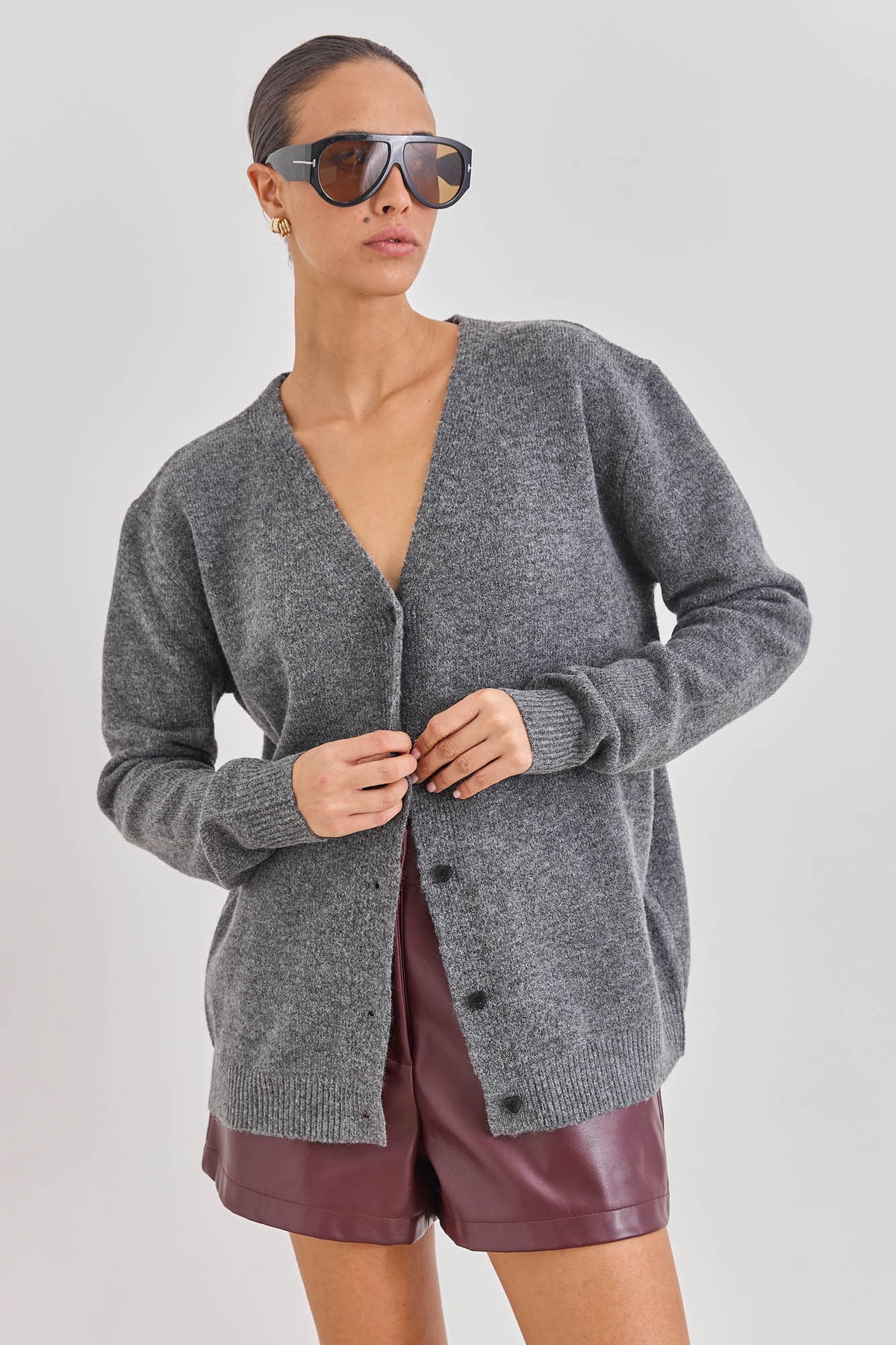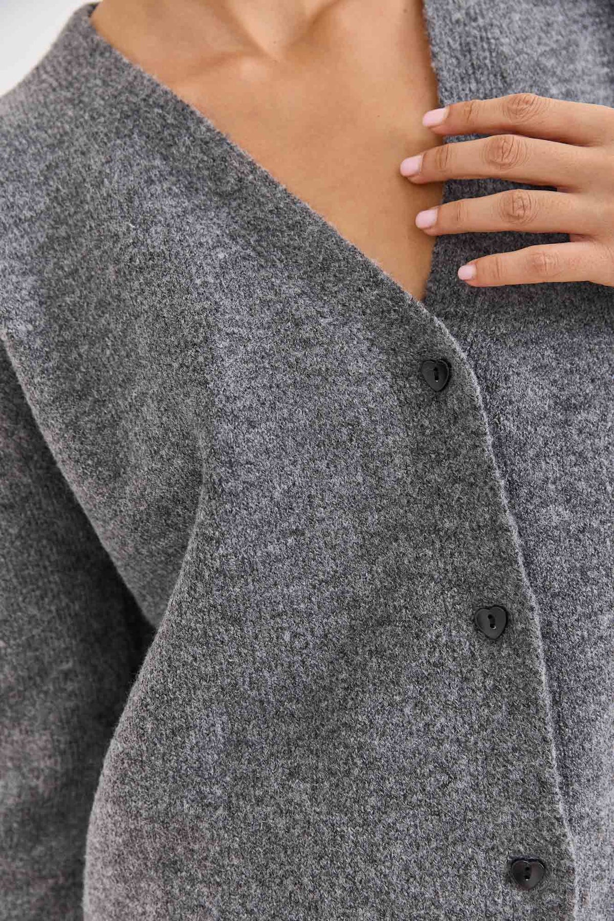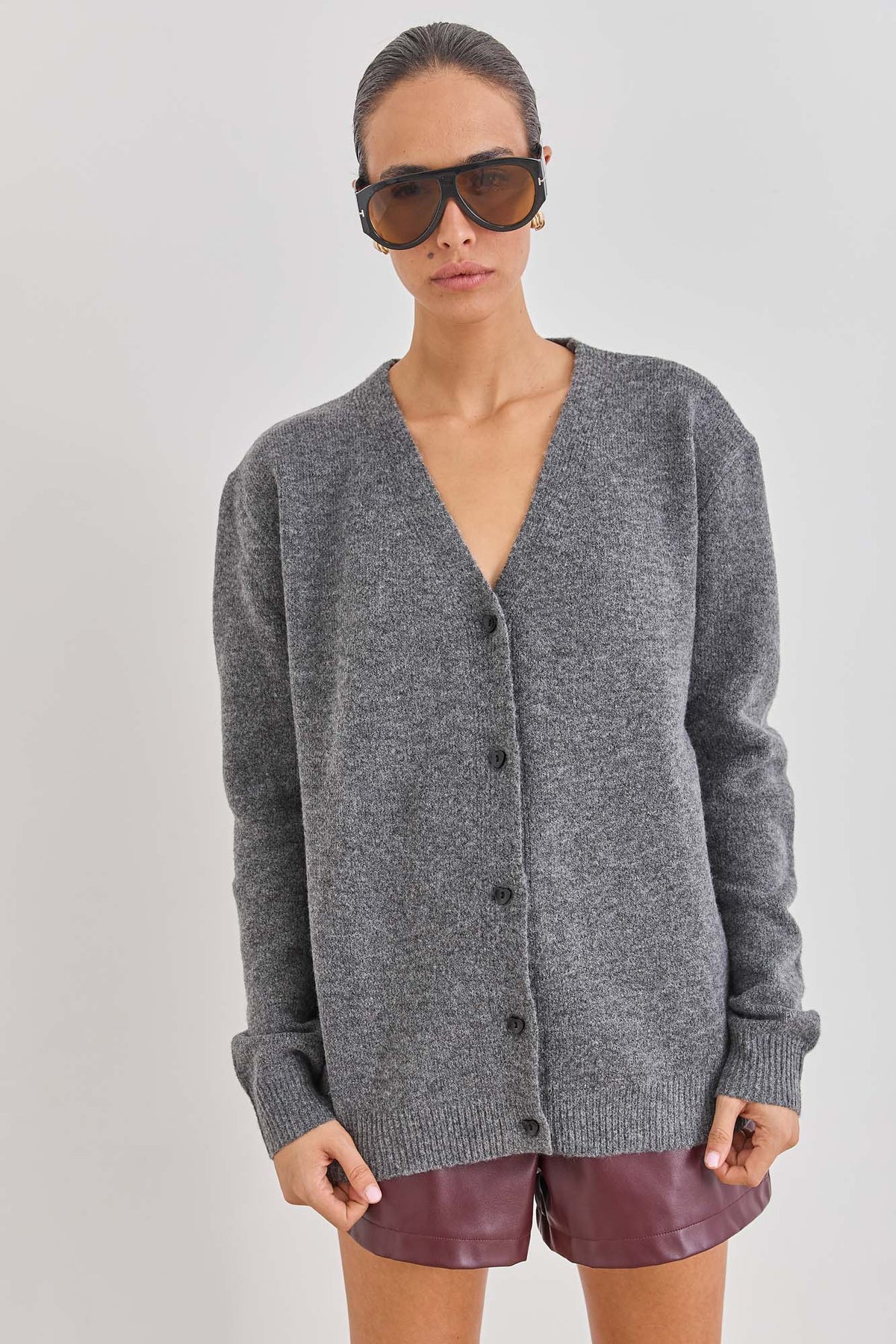 קרדיגן מבד סריג בגזרת אוברסייז בשילוב כפתורי לב