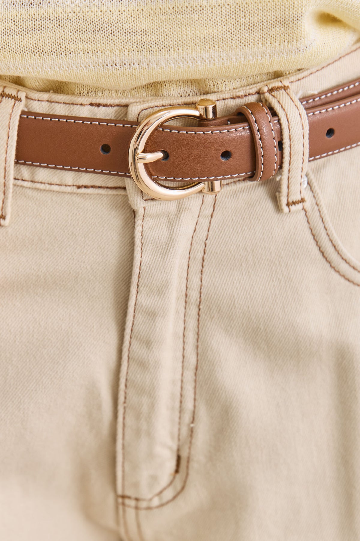 חגורת דמוי עור קלארו תיפורים בולטים | חום