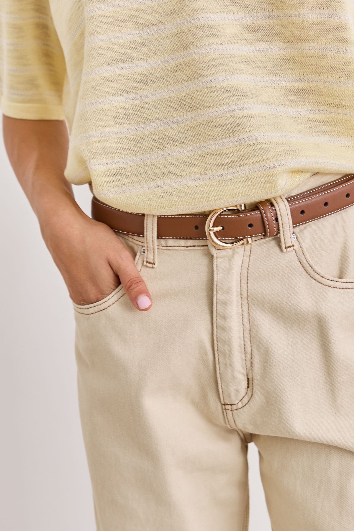 חגורת דמוי עור קלאסית בשילוב אבזם זהוב ותיפורים בולטים