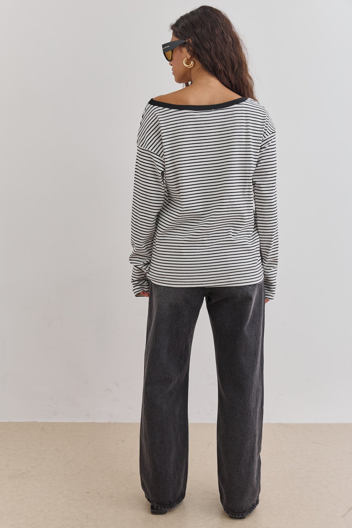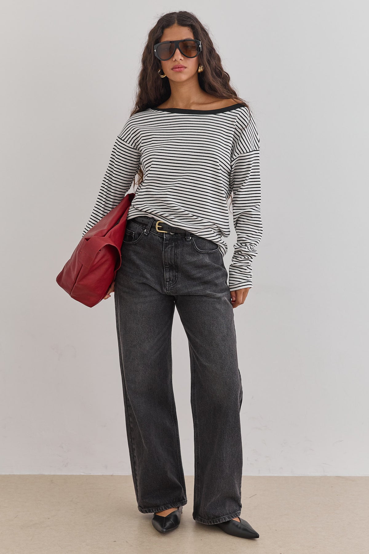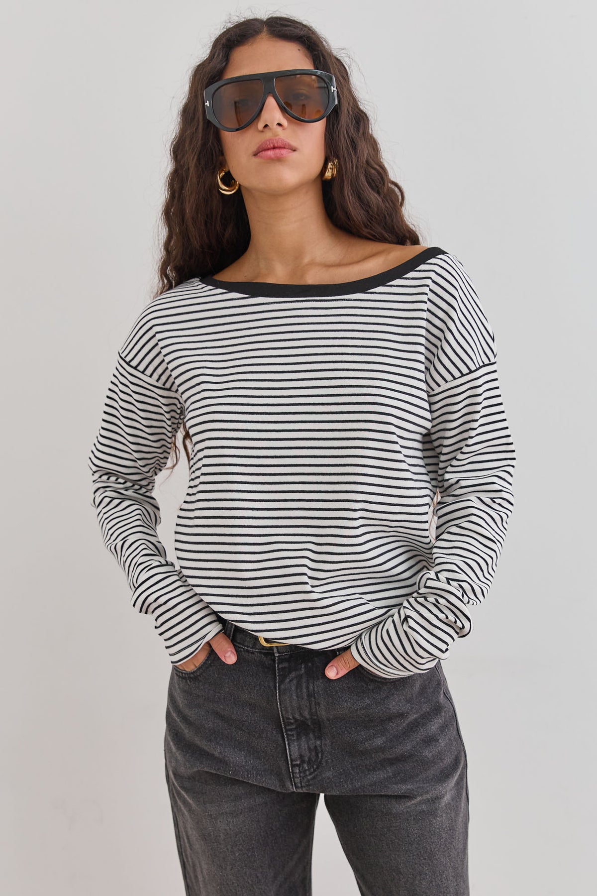 טי שירט ברקמת פסים, לטי שירט שרוולים ארוכים ומפתח צוואר סירה