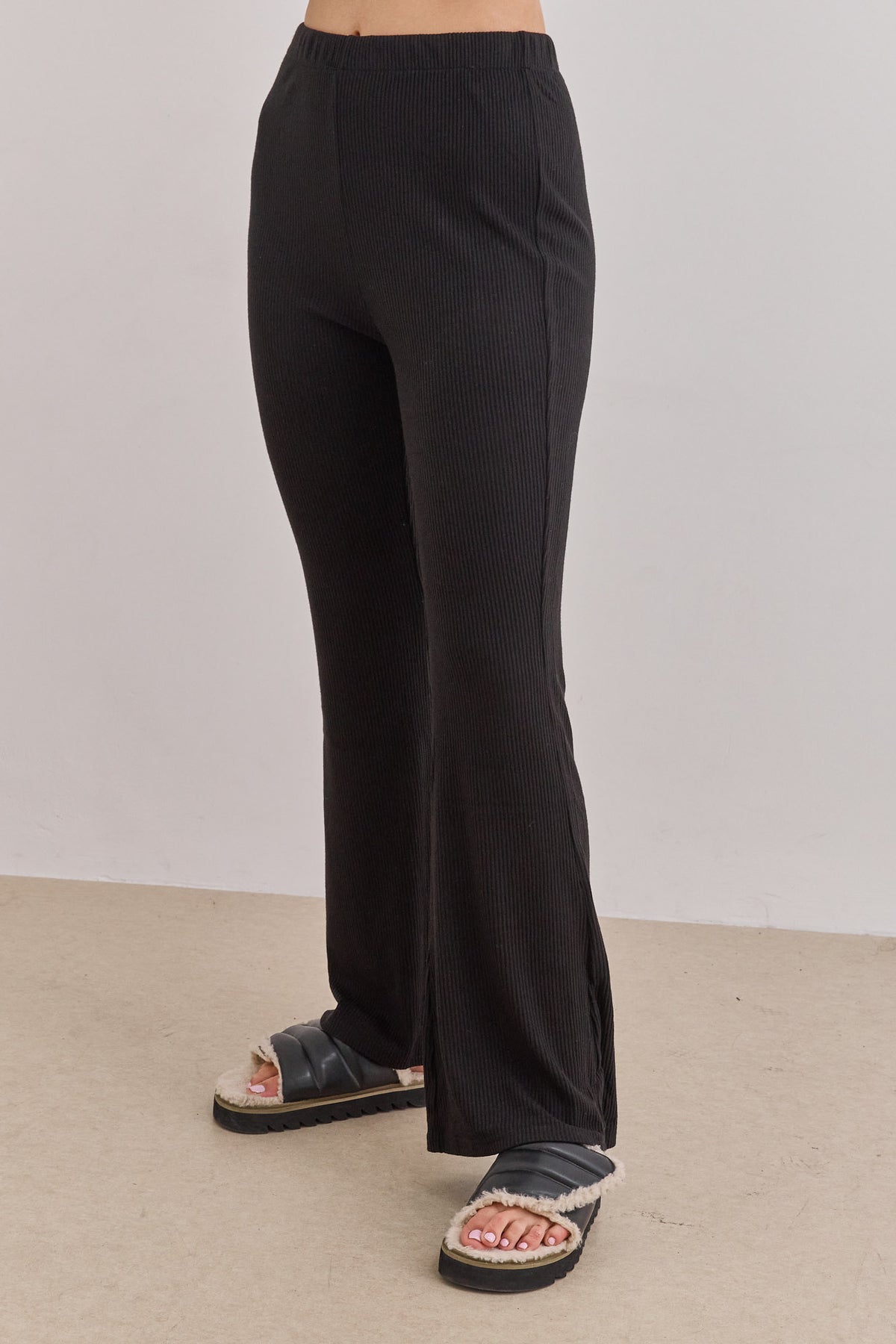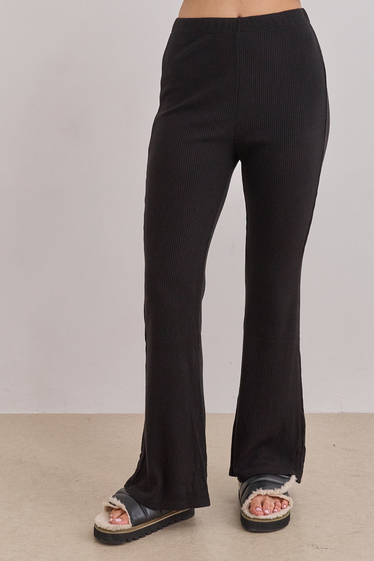 מכנסיים מבד סריג בסיומת מתרחבת בשילוב גומי במותן