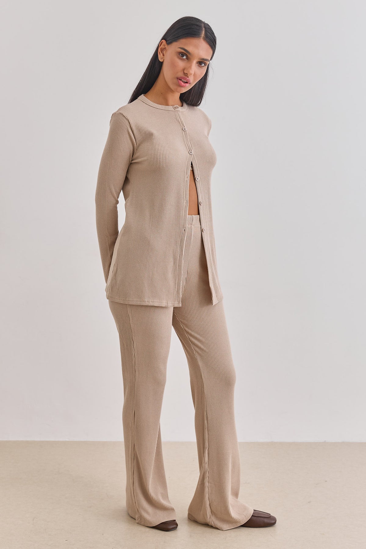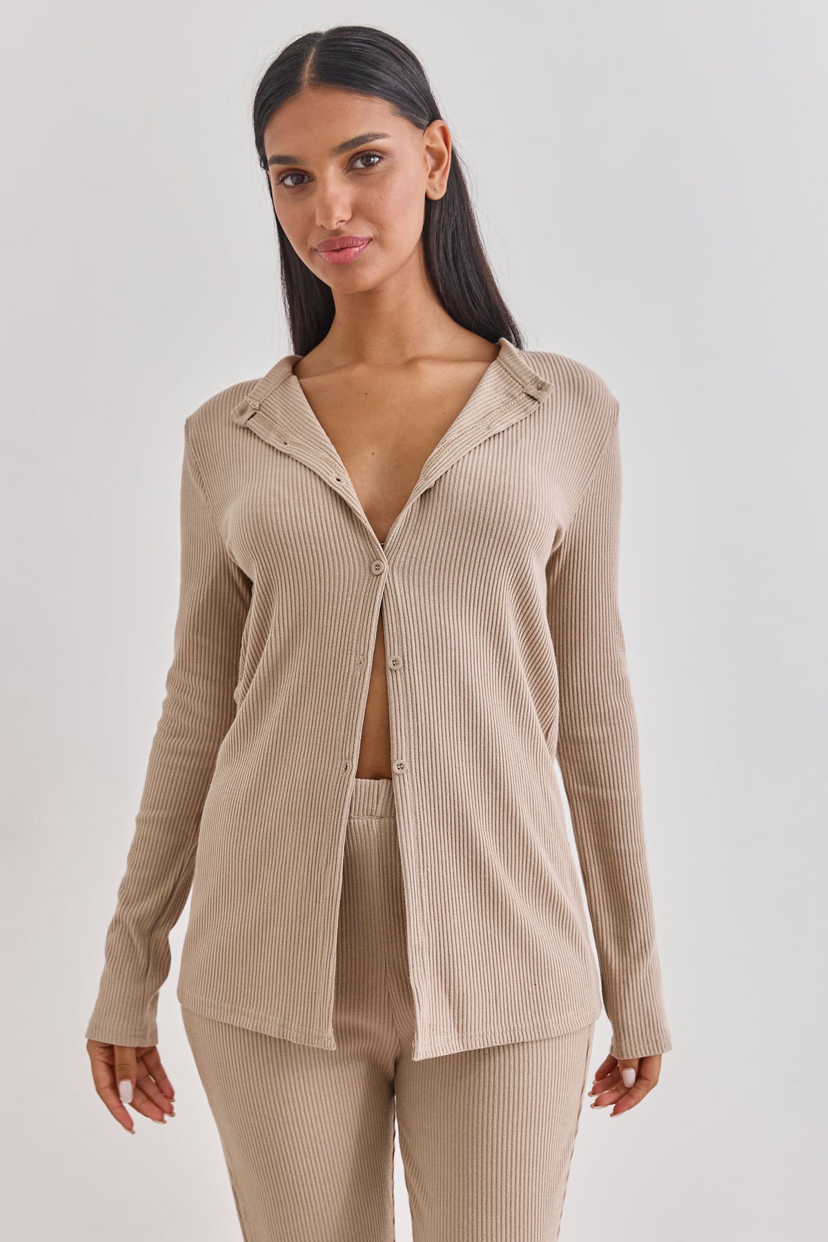 סריג מבד ריב בשילוב כפתורים בחלק העליון ומפתח קדמי
