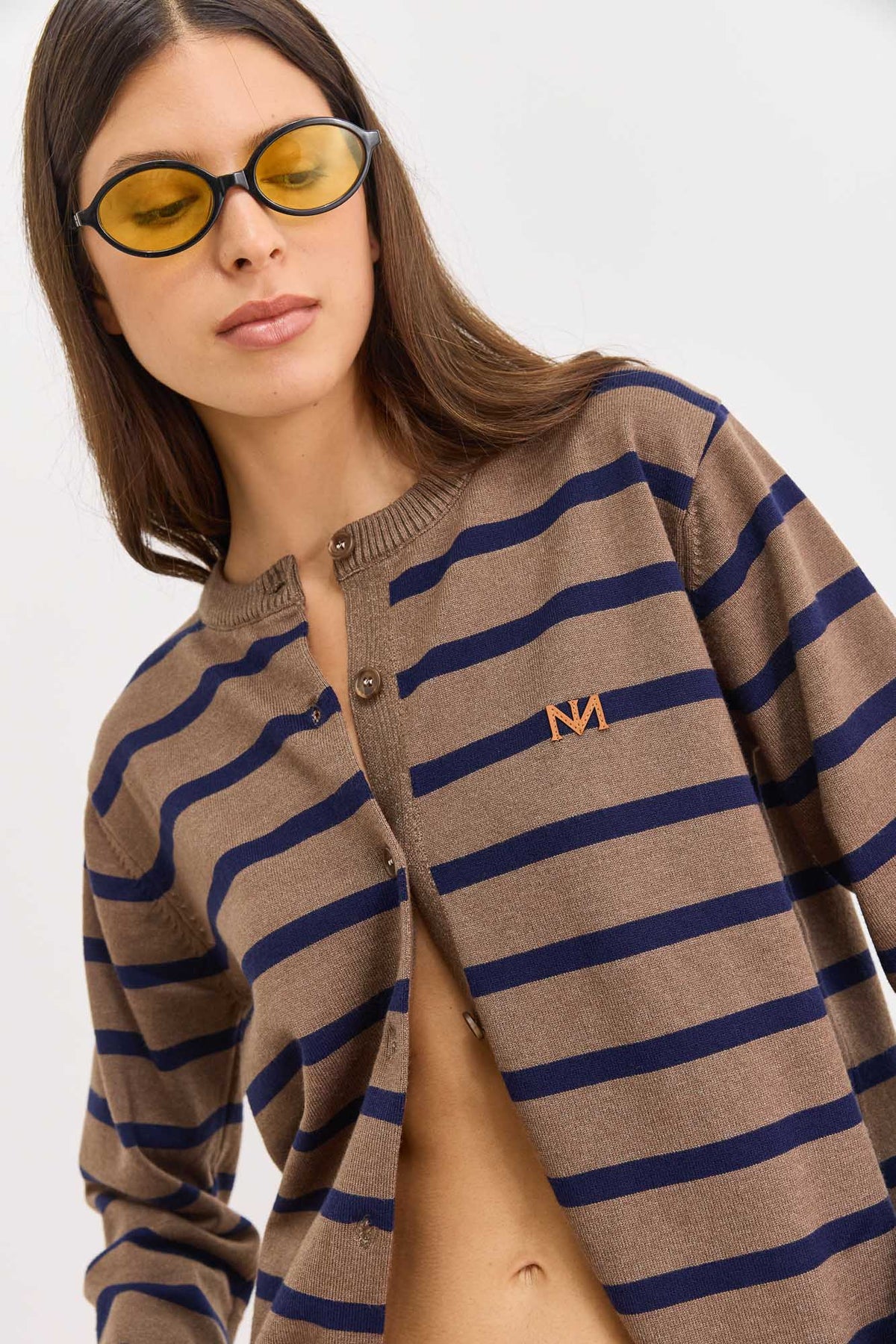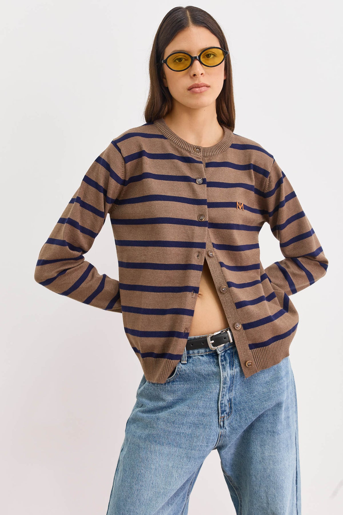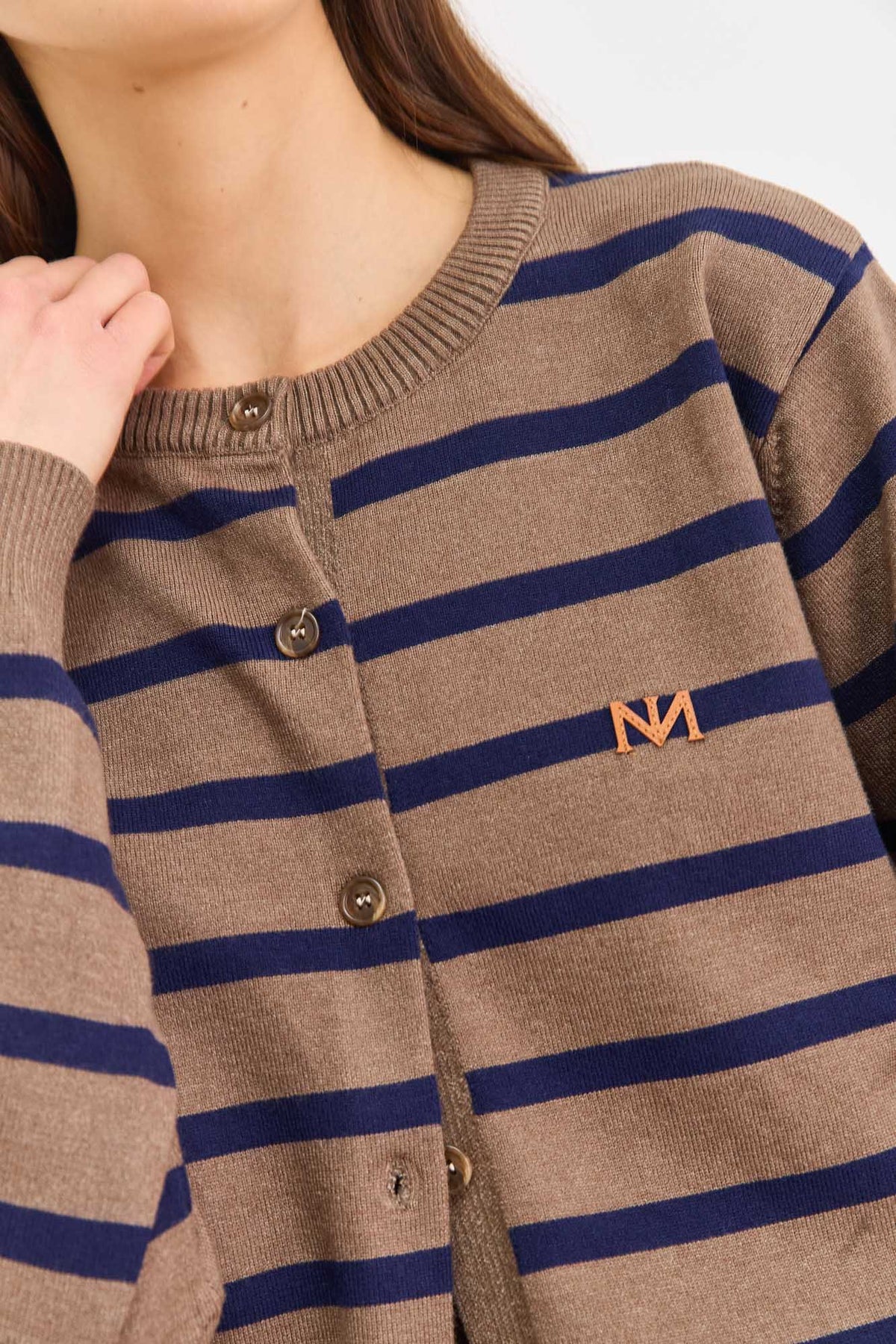 סריג כפתורים בדוגמת פסים בשילוב פאץ' לוגו