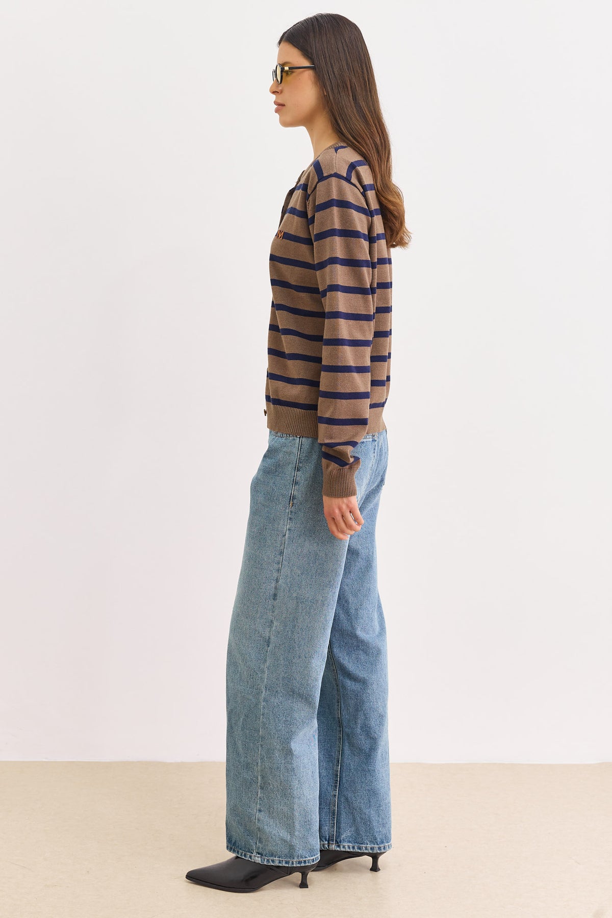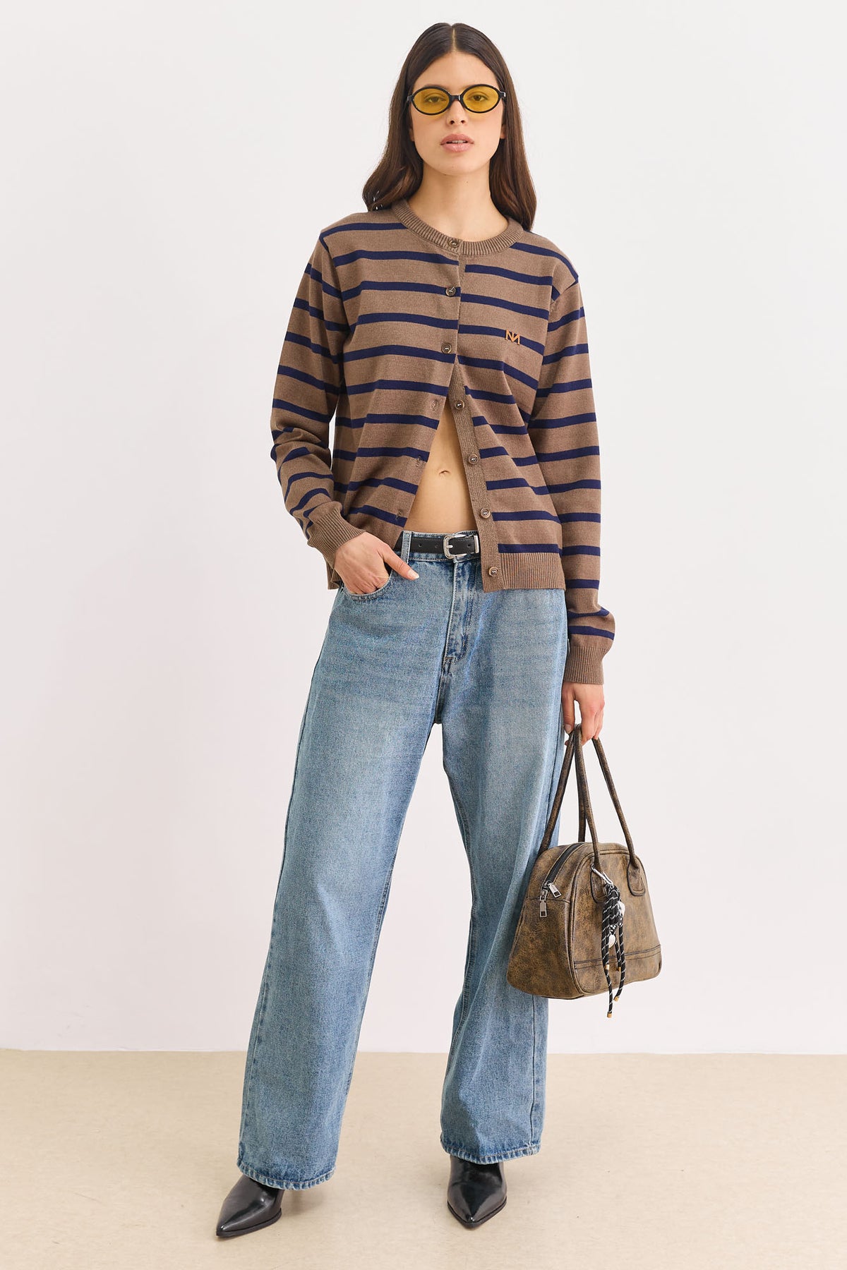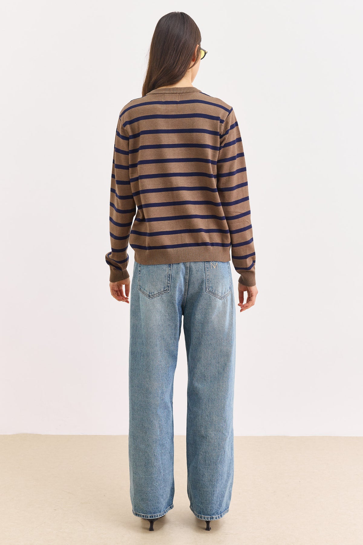 סריג כפתורים בדוגמת פסים בשילוב פאץ' לוגו