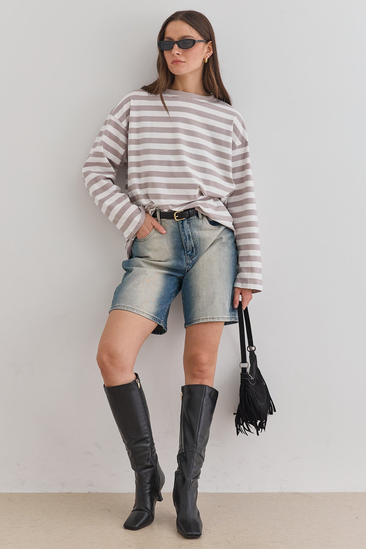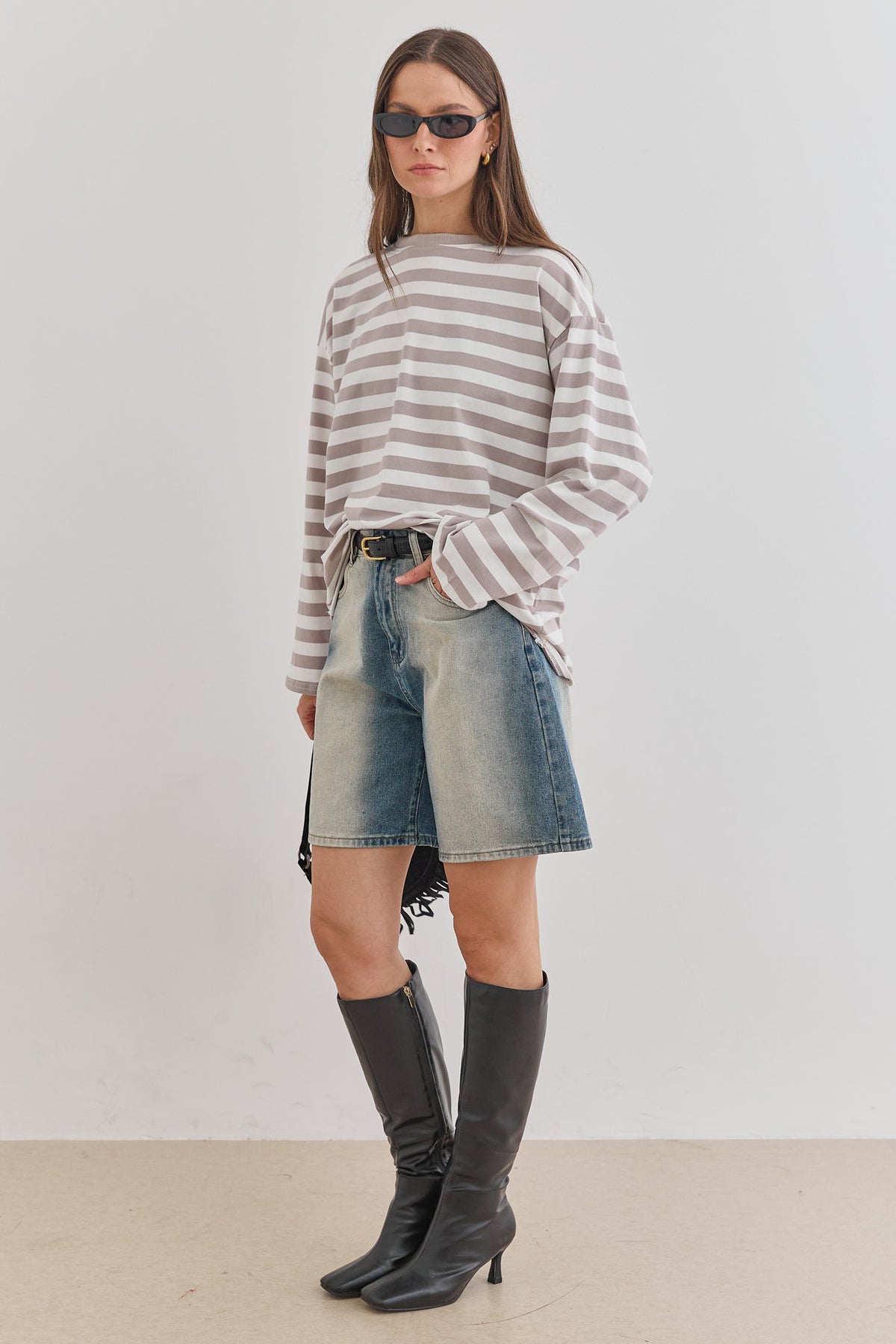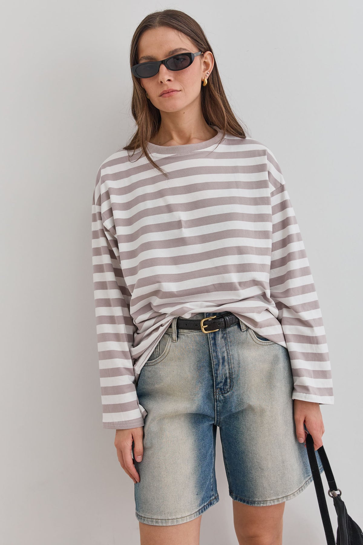 חולצת טי בדוגמת פסים אוברסייז וצווארון ניקי