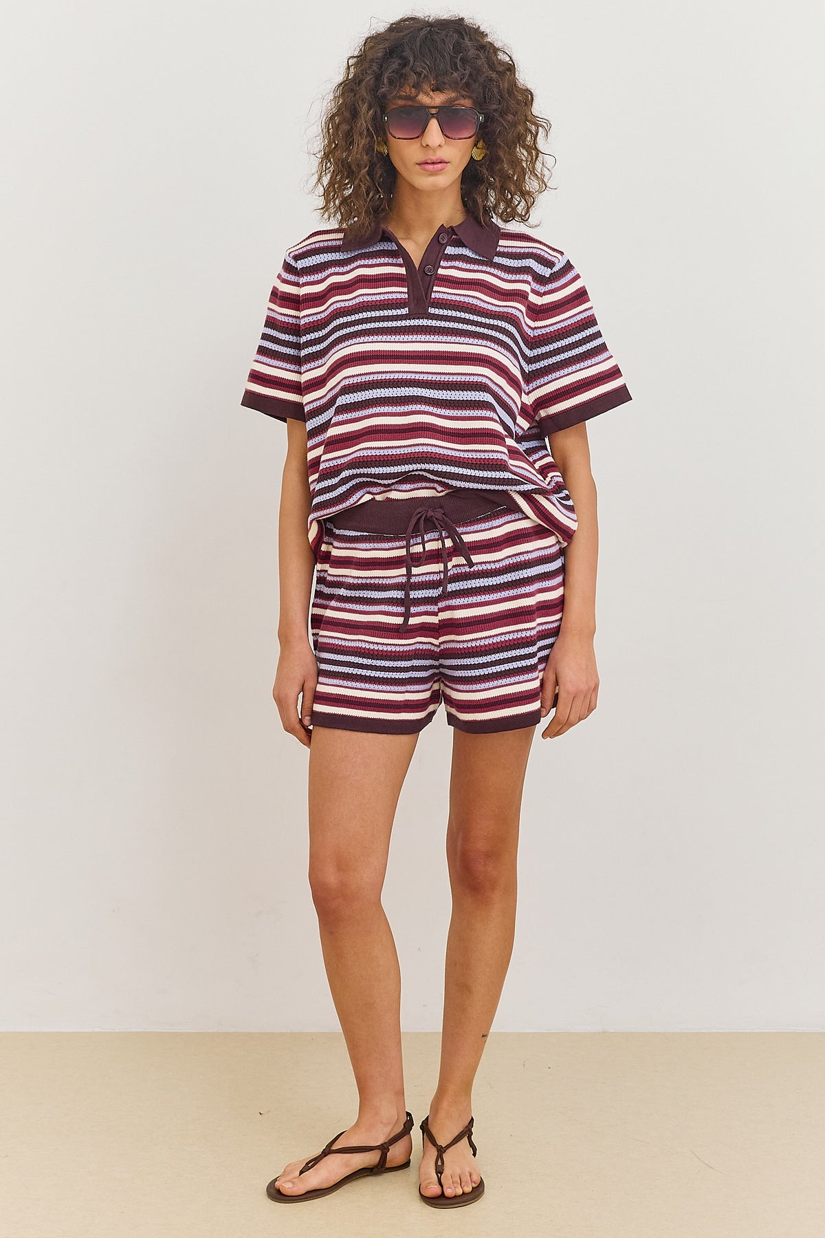 חולצת סריג לינה סטרייפס צווארון פולו | צבעוני