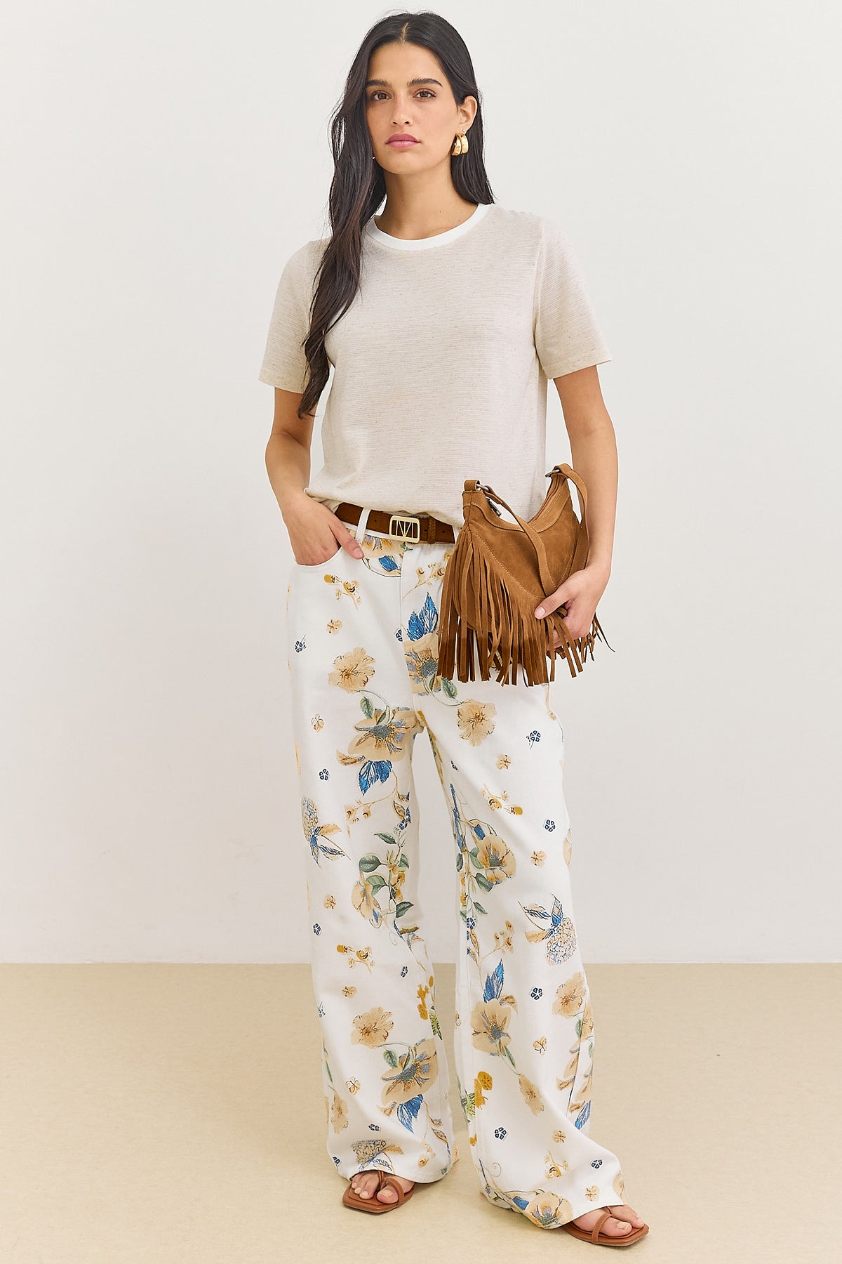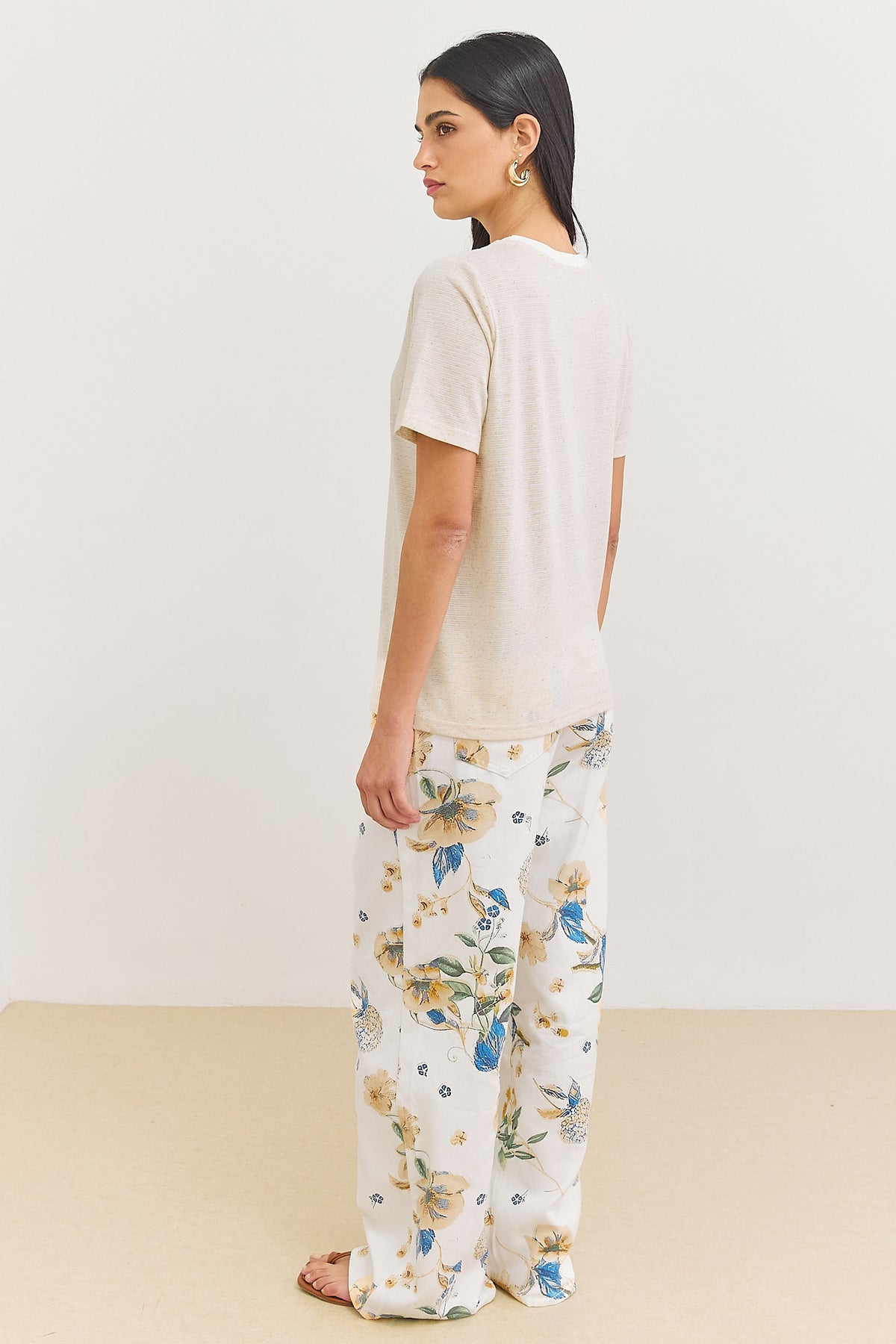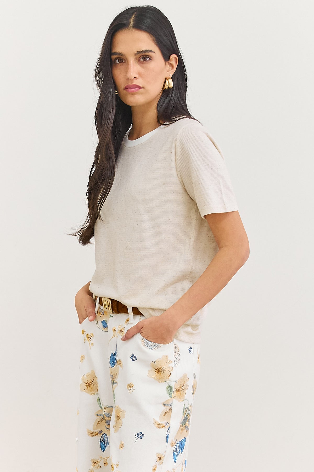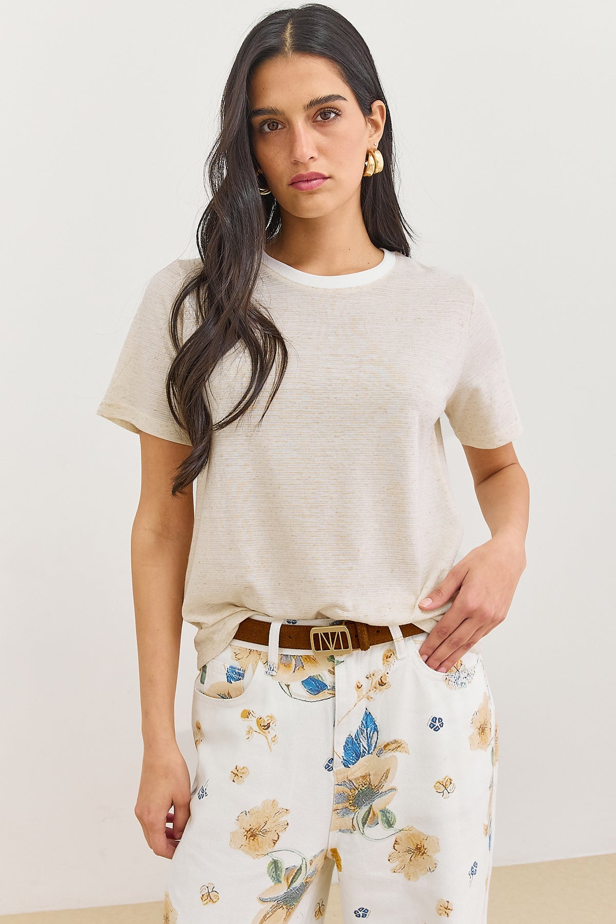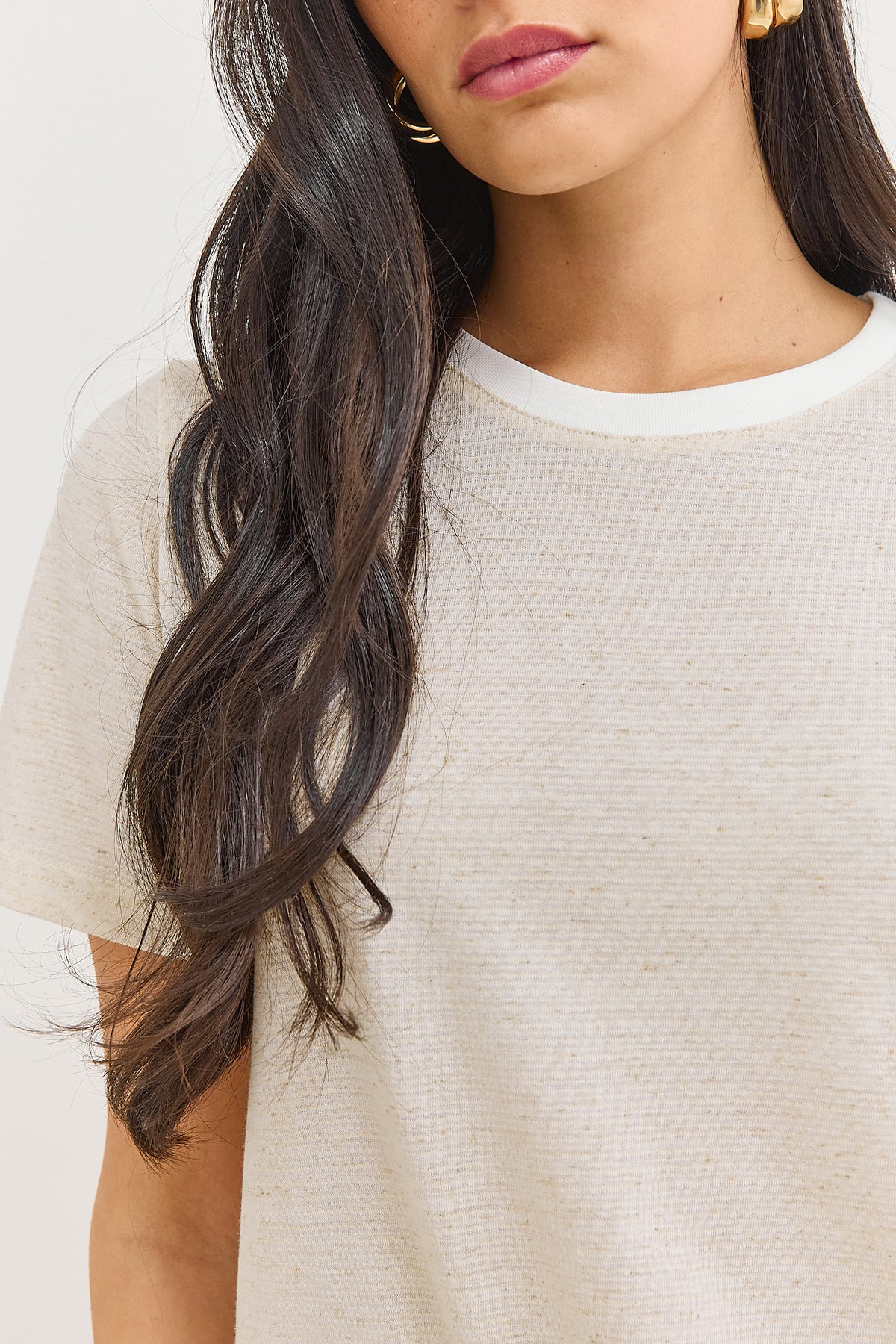 טי שירט לוקאס סטרייפס | בז'/לבן