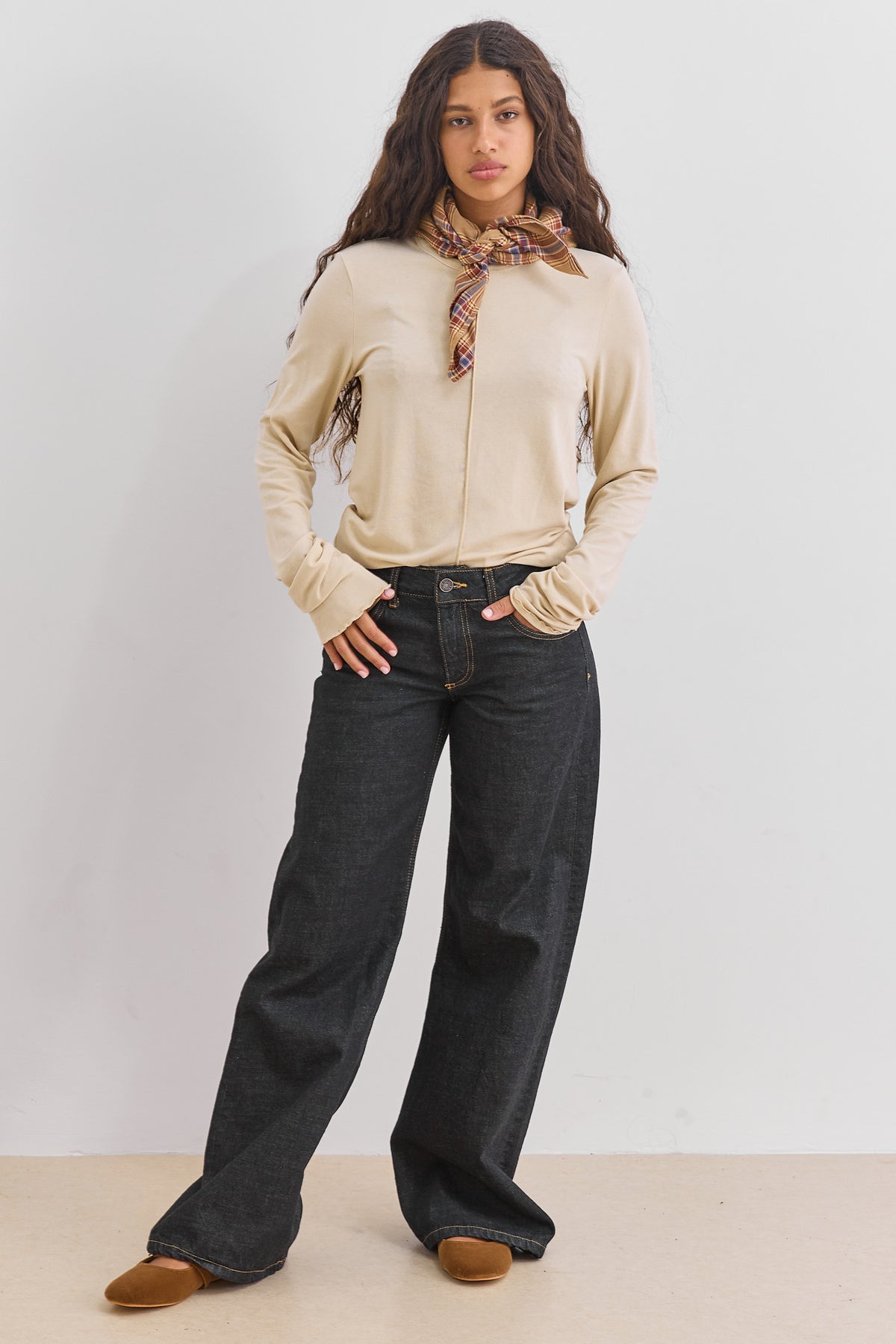 חולצת בייסיק עם תפר קדמי מובלט וסיומת תפר מלמלה