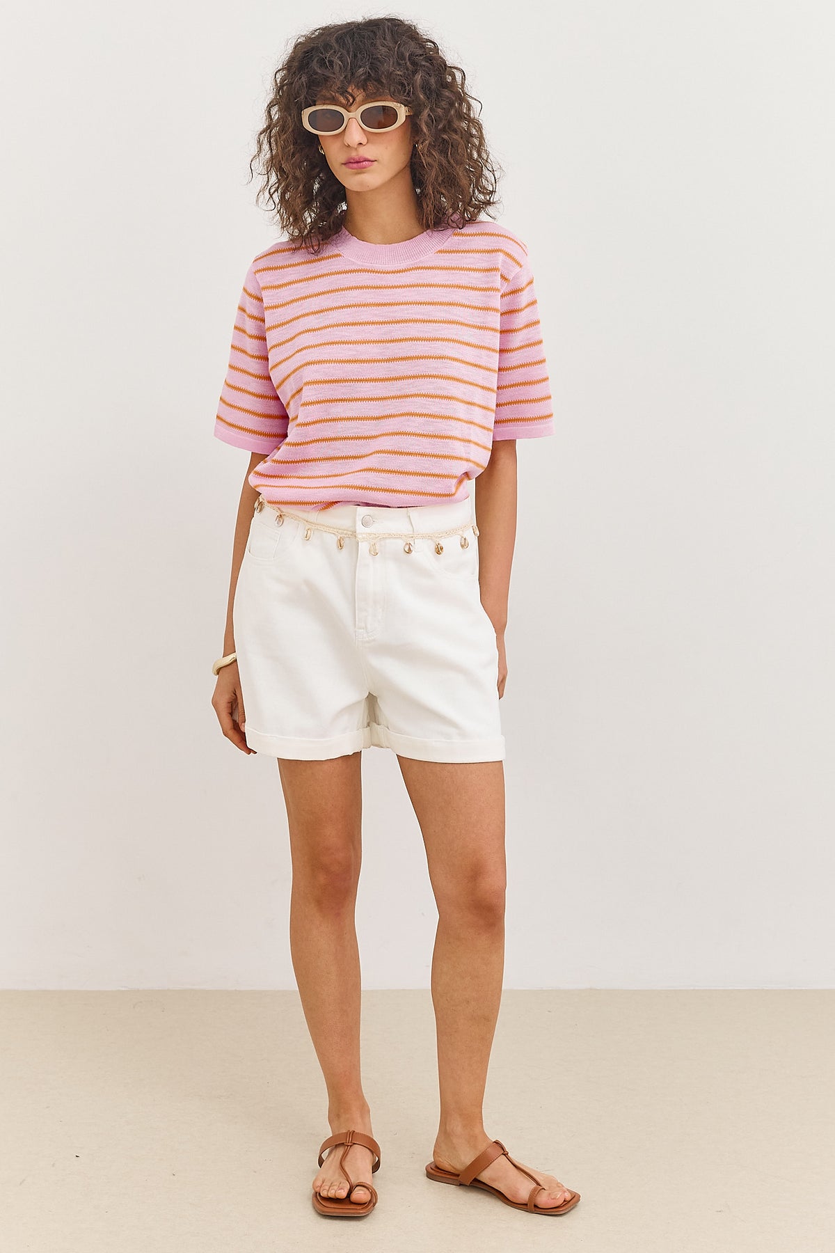 שורטס ג'ינס בגזרת משוחררת בשילוב אלמנט צדפות