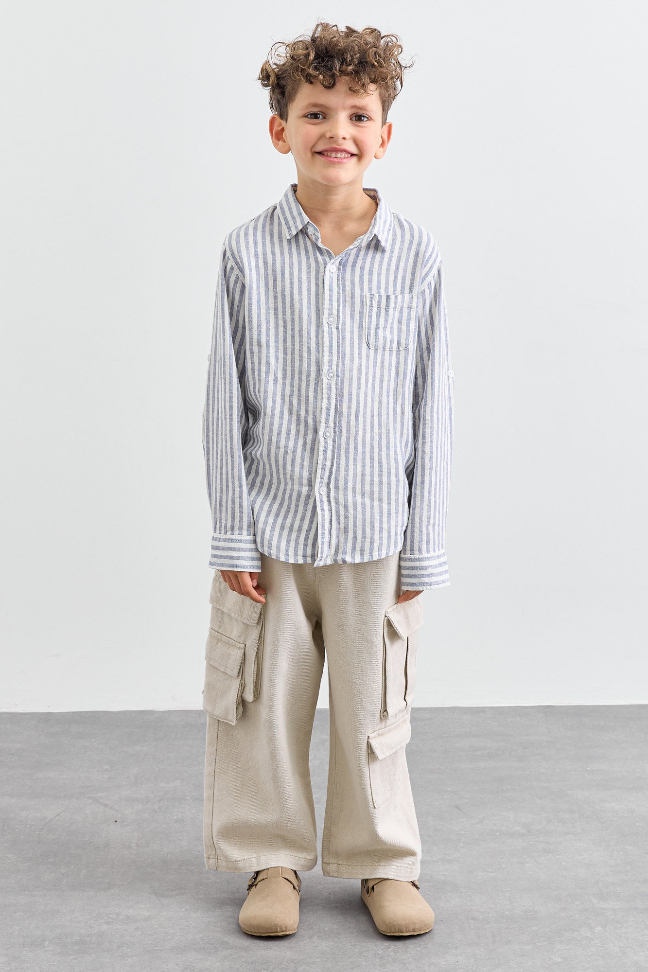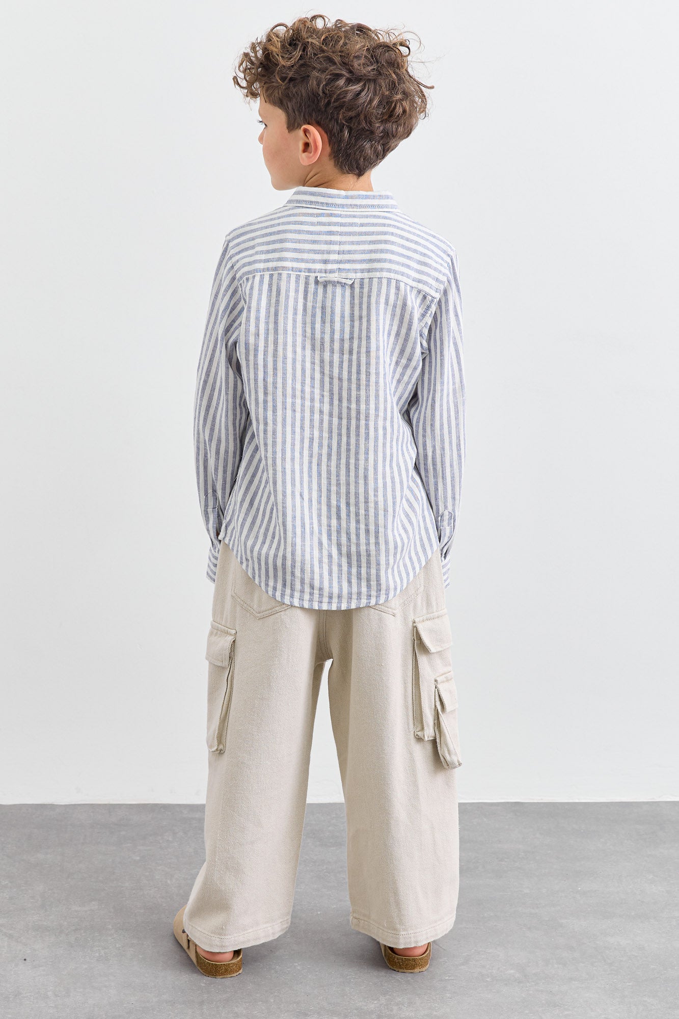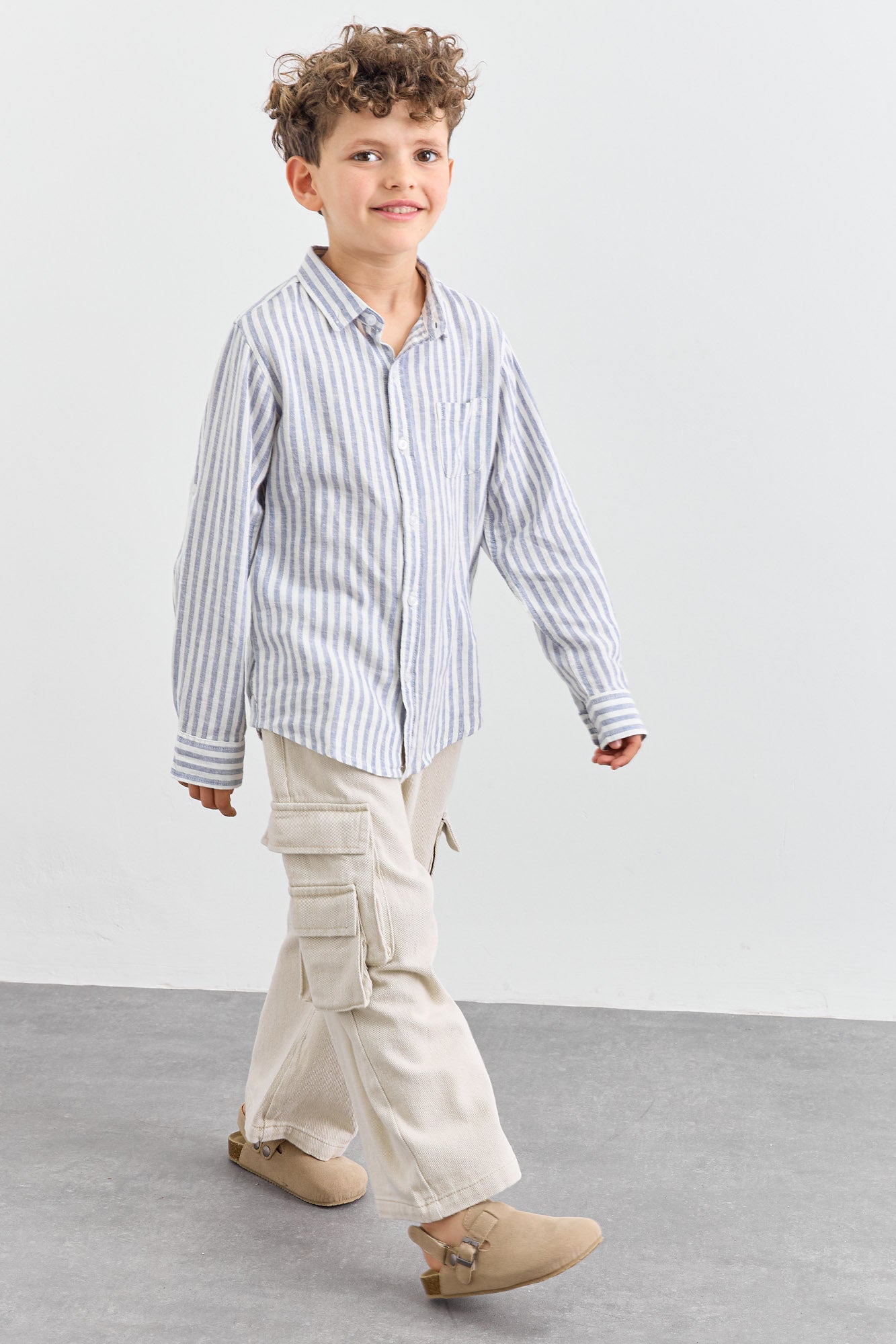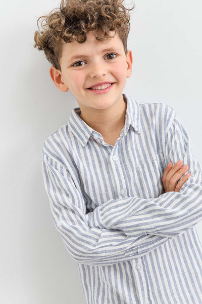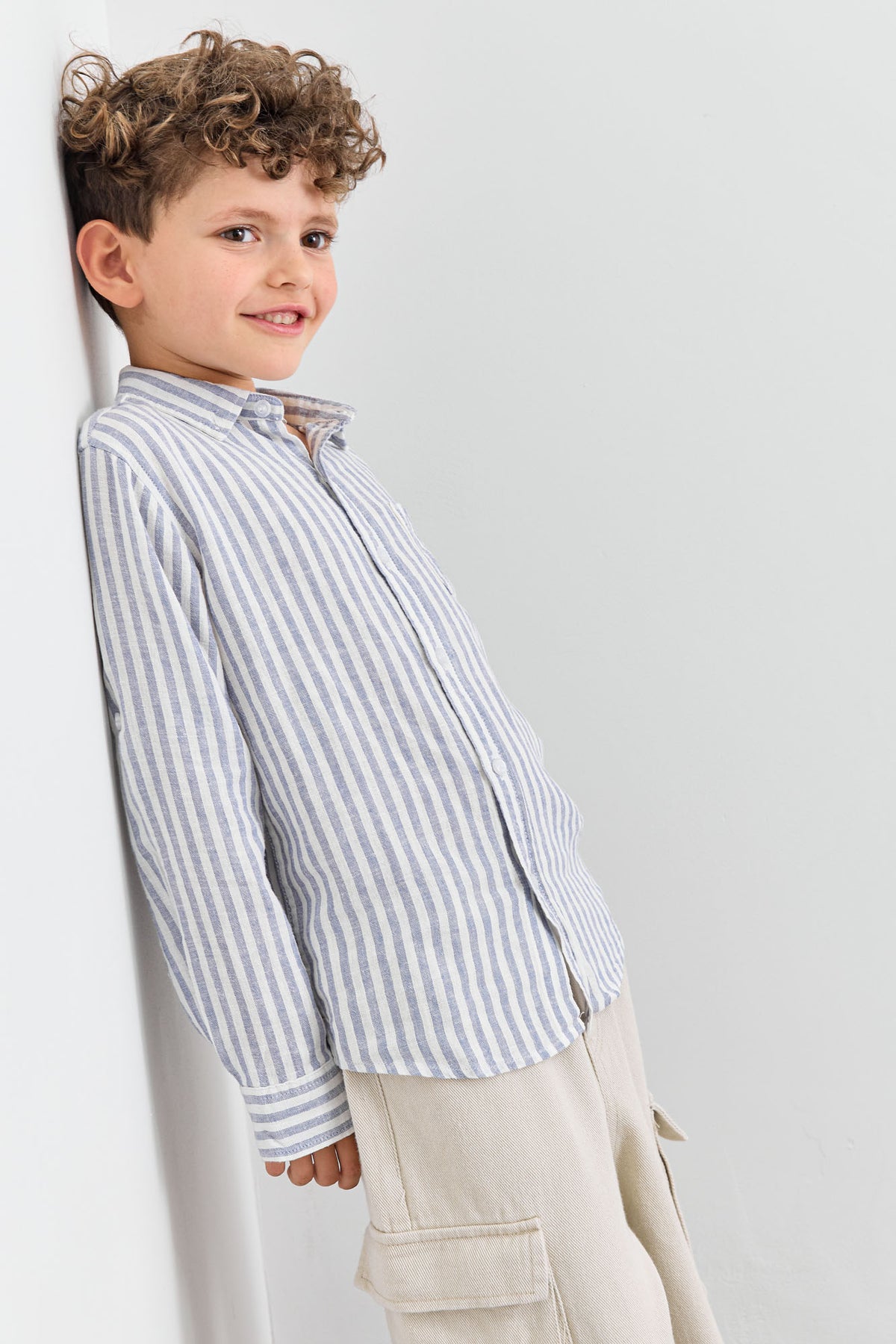 חולצה מכופתרת הדפס פסים | כחול/לבן