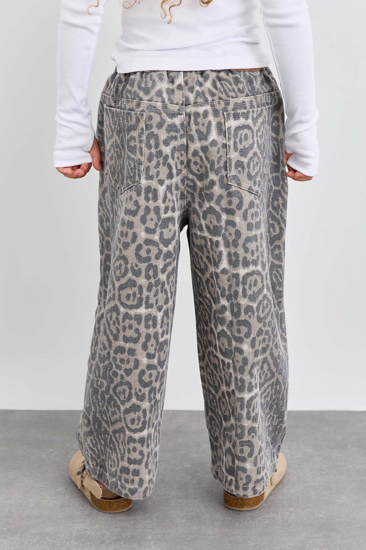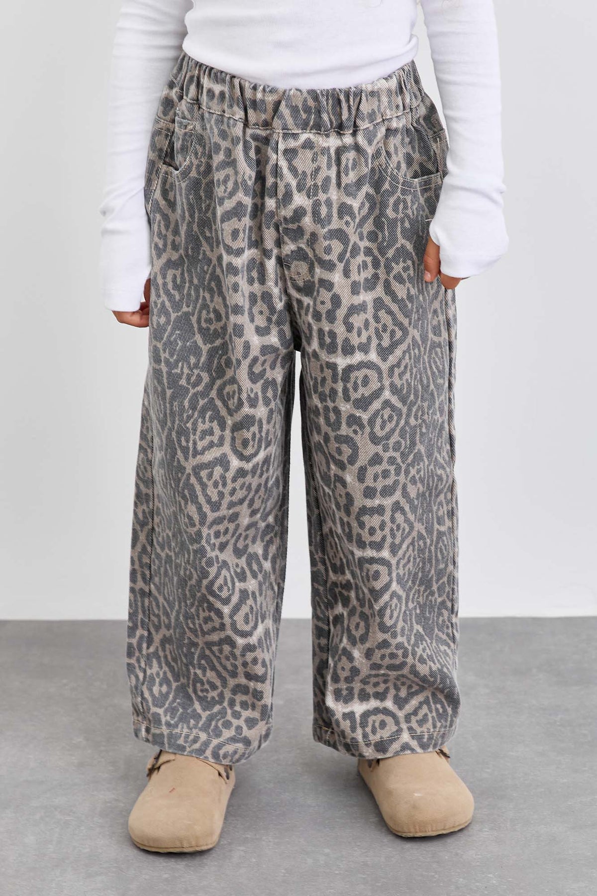 מכנסי ג'ינס בגזרת אוברסייז עם גומי במותן וכיסי צד עם הדפס מנומר מעושן