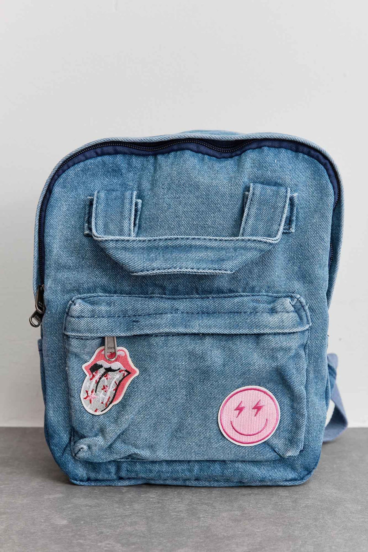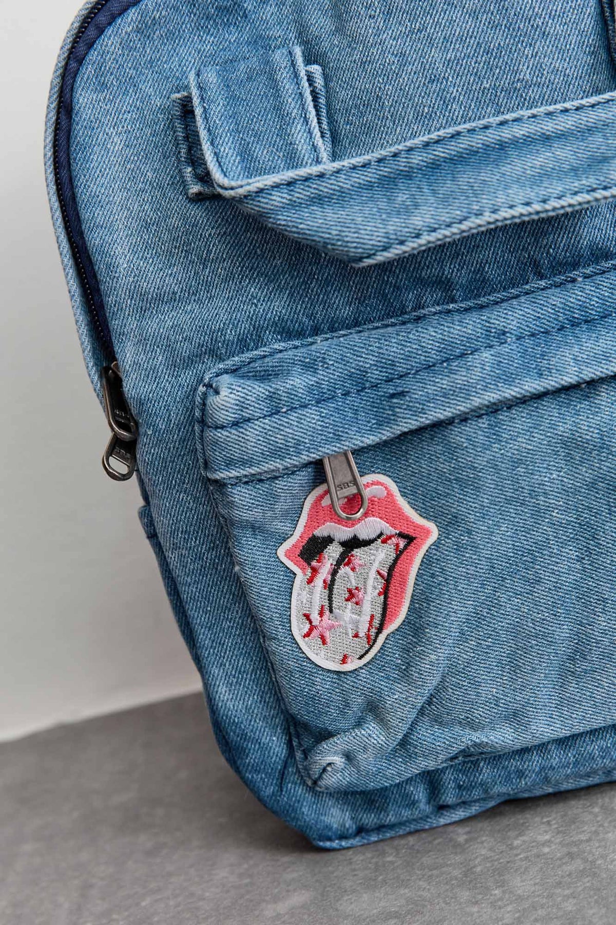 תיק גב קטן מבד ג'ינס בשילוב פאצ'ים