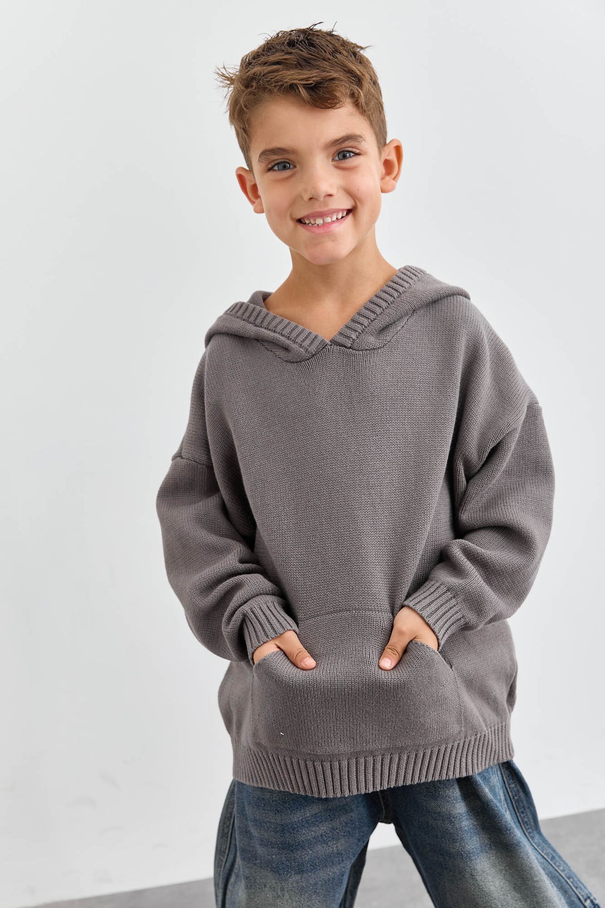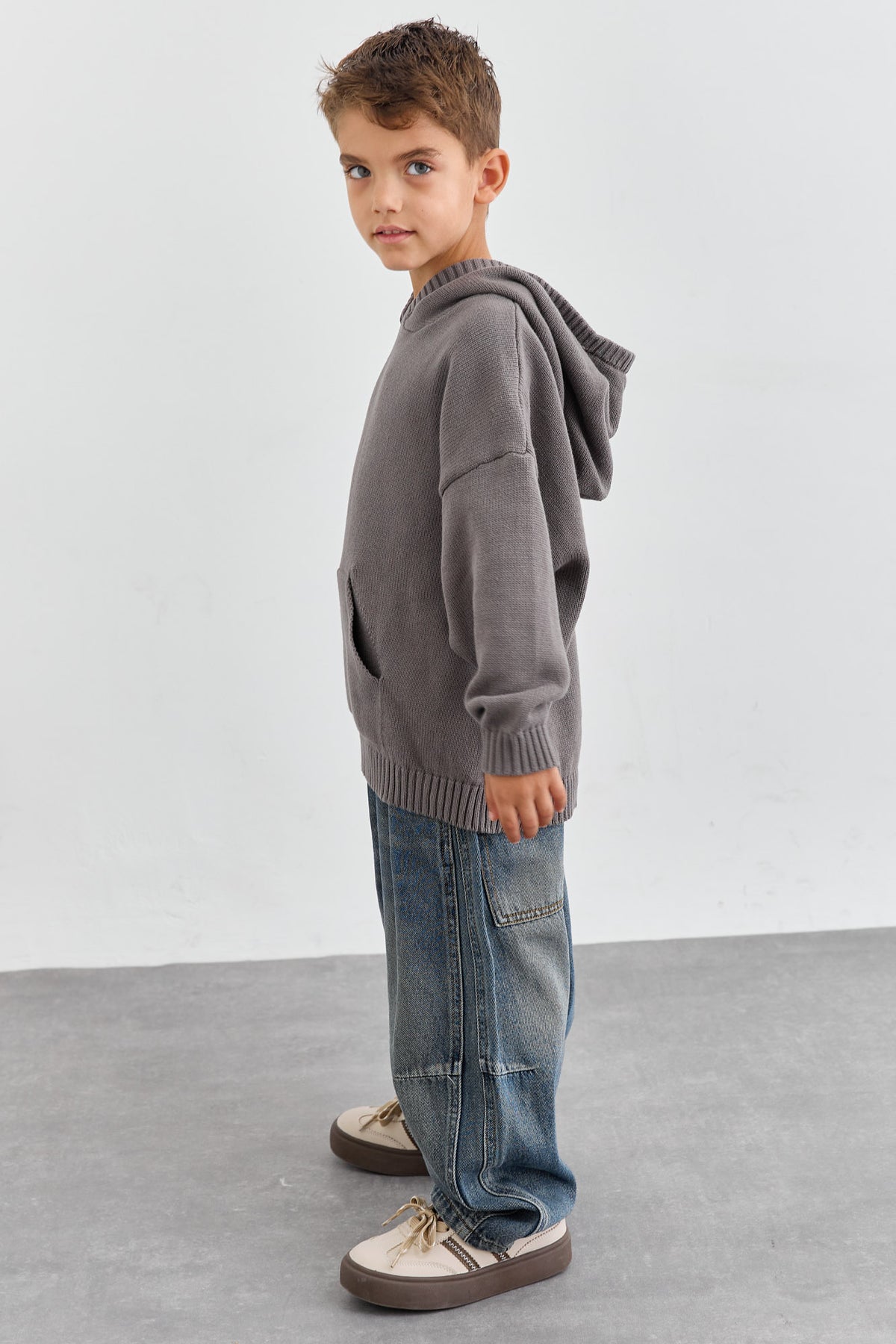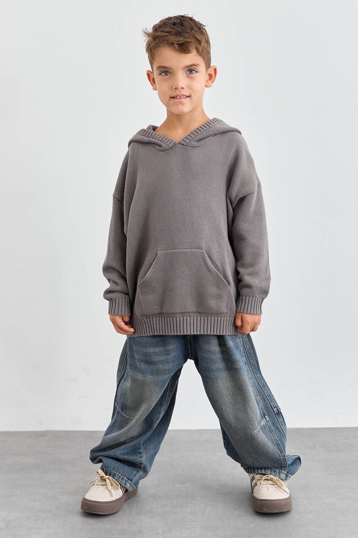 סריג בגזרת אוברסייז עם כיסים וכובע קפוצ'ון