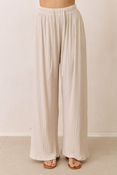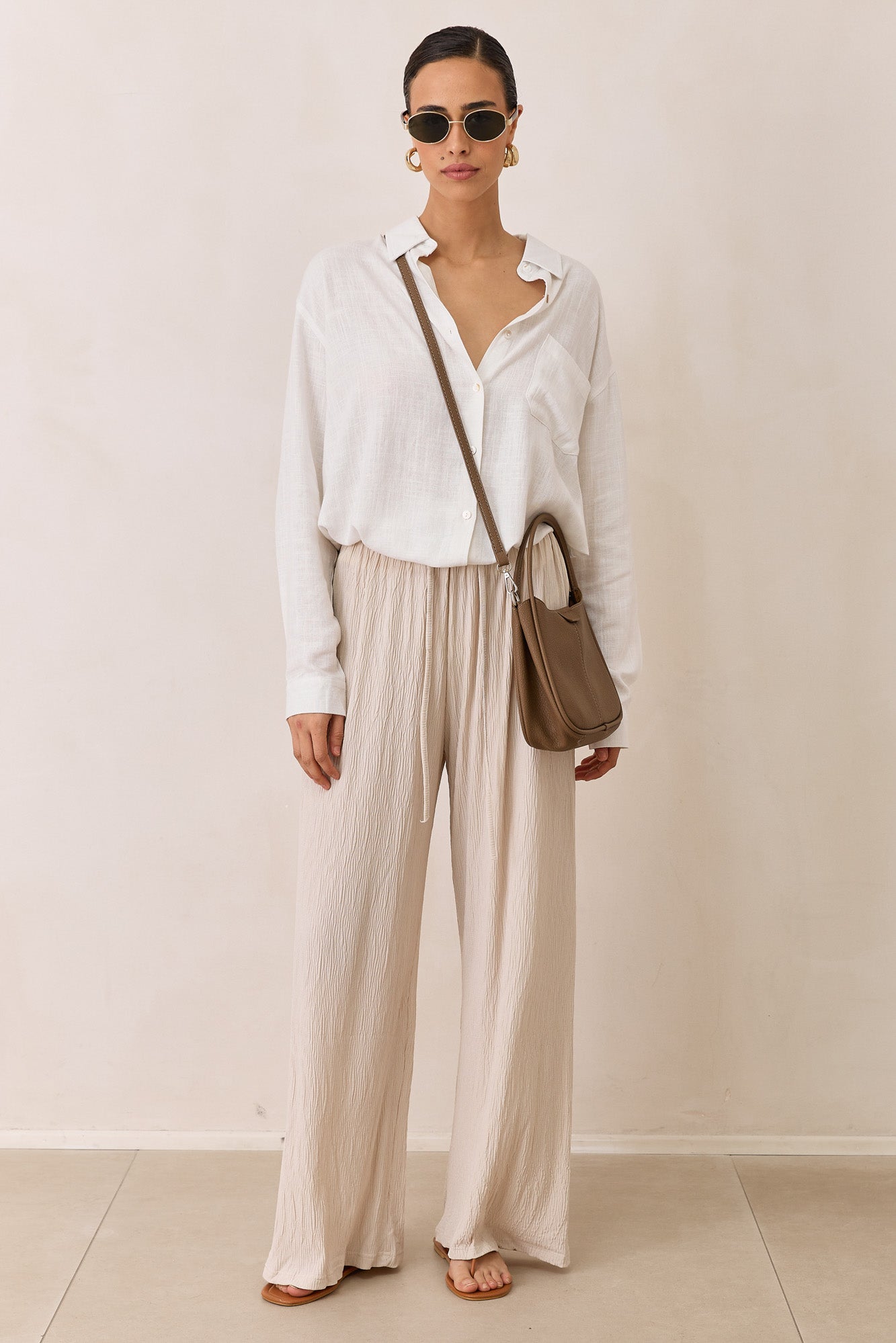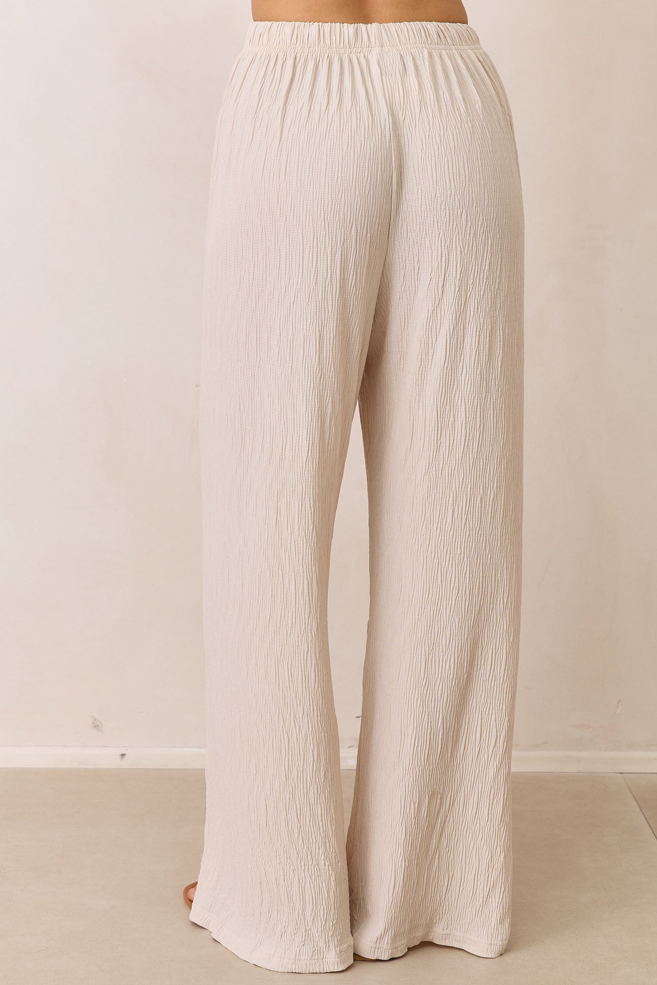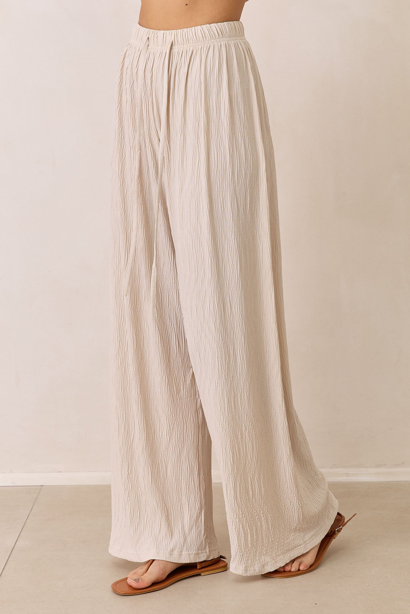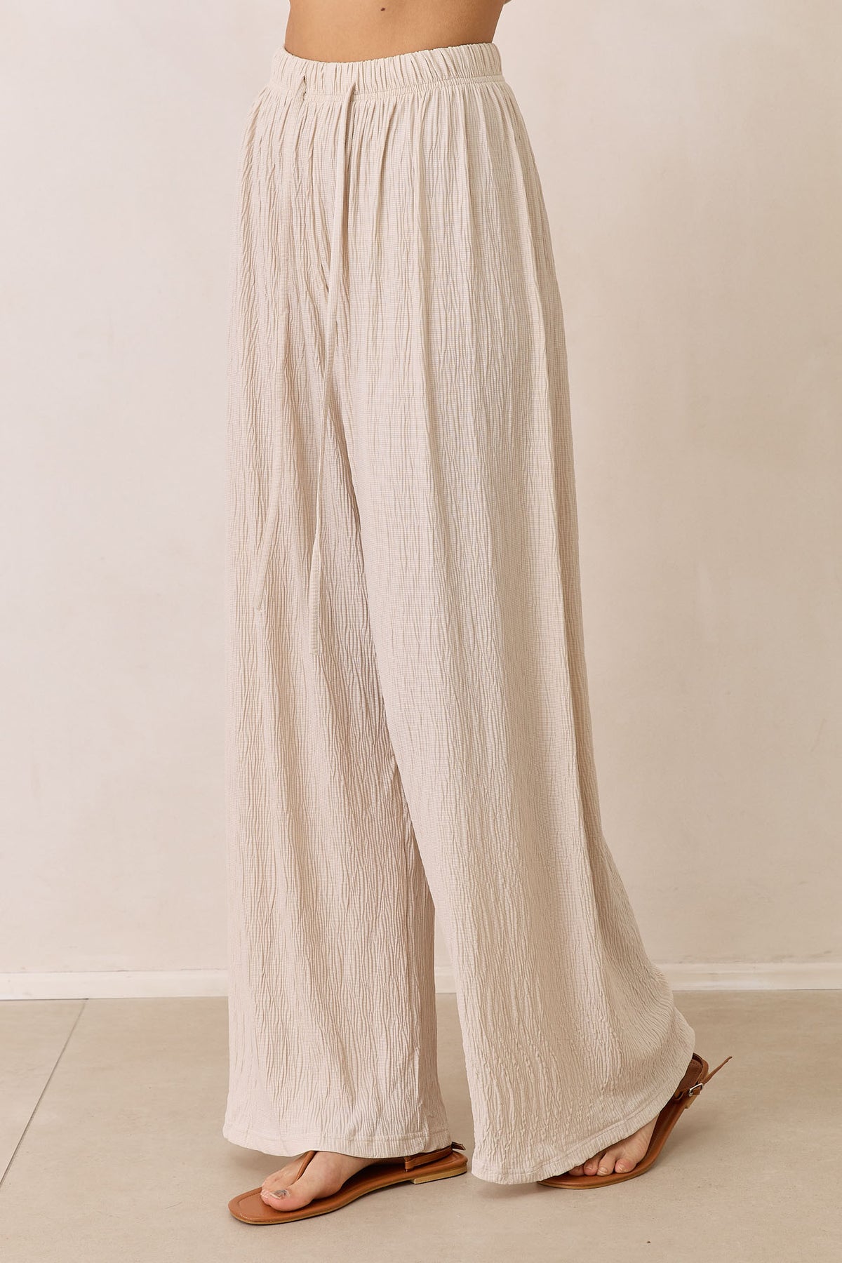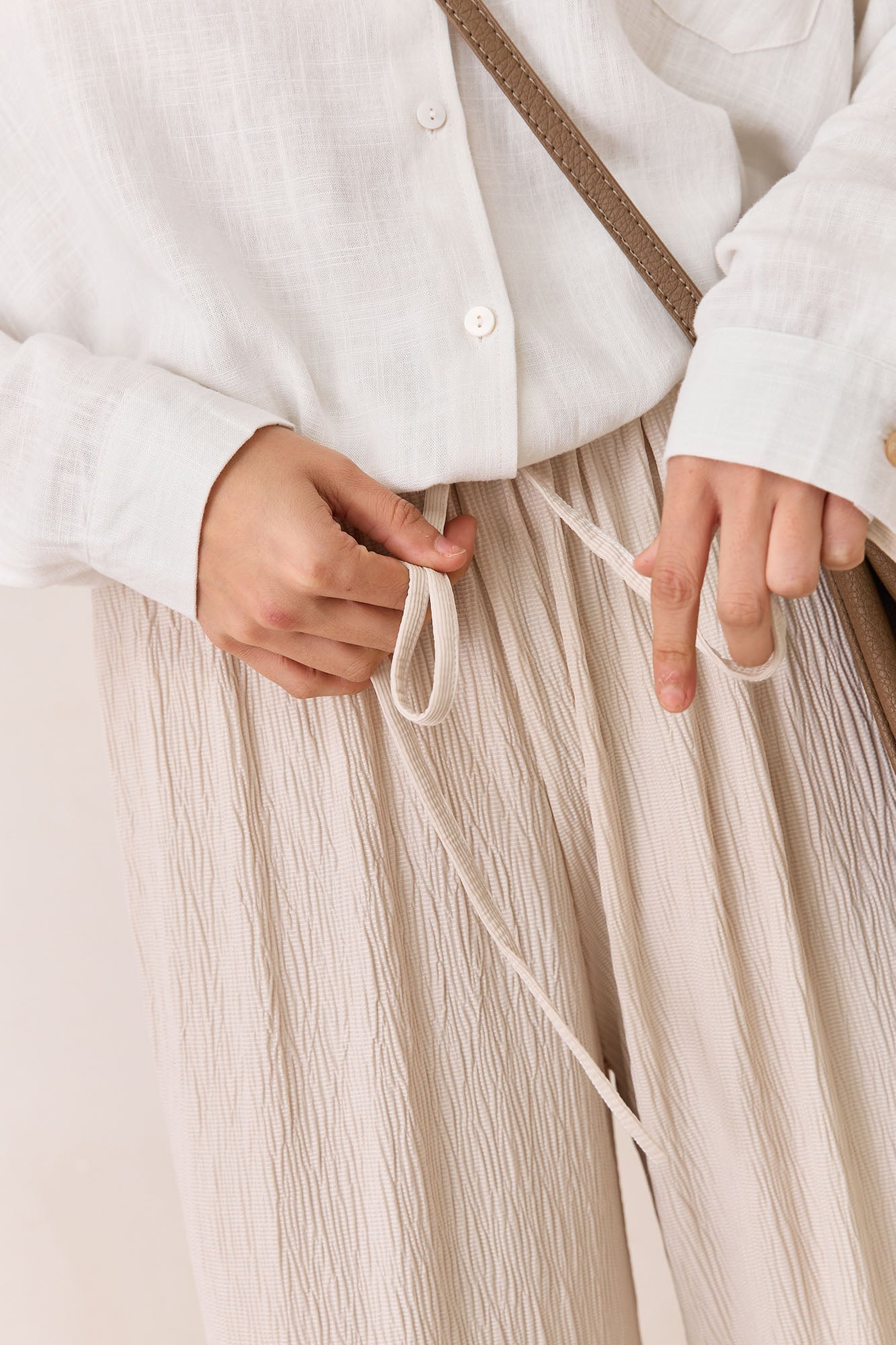 מכנסיים ארוכים בגזרה ישרה עם טקסטורה, גומי במותן ושרוך