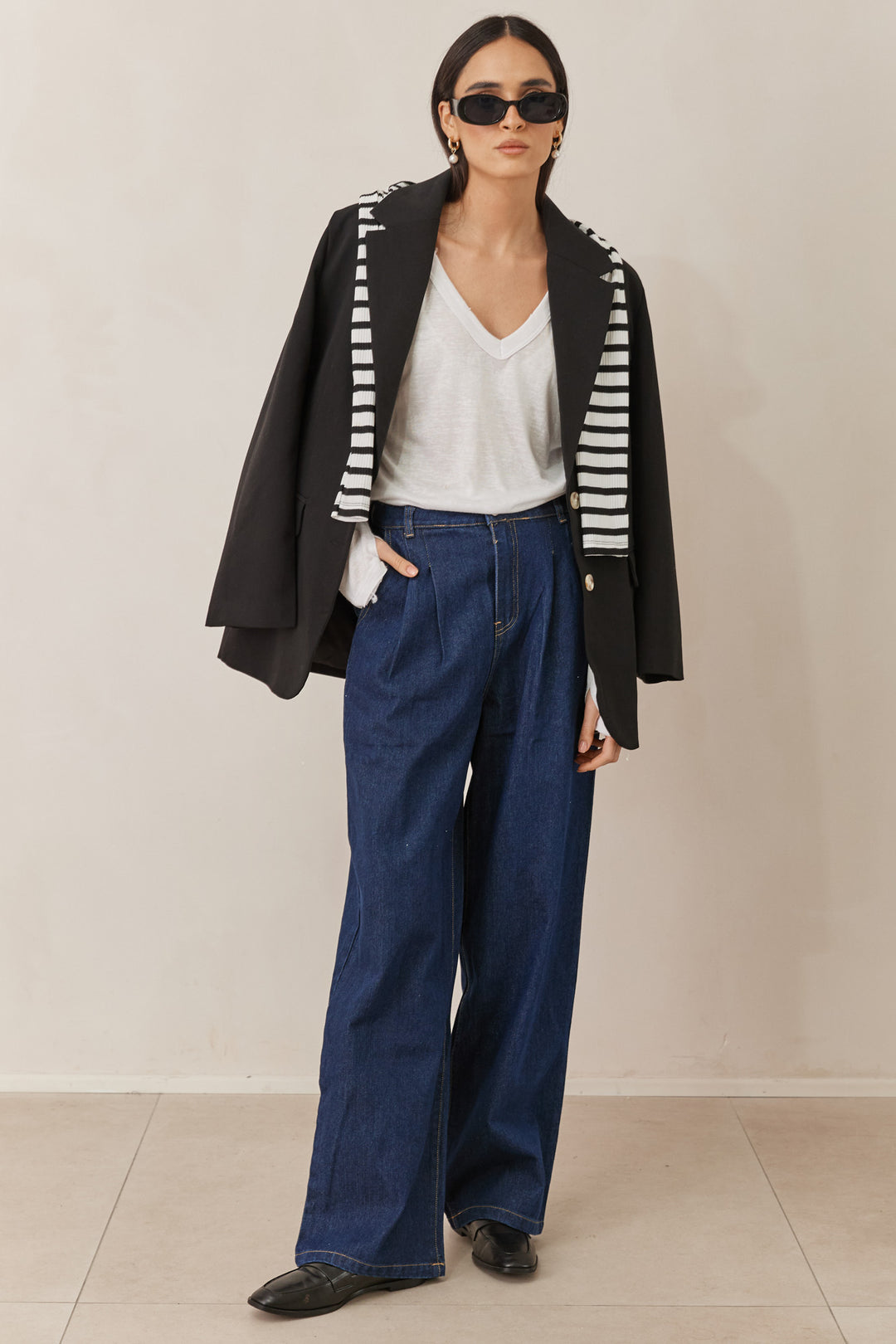 בלייזר מינדי סטרייפס בשילוב צעיף