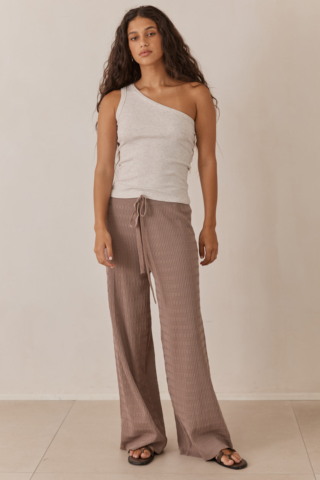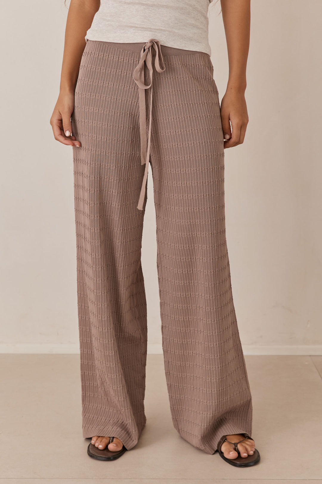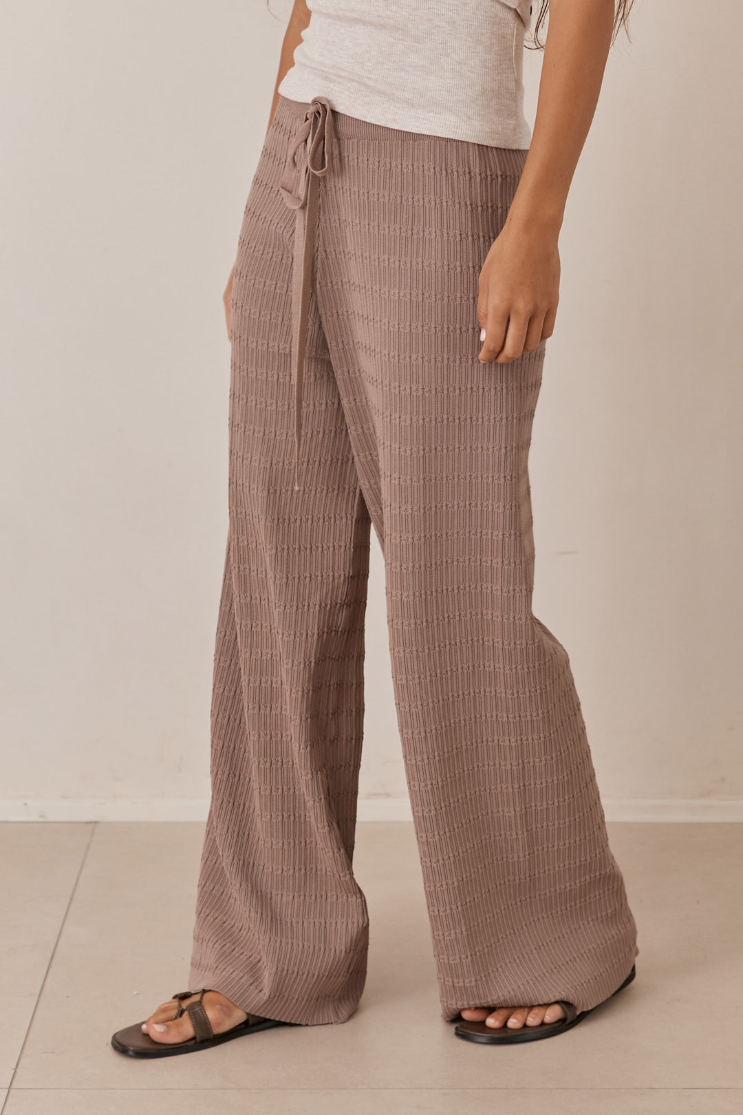 מכנסי סריג לייסי בשילוב קשירה | בז'