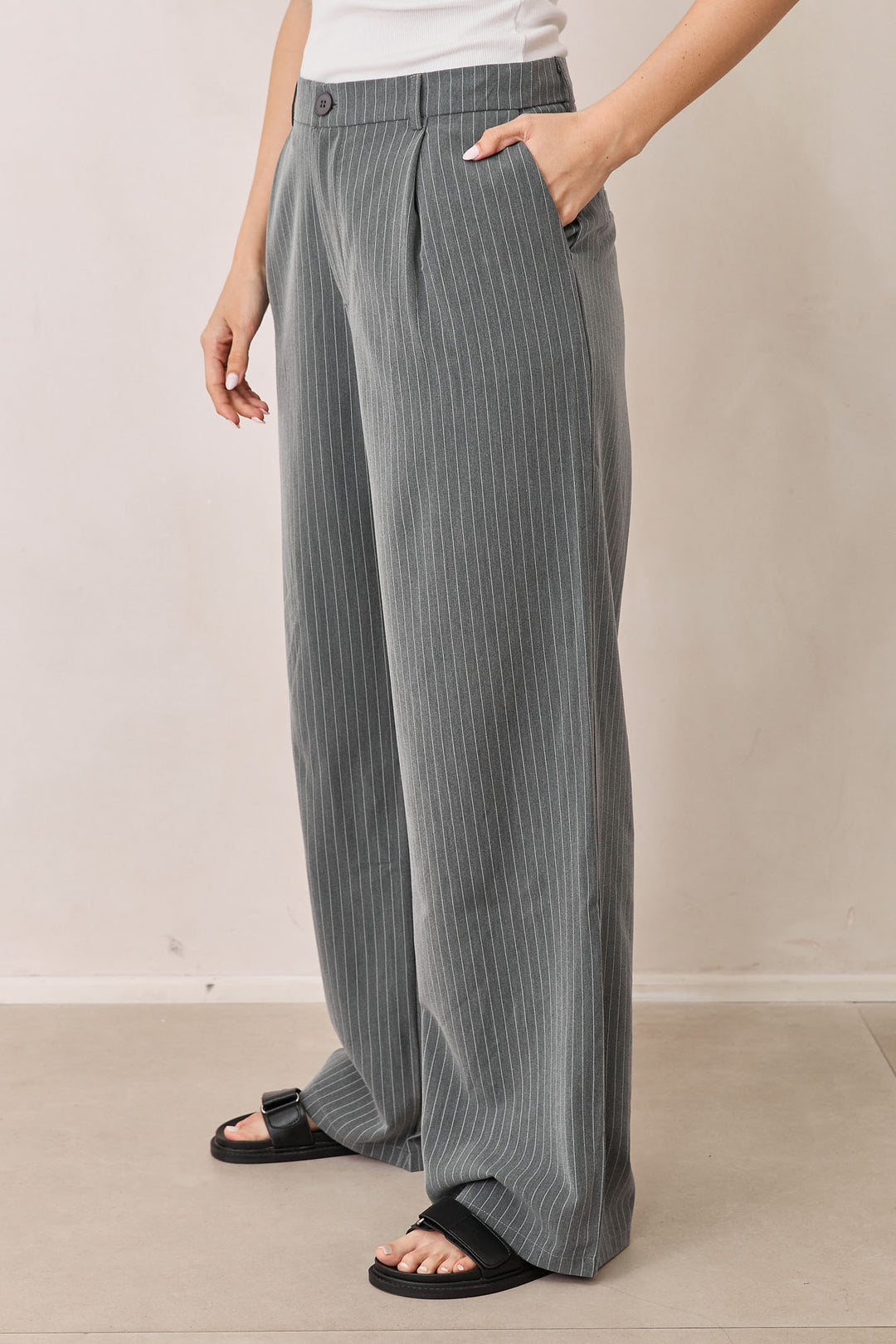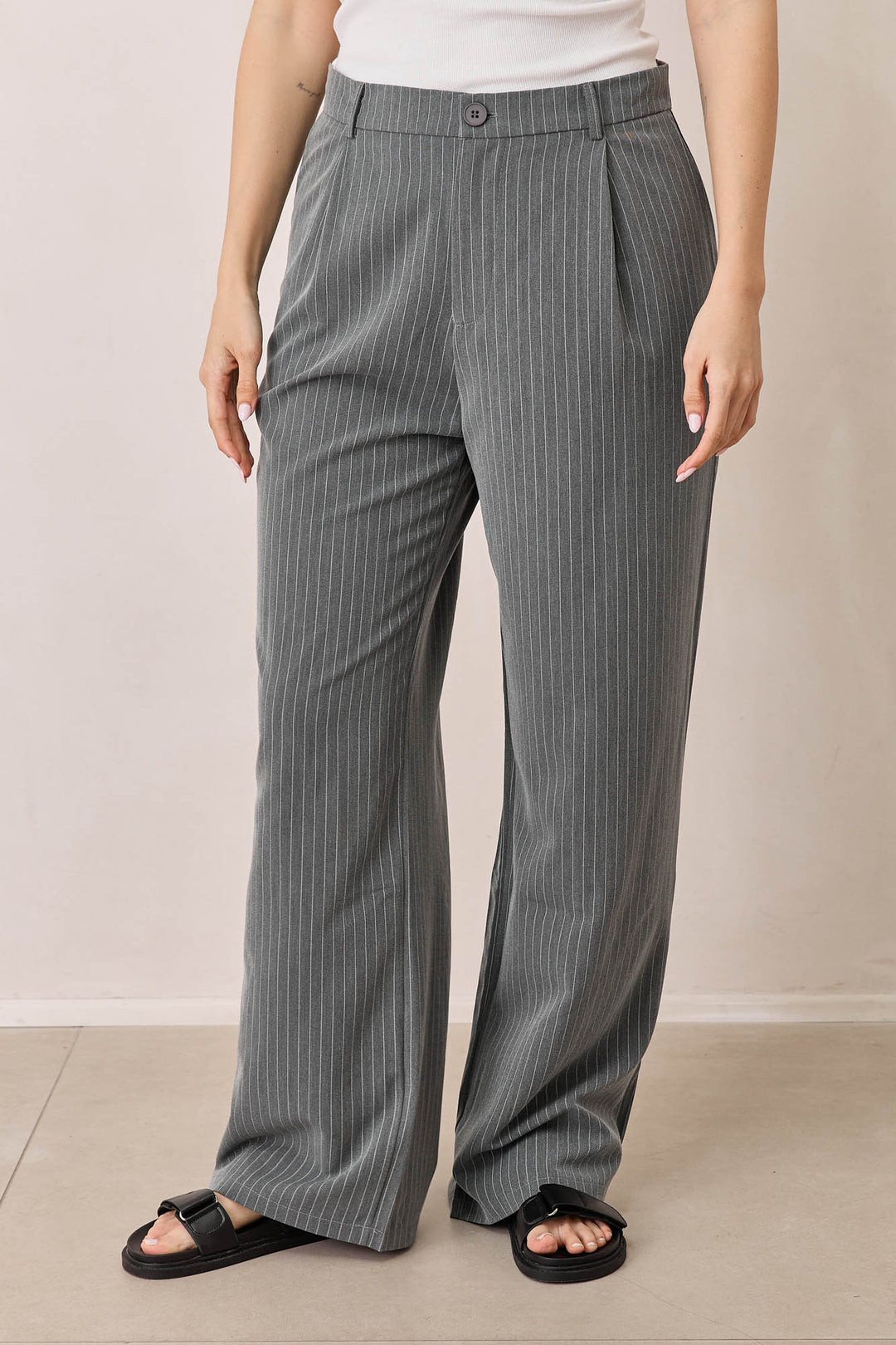 מכנסיים מחויטים מייקי גזרה ישרה | אפור