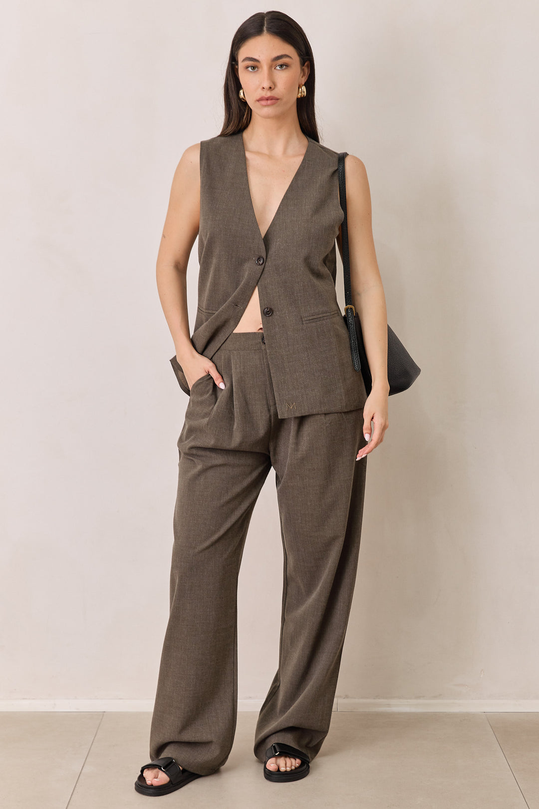 מכנסיים מחויטים דונה גזרה רחבה | שחור