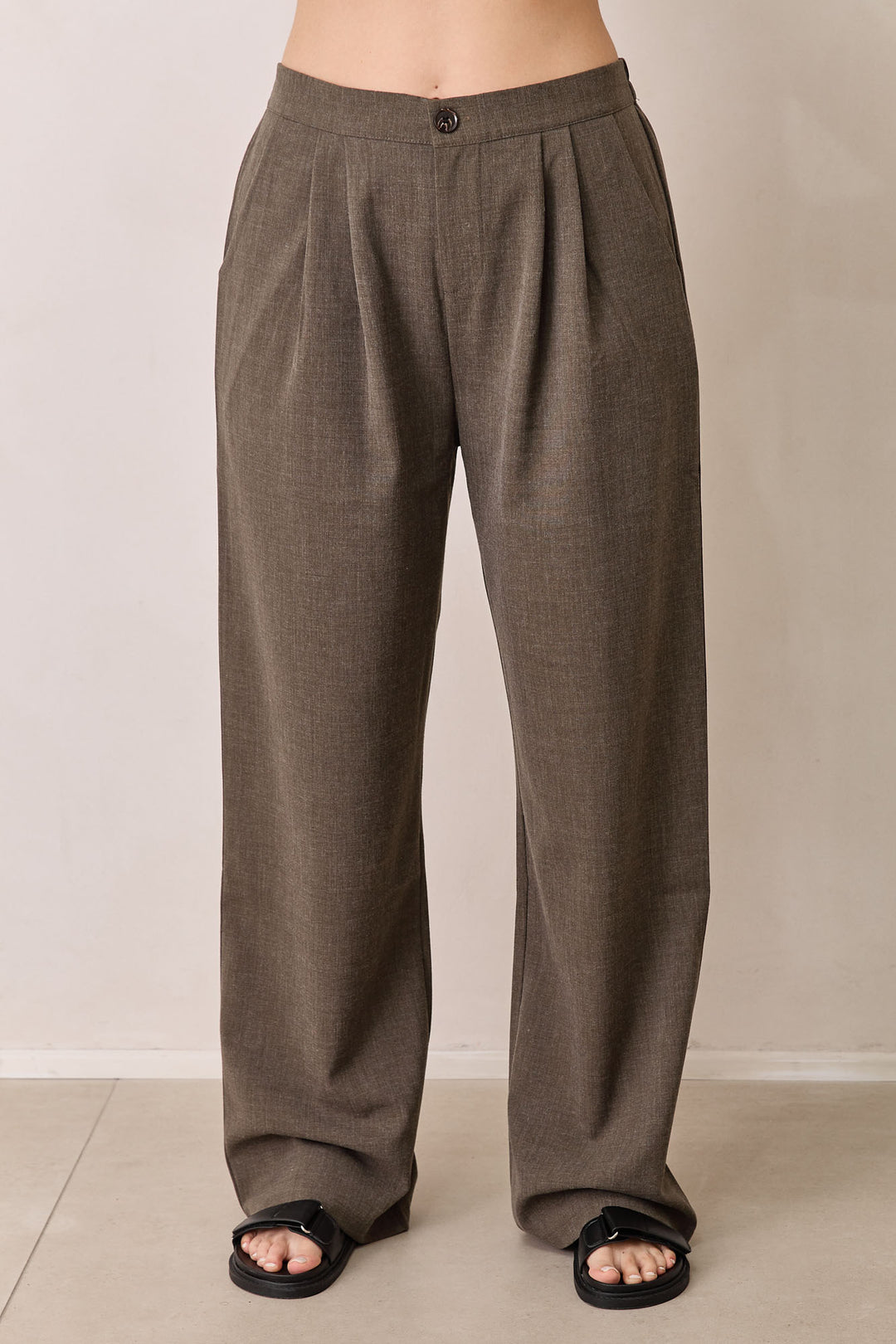 מכנסי אפריל דמוי פשתן | חום