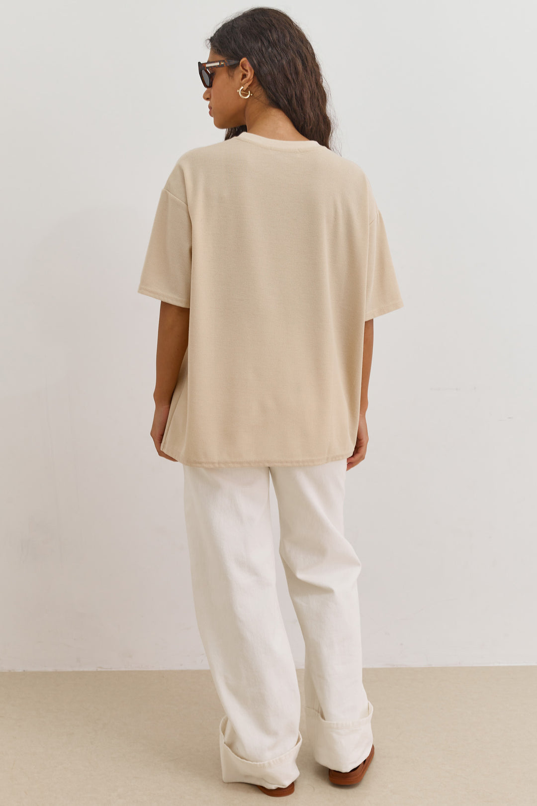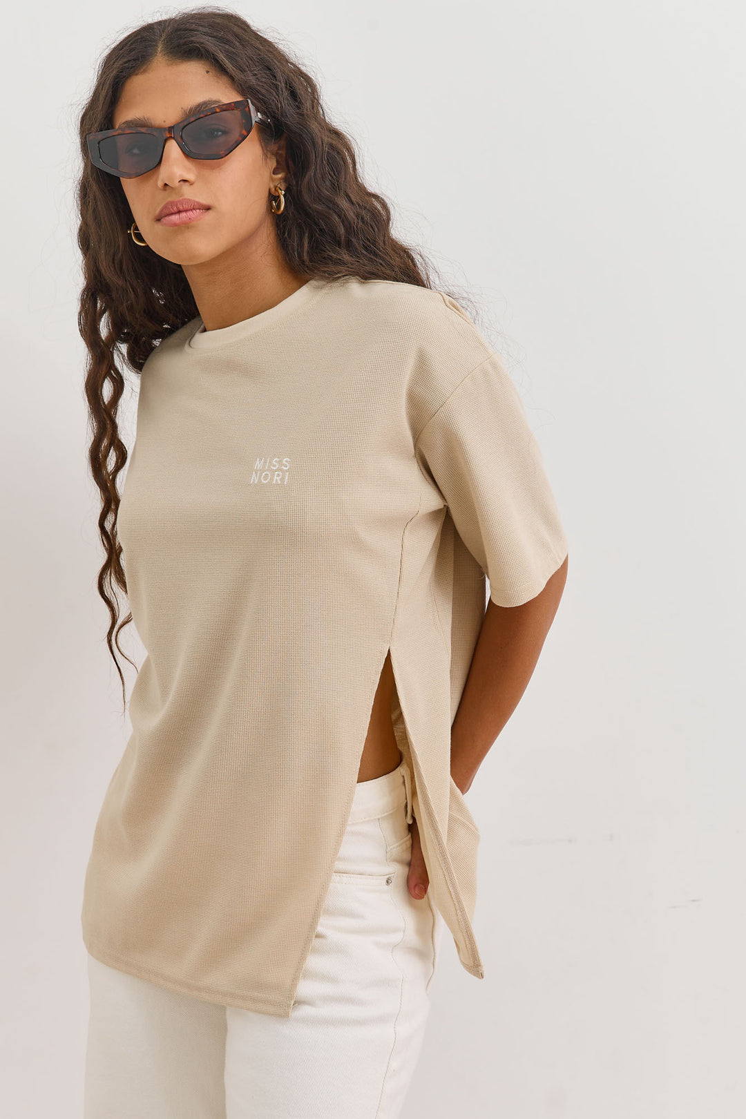 חולצת וופל יולי בשילוב שסע | בז'