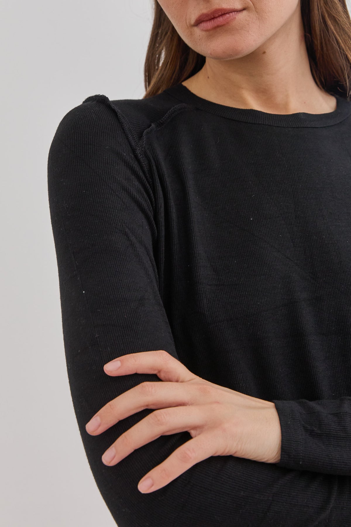 חולצת בייסיק דקה עם תיפורים בולטים, שרוולים ארוכים ומחשוף ניקי