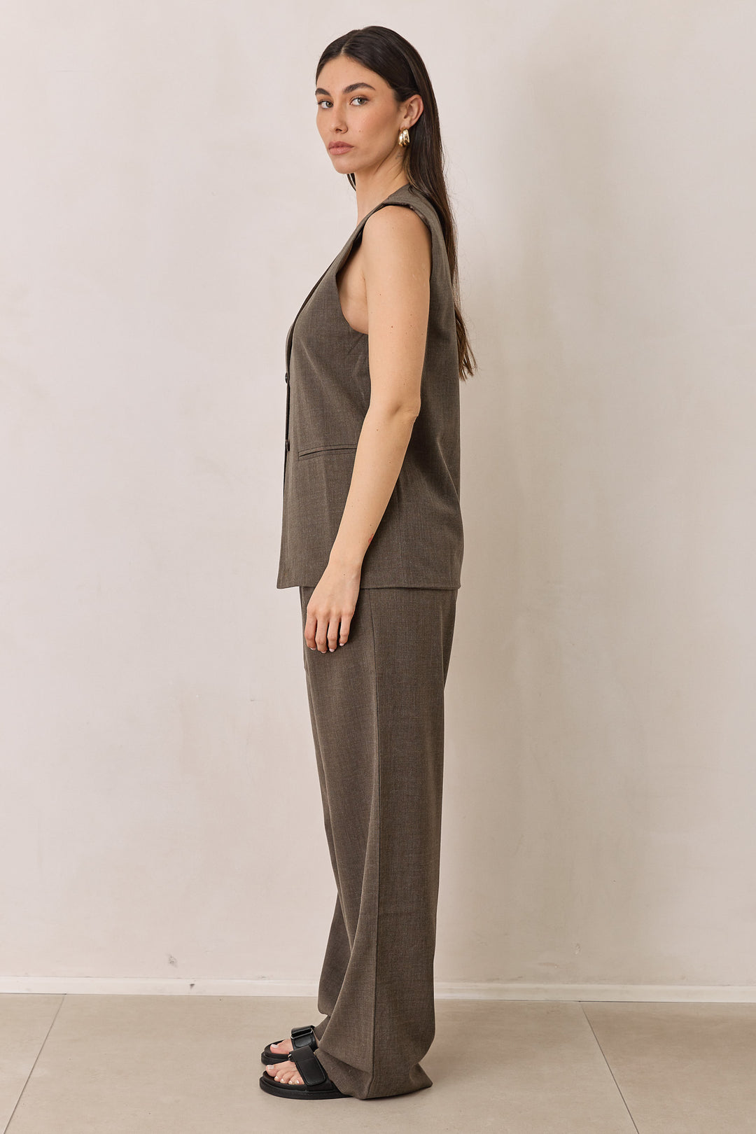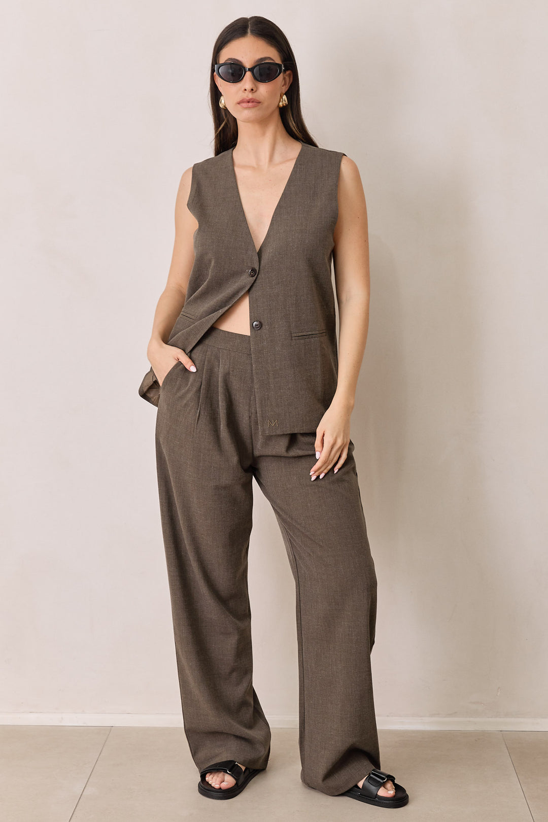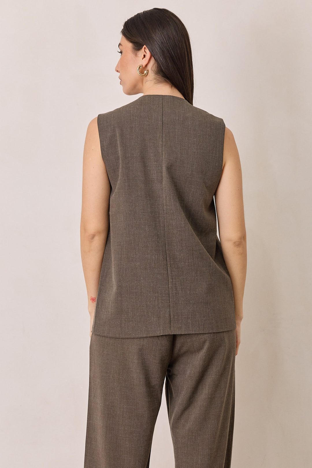 חולצת סריג לייסי בשילוב קשירה | חום כהה
