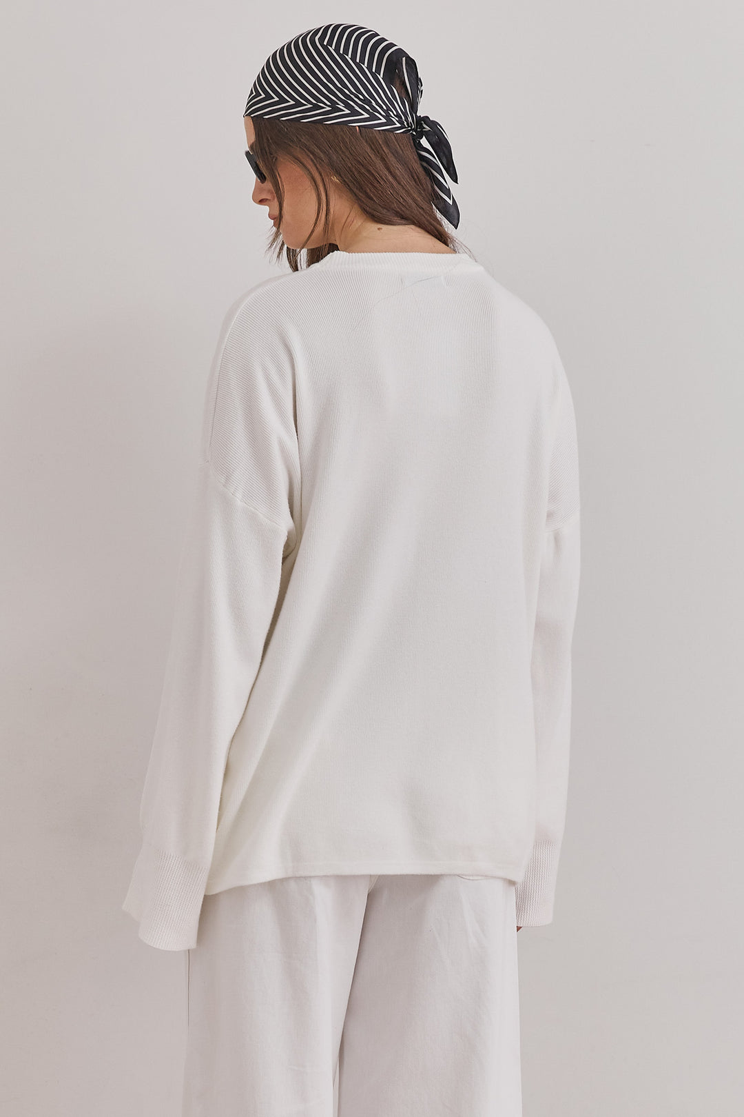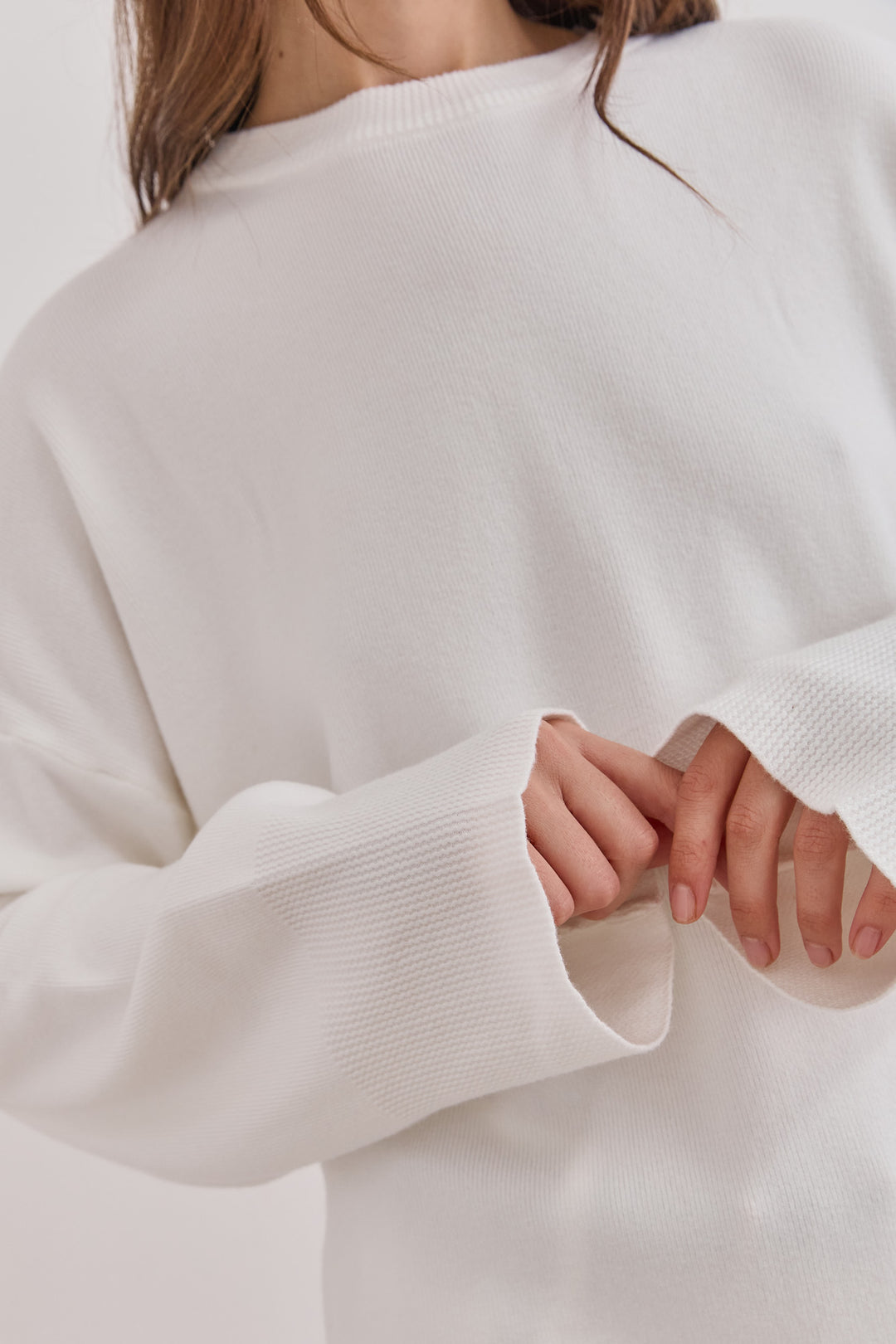 סריג דון פפלום ושרוולים מתרחבים | לבן