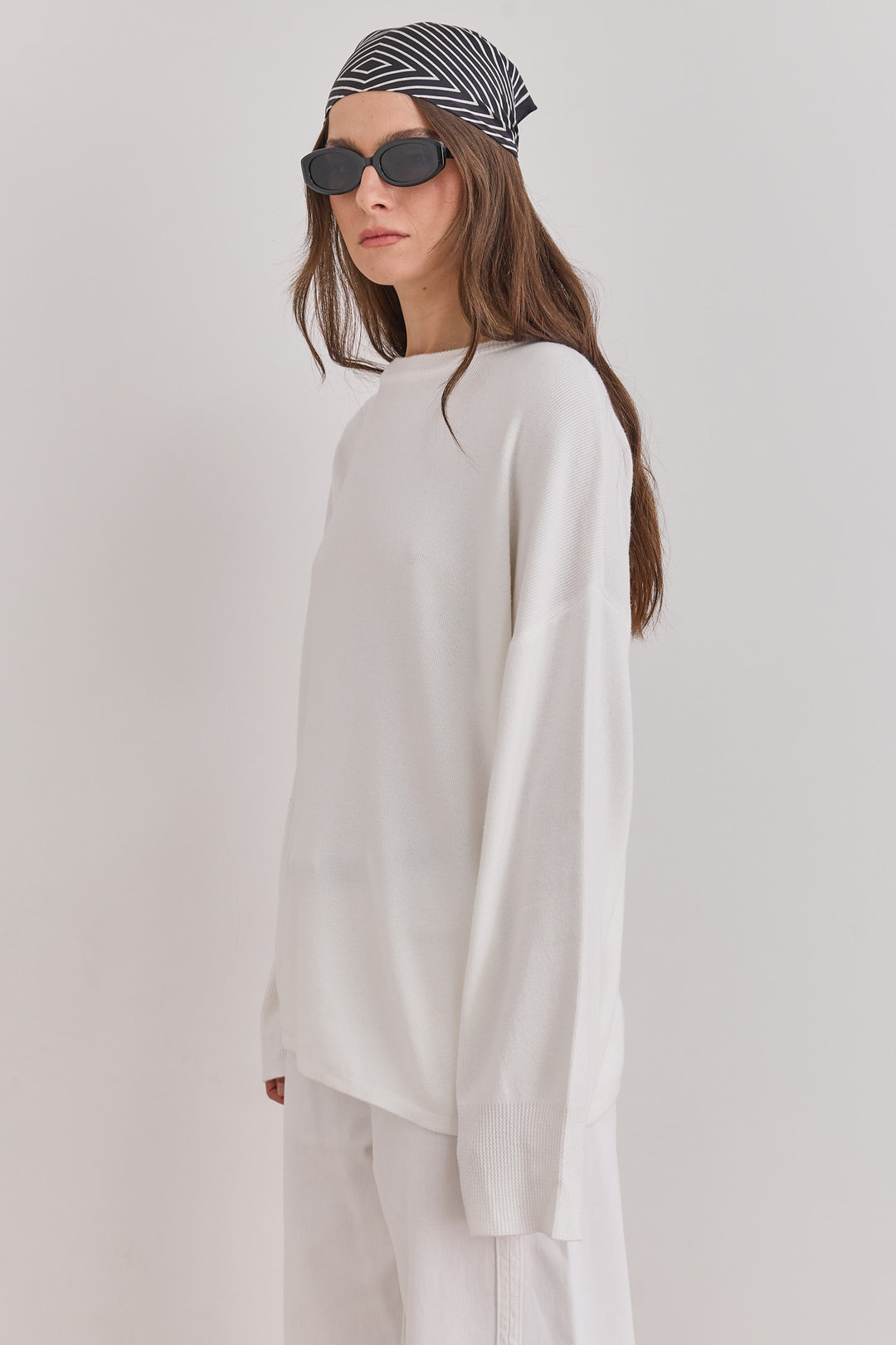 חולצת קפוצ'ון הנרי שקפקפה שרוולי כפפה | לבן