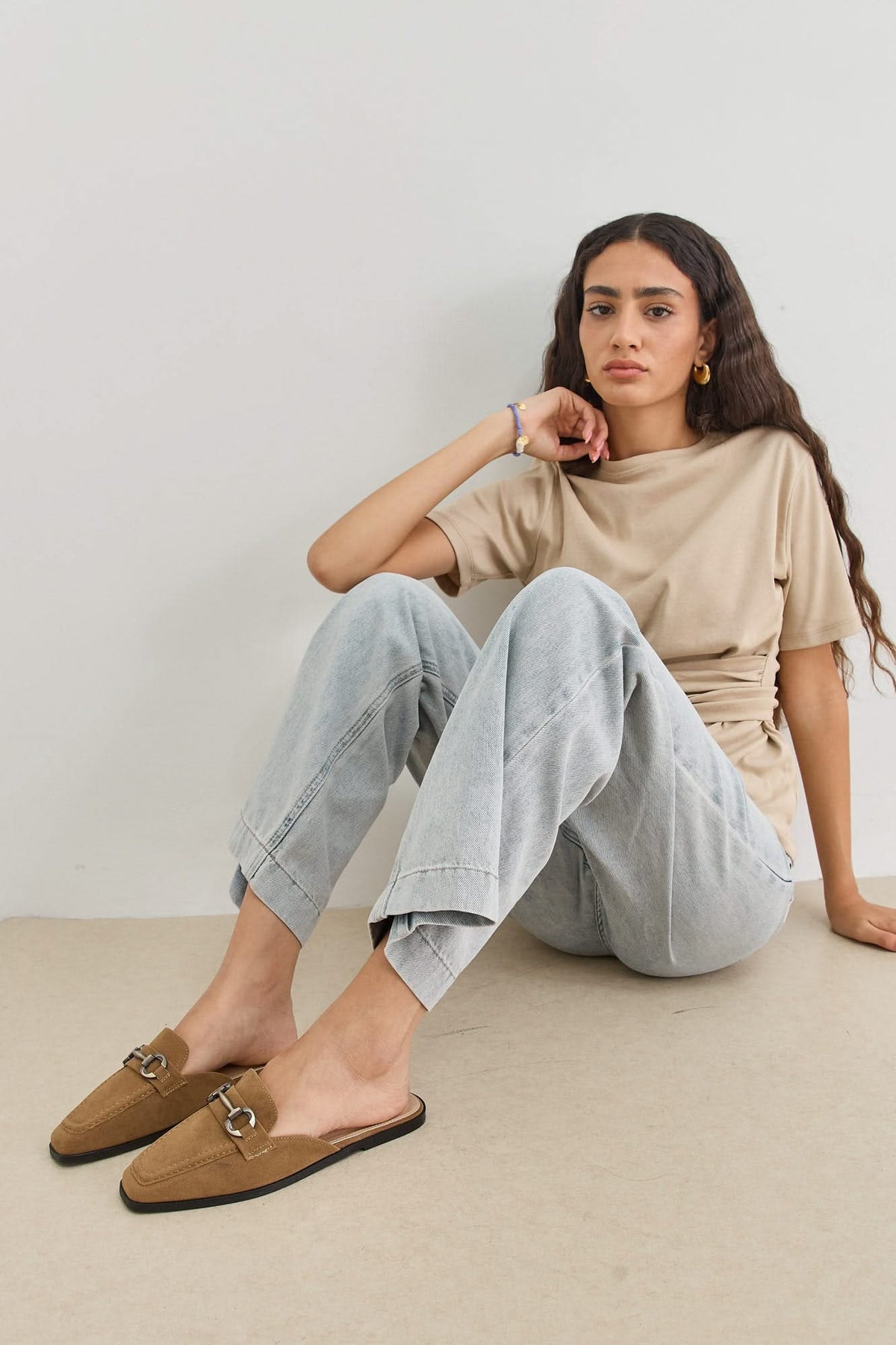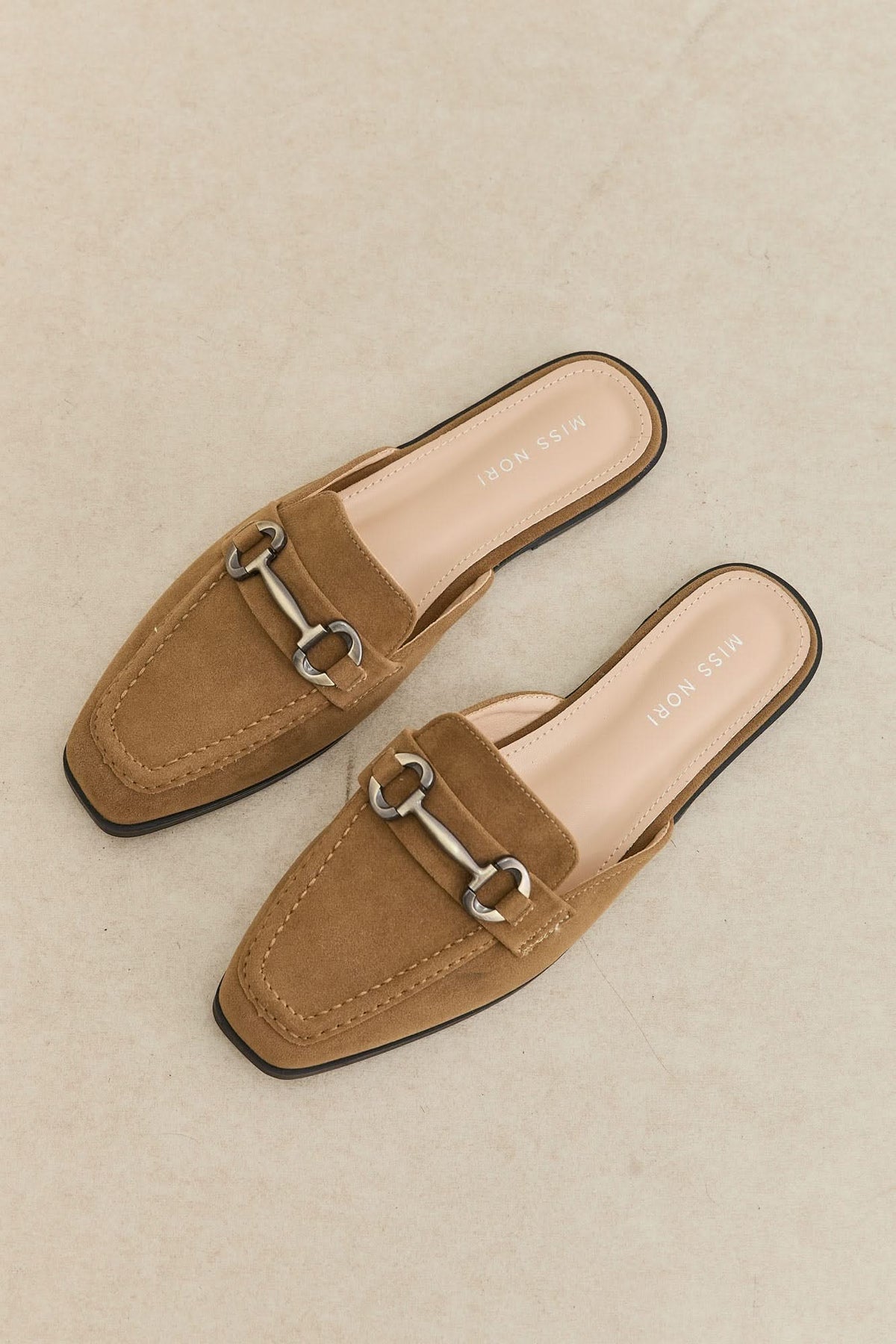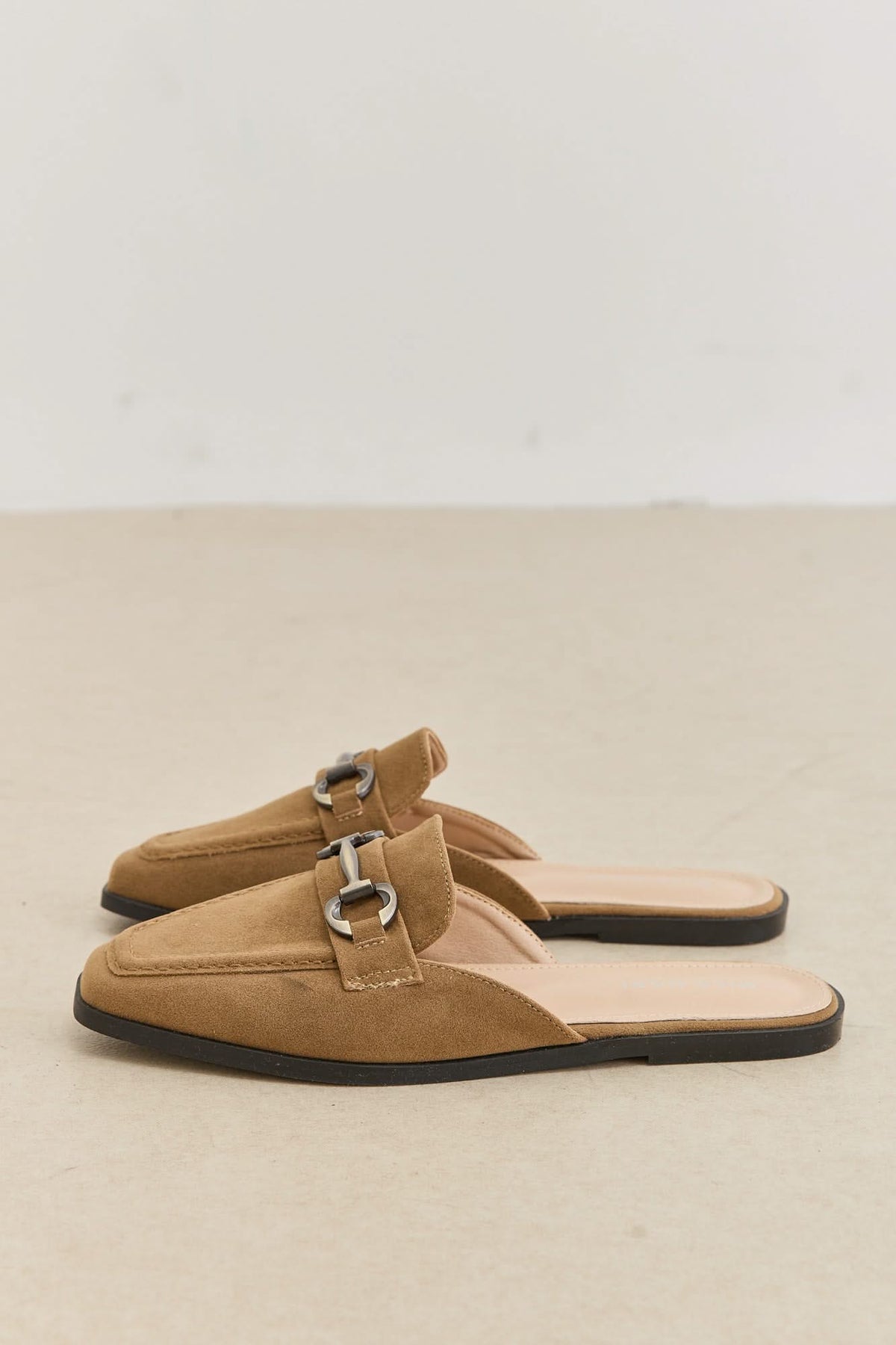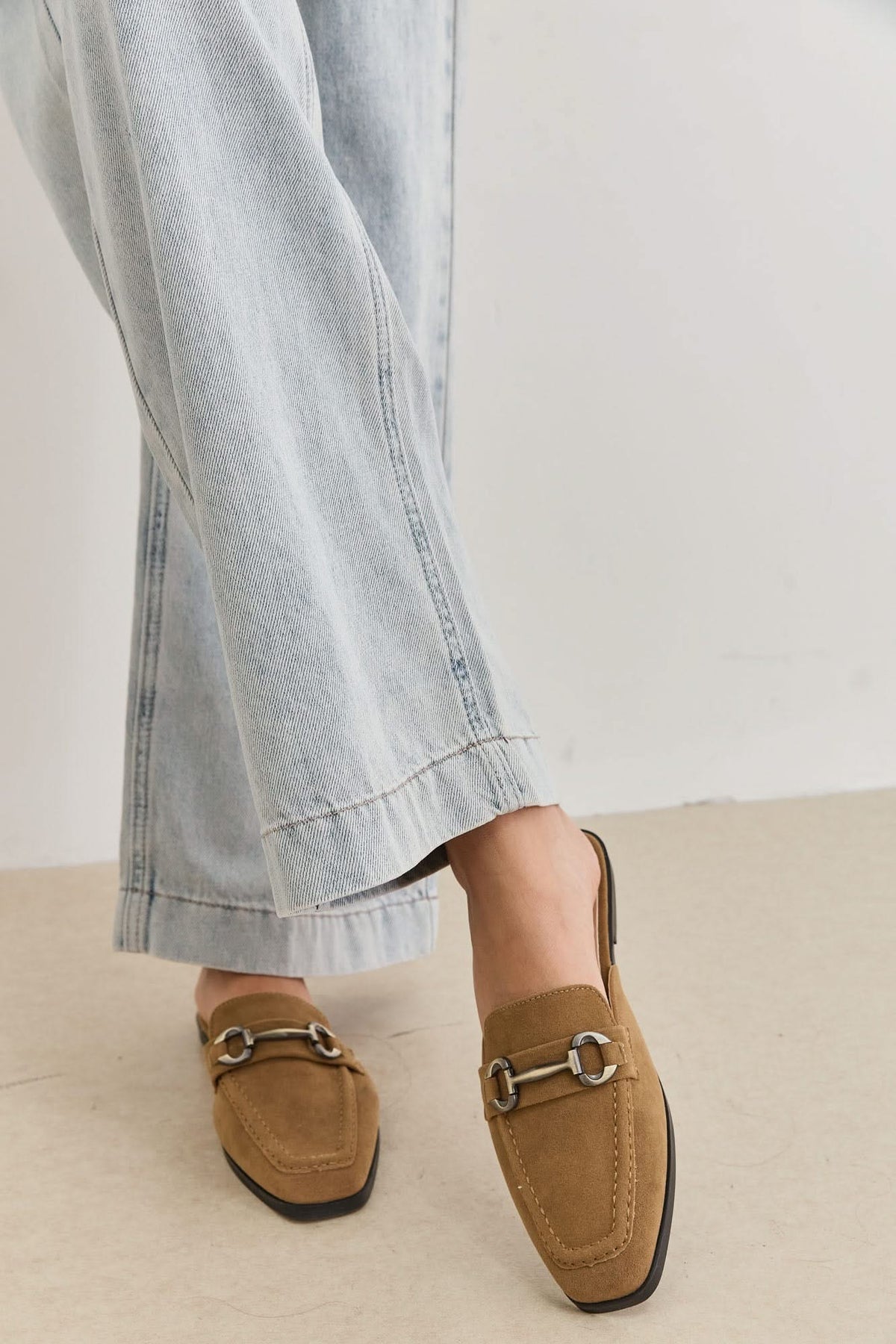 כפכפי מוקסין שטוחים דמוי זמש בשילוב אבזם