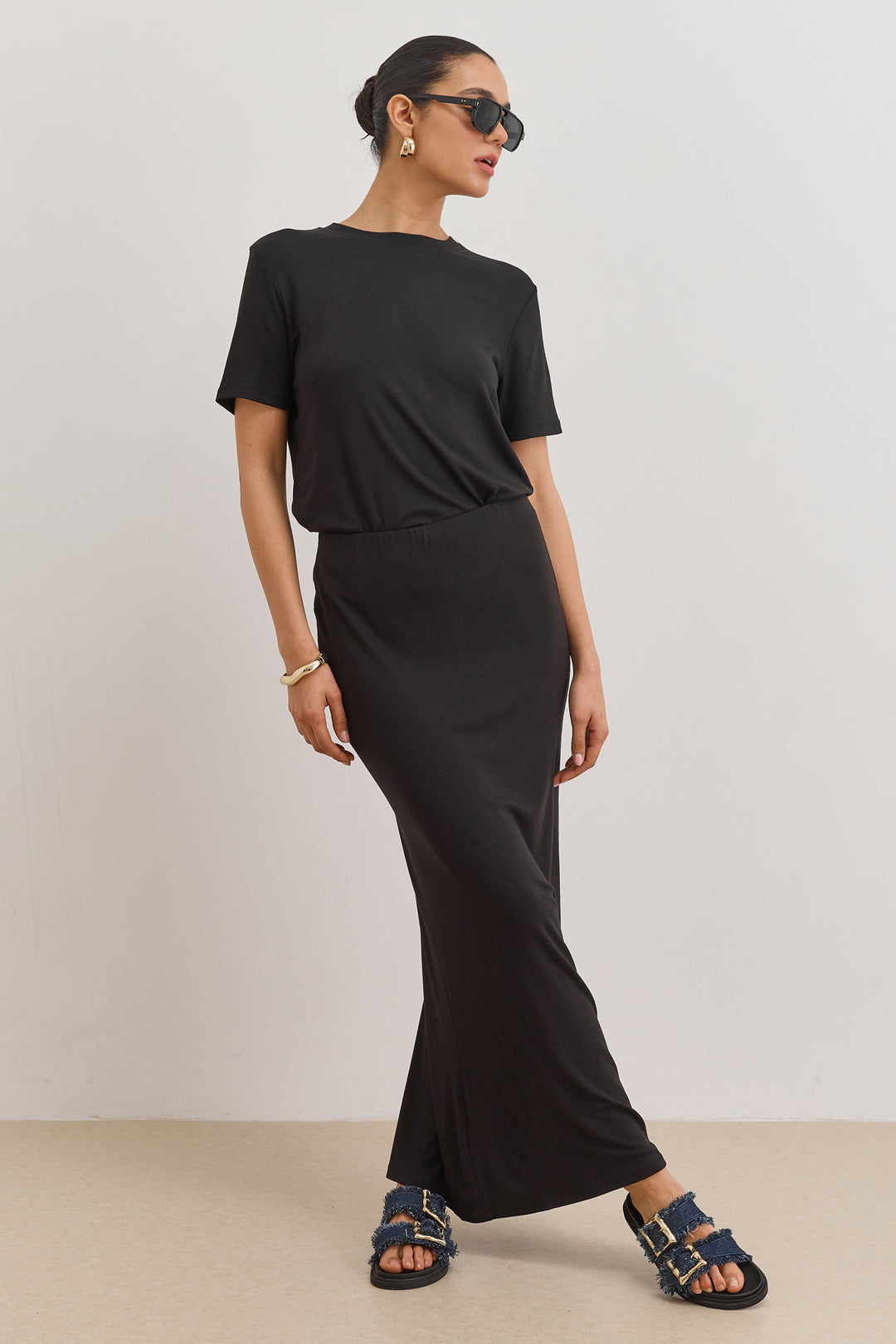 חצאית איימי סטרייפס אורך מקסי | קרם/שחור