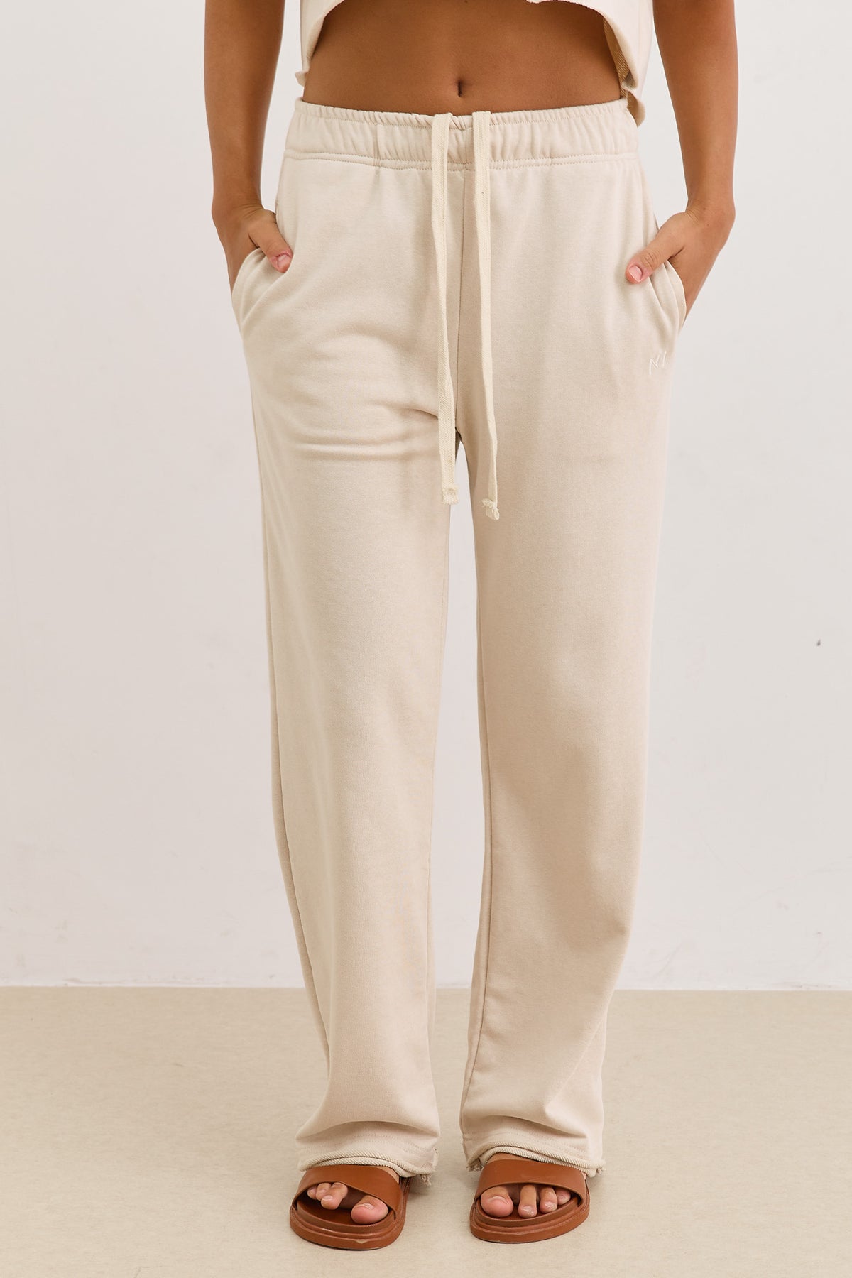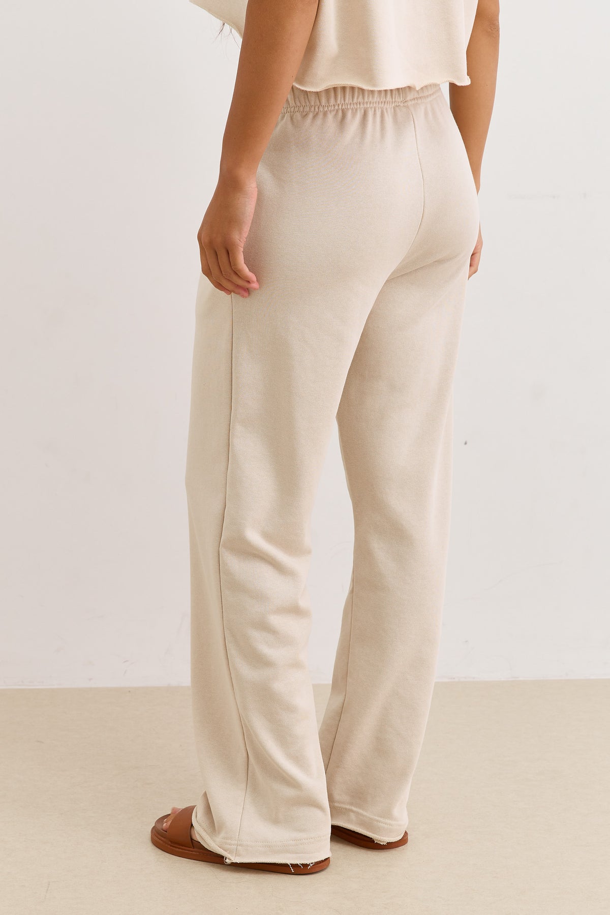 מכנסיים ארוכים מבד פרנץ' טרי בסיומת גזורה ובגזרה ישרה עם רקמת לוגו ובשילוב גומי מותן, כיסים ושרוך פנימי
