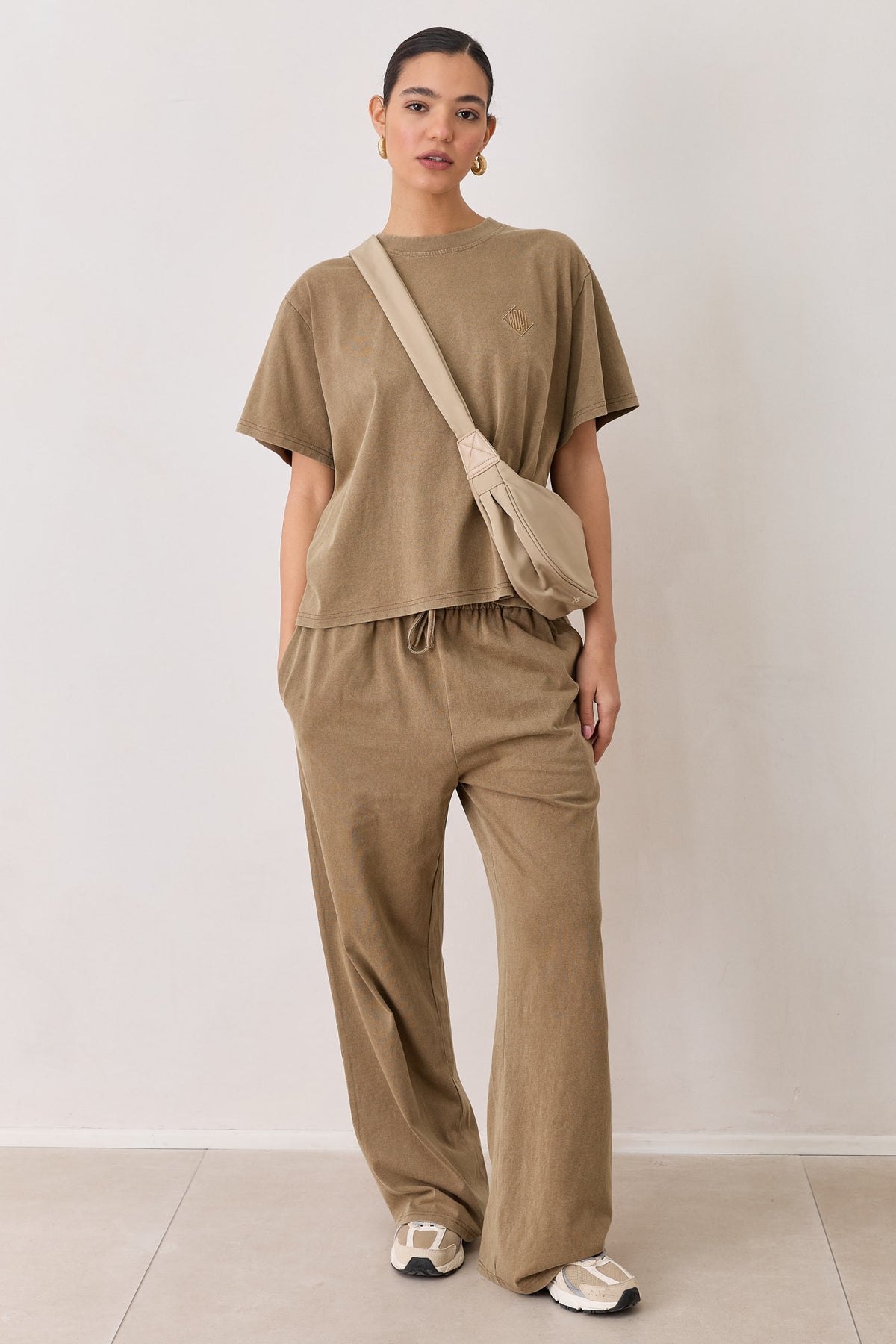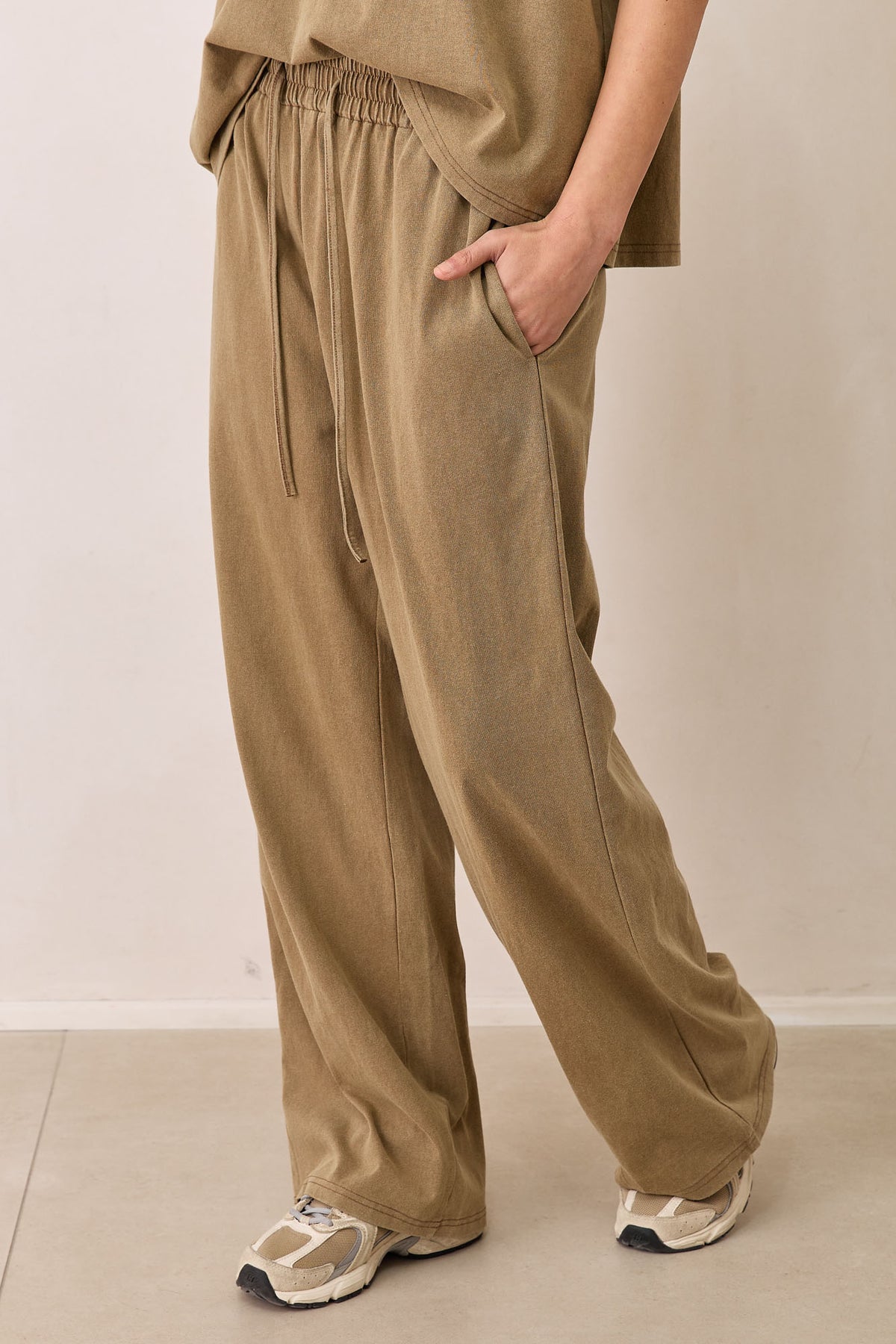 מכנסיים ארוכים בגזרה ישרה ובשטיפת וואש