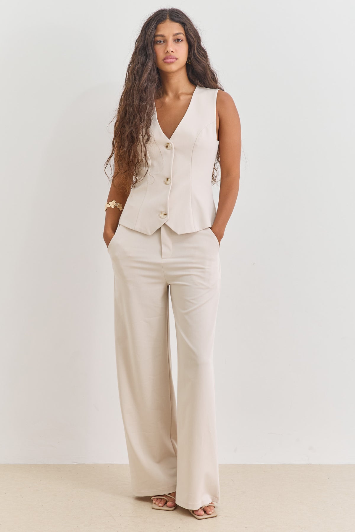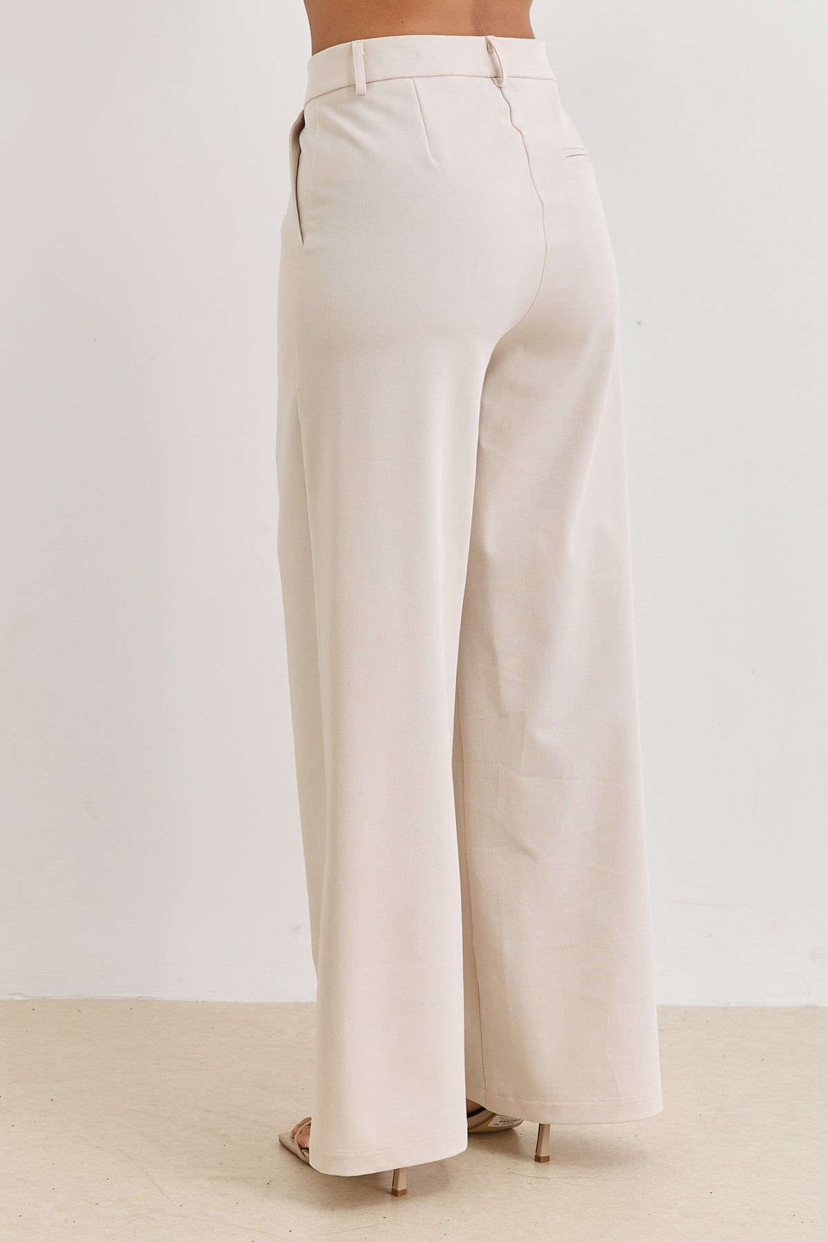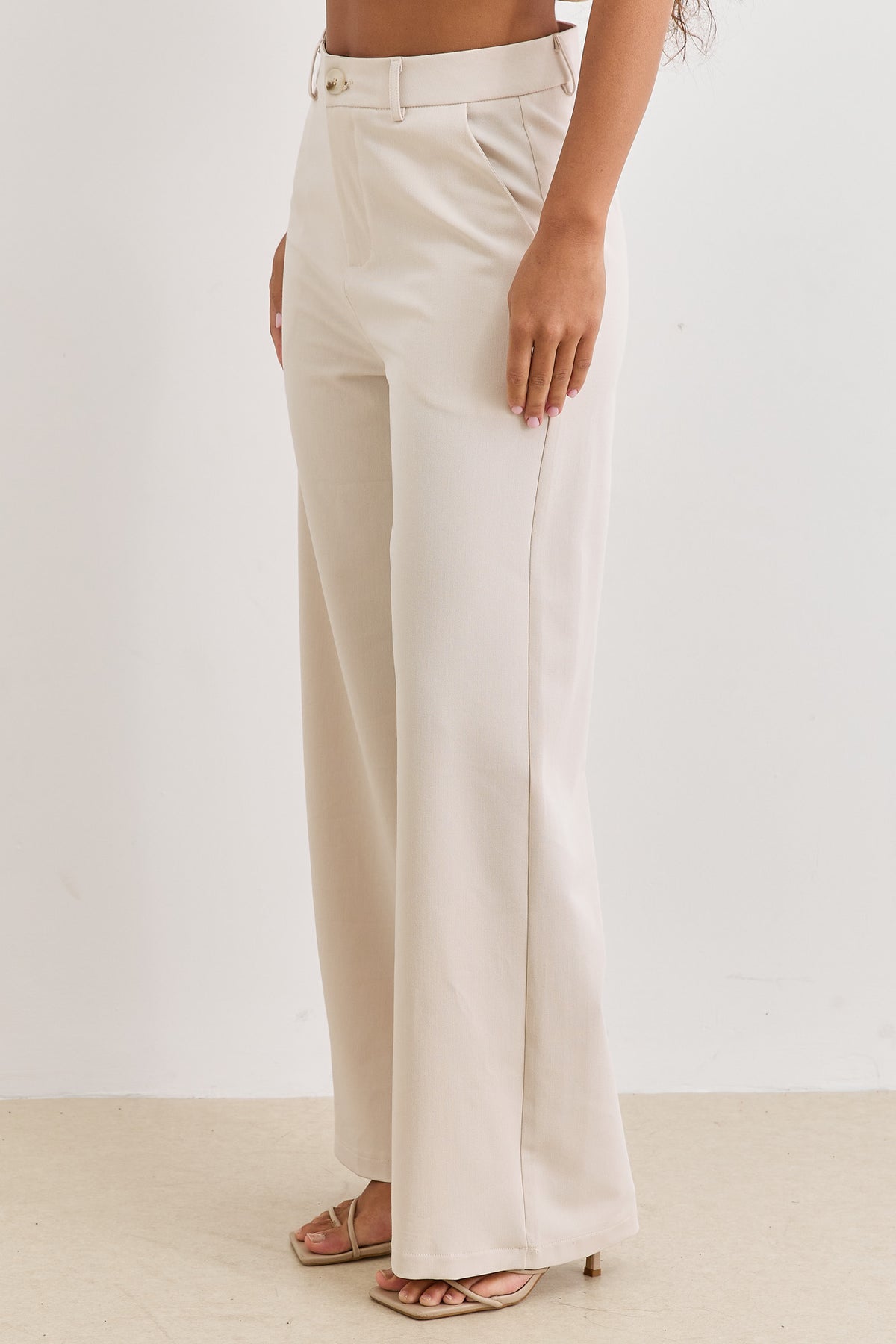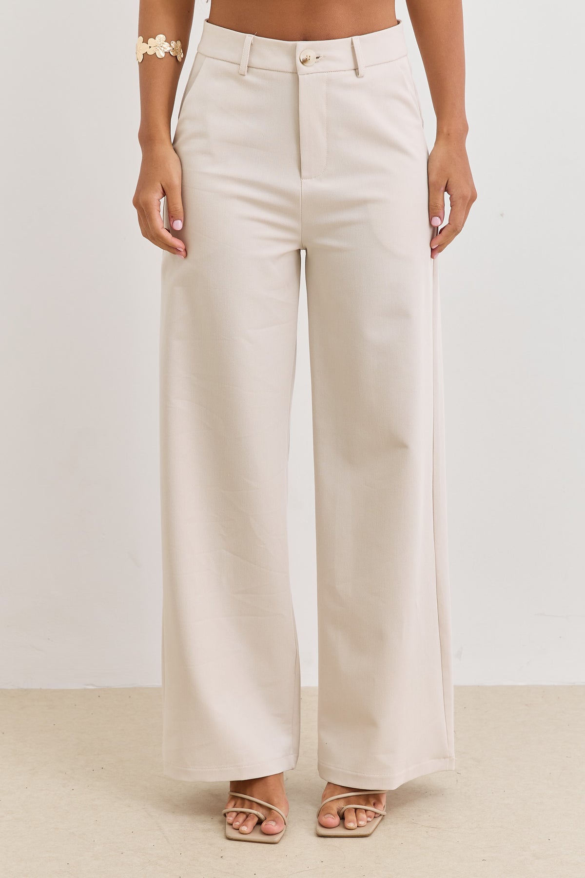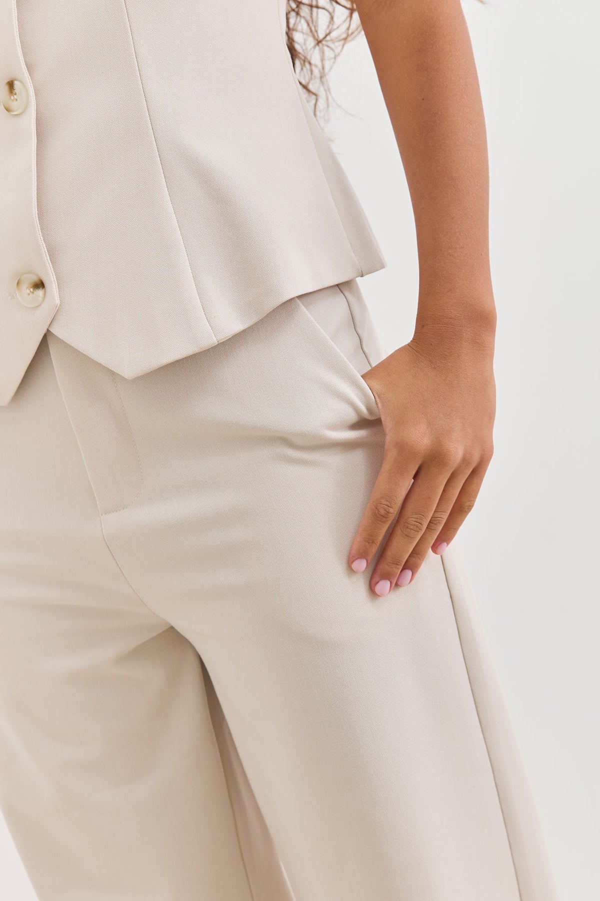 מכנסיים מחויטים בגזרה ישרה עם כיסי צד