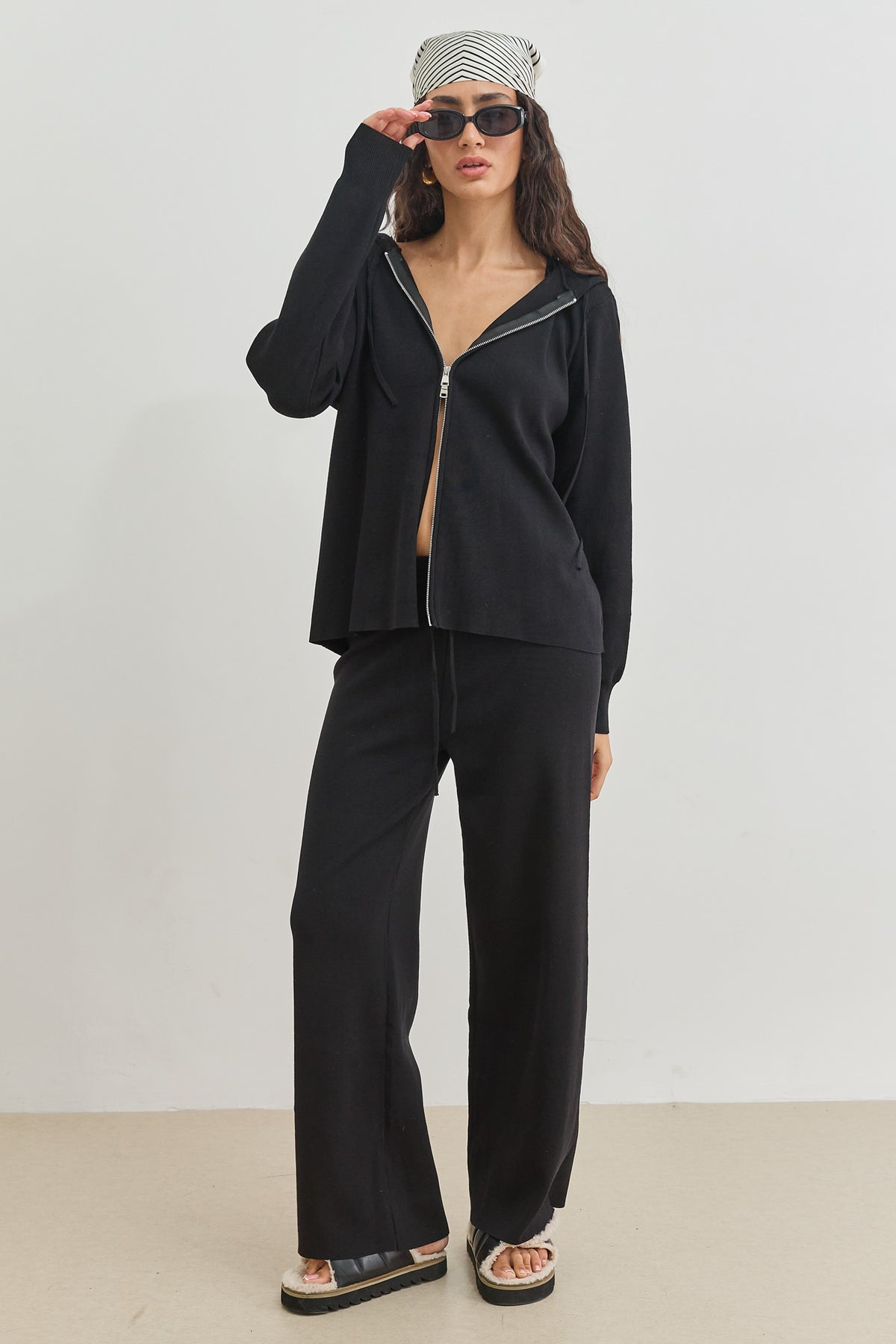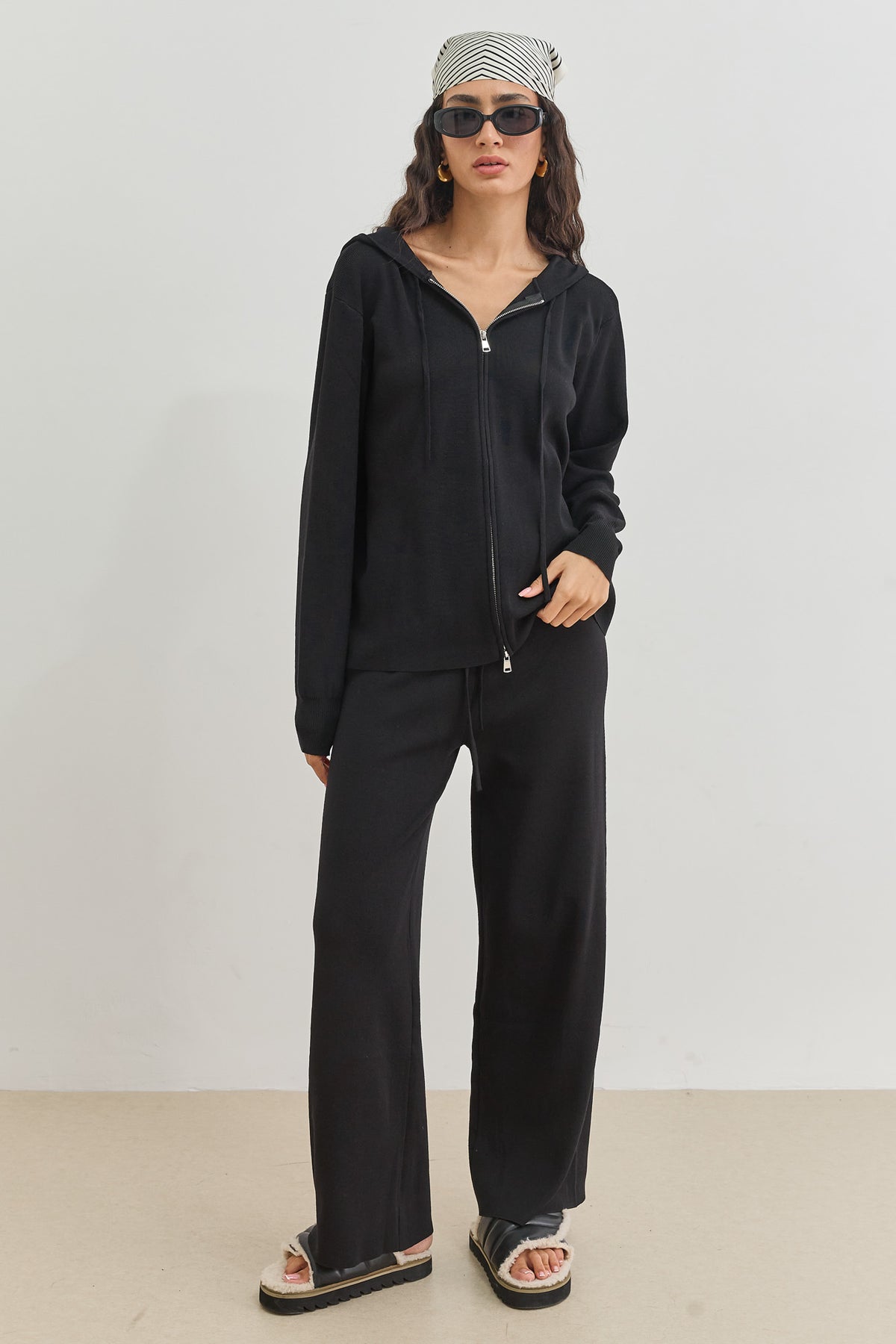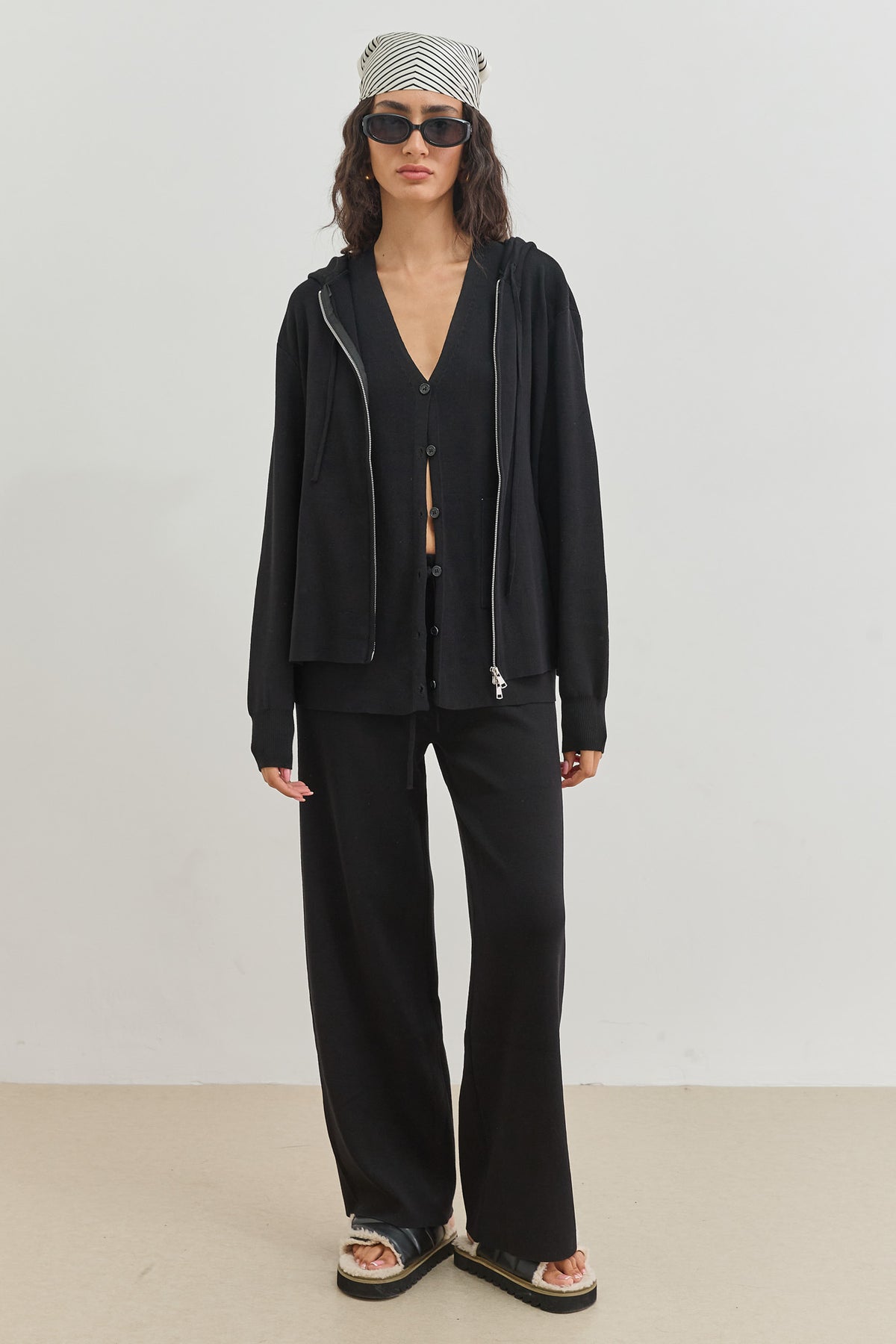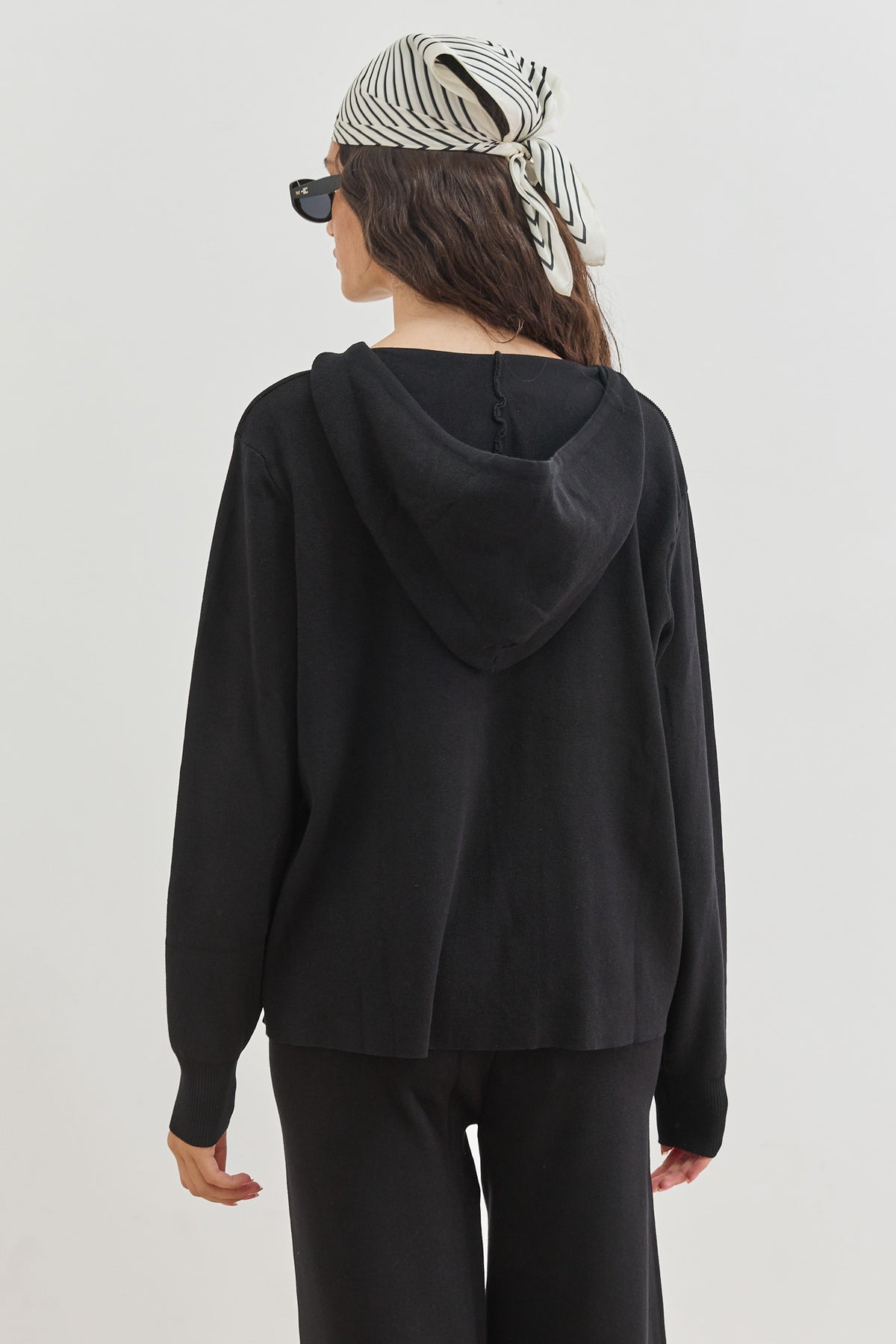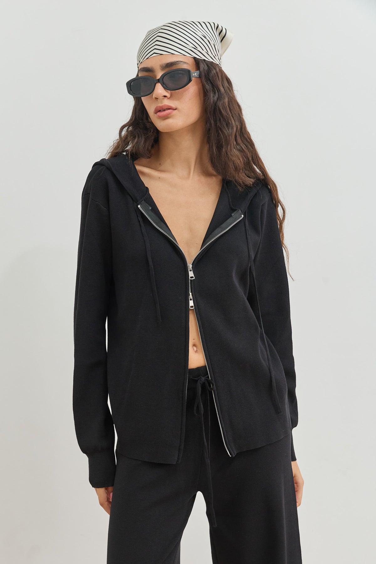 סוויטשירט מבד סריג בשילוב קפוצ'ון וסגירת רוכסן כפולה