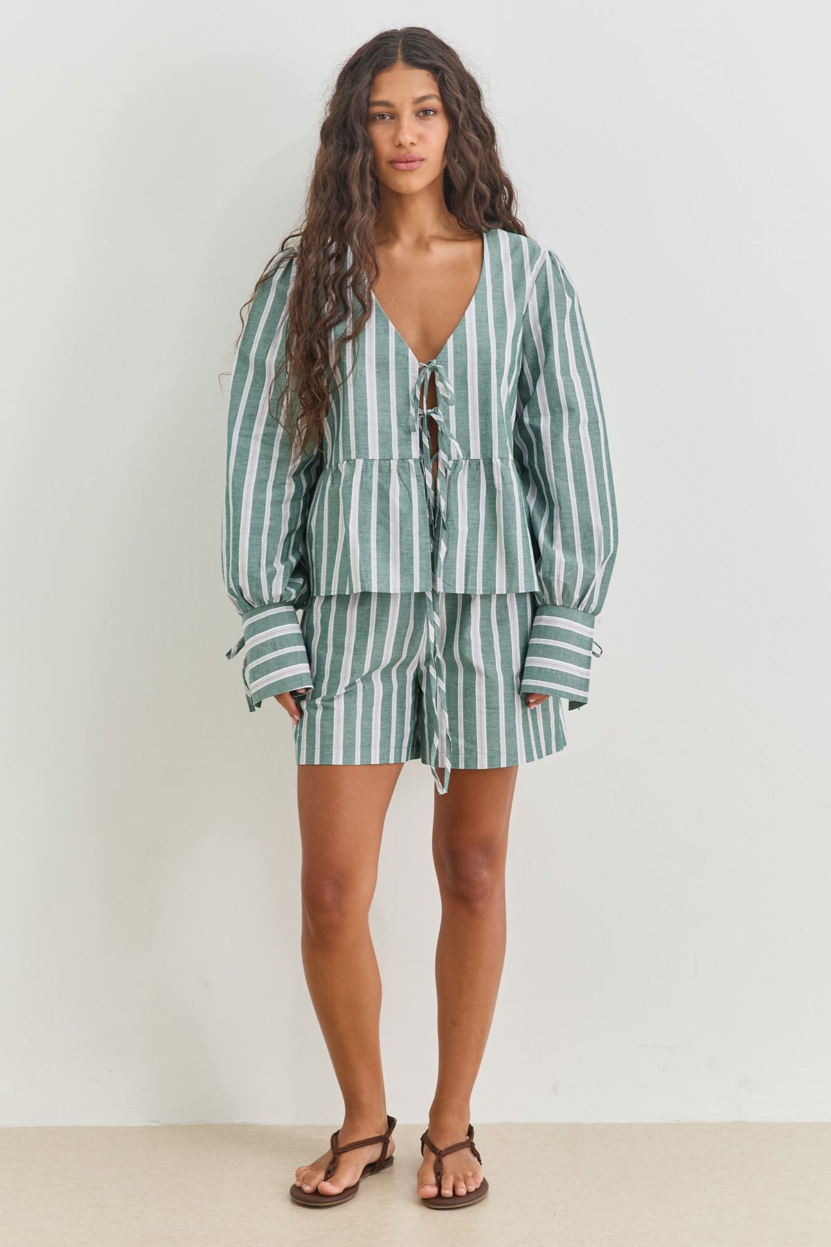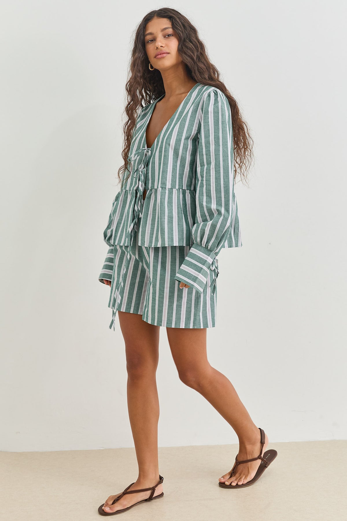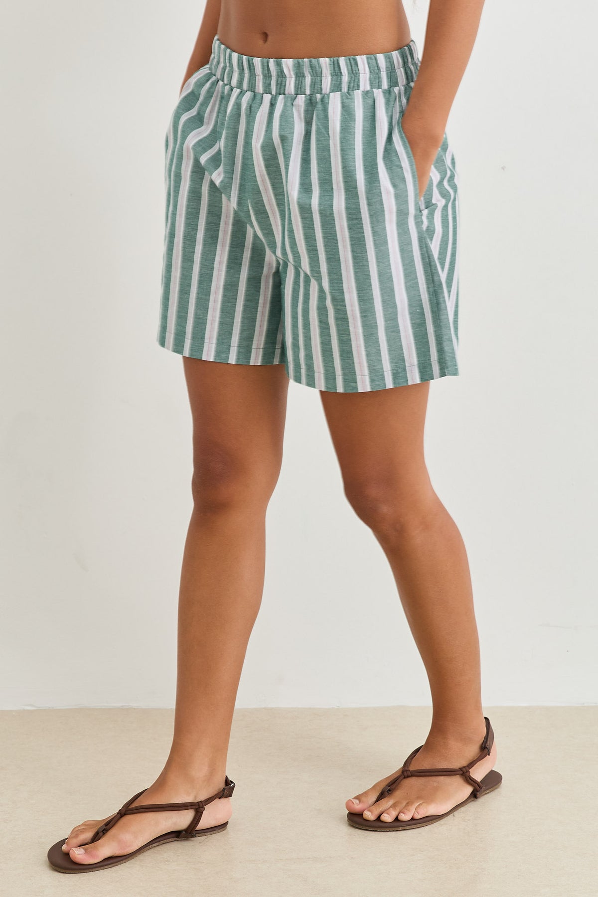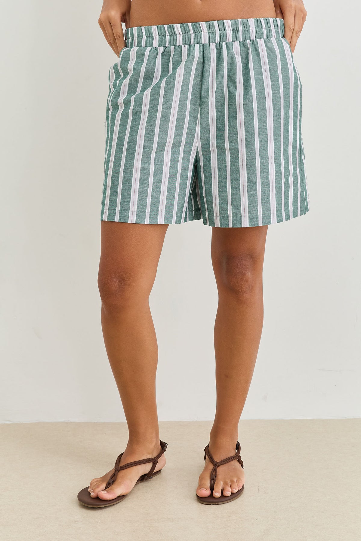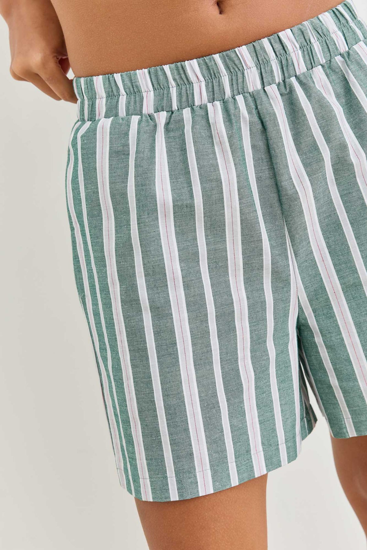 מכנסיים קצרים עם דוגמת פסים כיסים וגומי במותן
