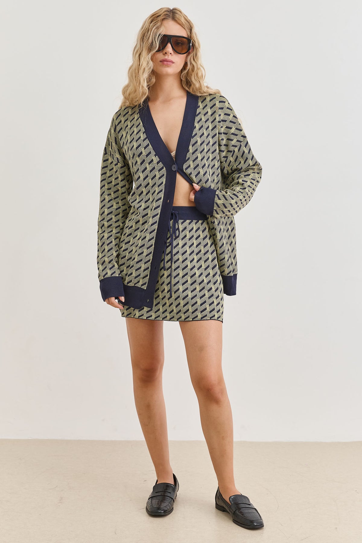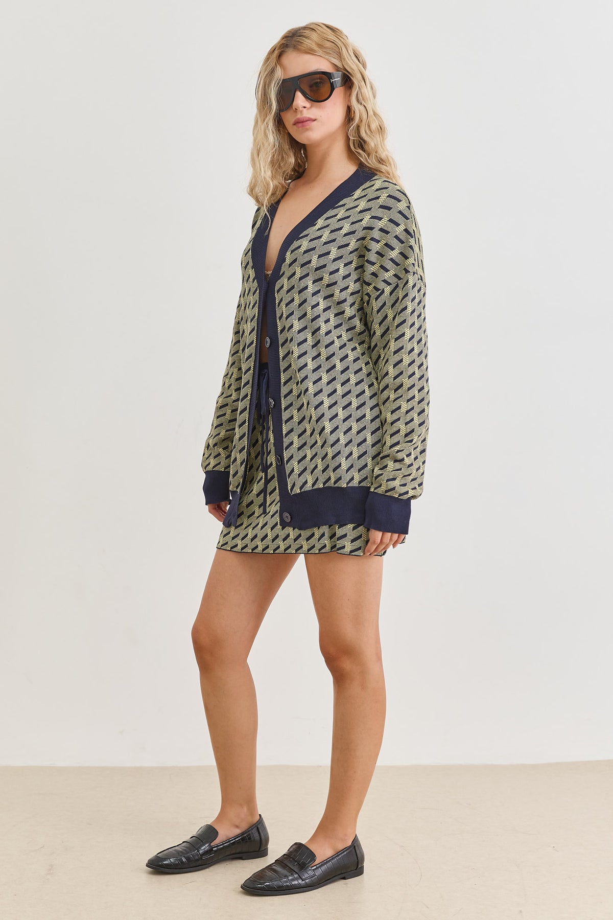 קרדיגן סריג בטקסטורה סרוגה בשילוב כפתורים וצווארון וי