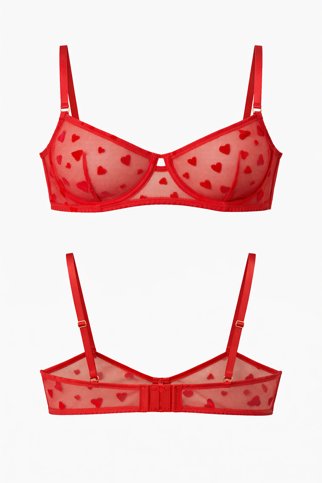 חזייה מבד תחרה עם ברזלים ללא ריפוד, דוגמת ללבות, כתפיות מתכווננות, וסגירה אחורית