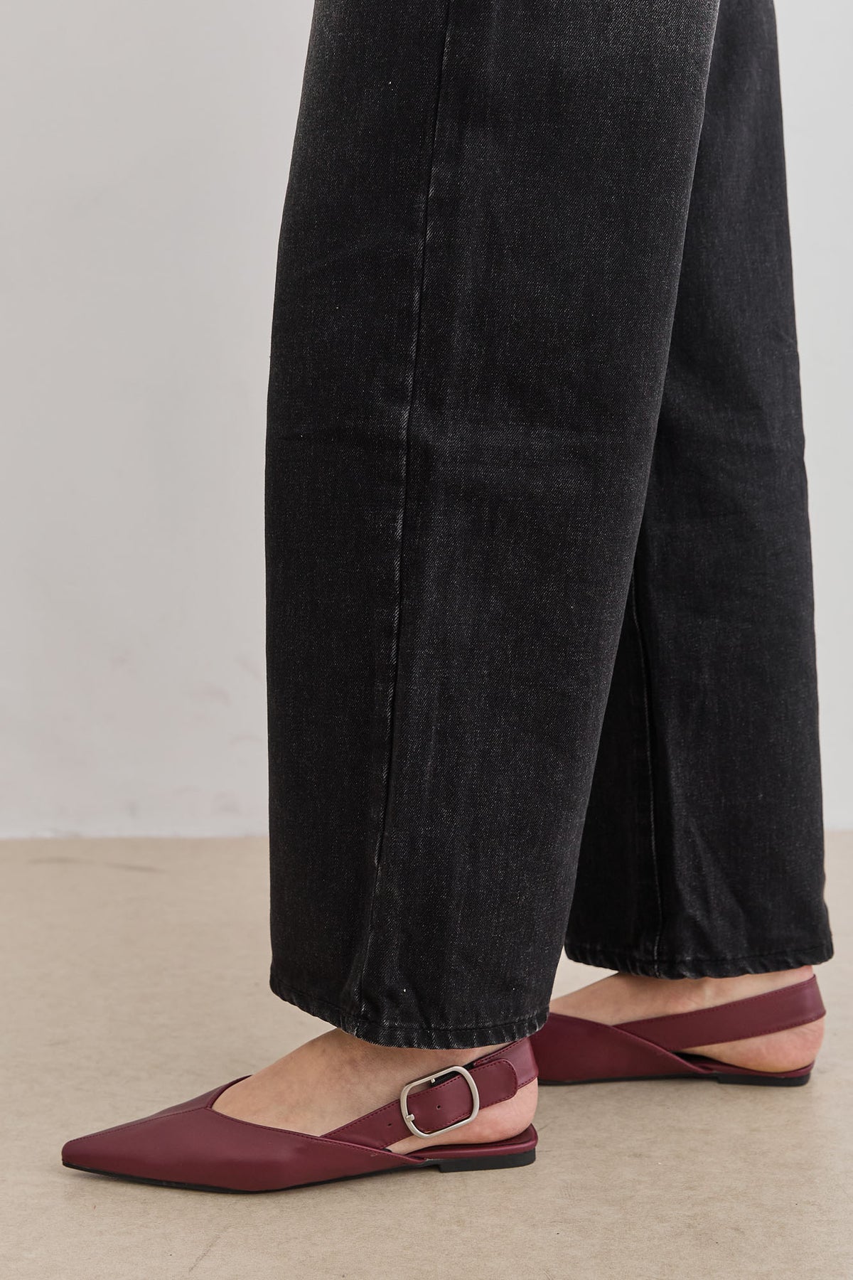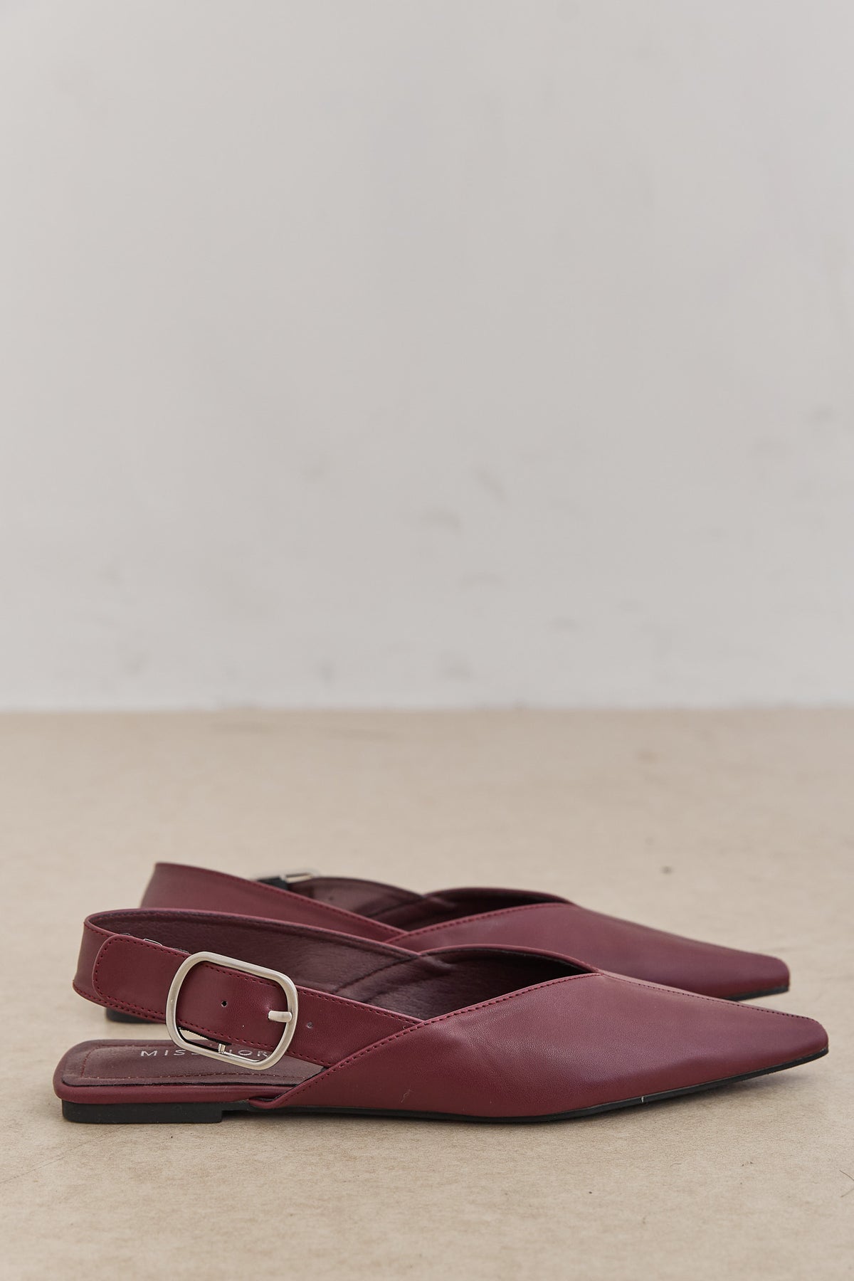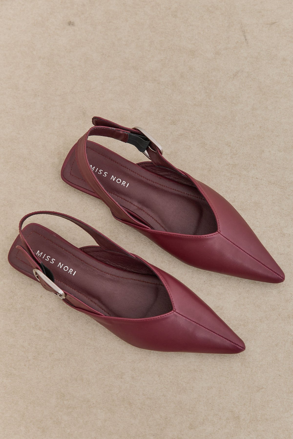 נעלי שפיץ שטוחות בשילוב אבזם כסוף ורצועה אחורית מתכווננת