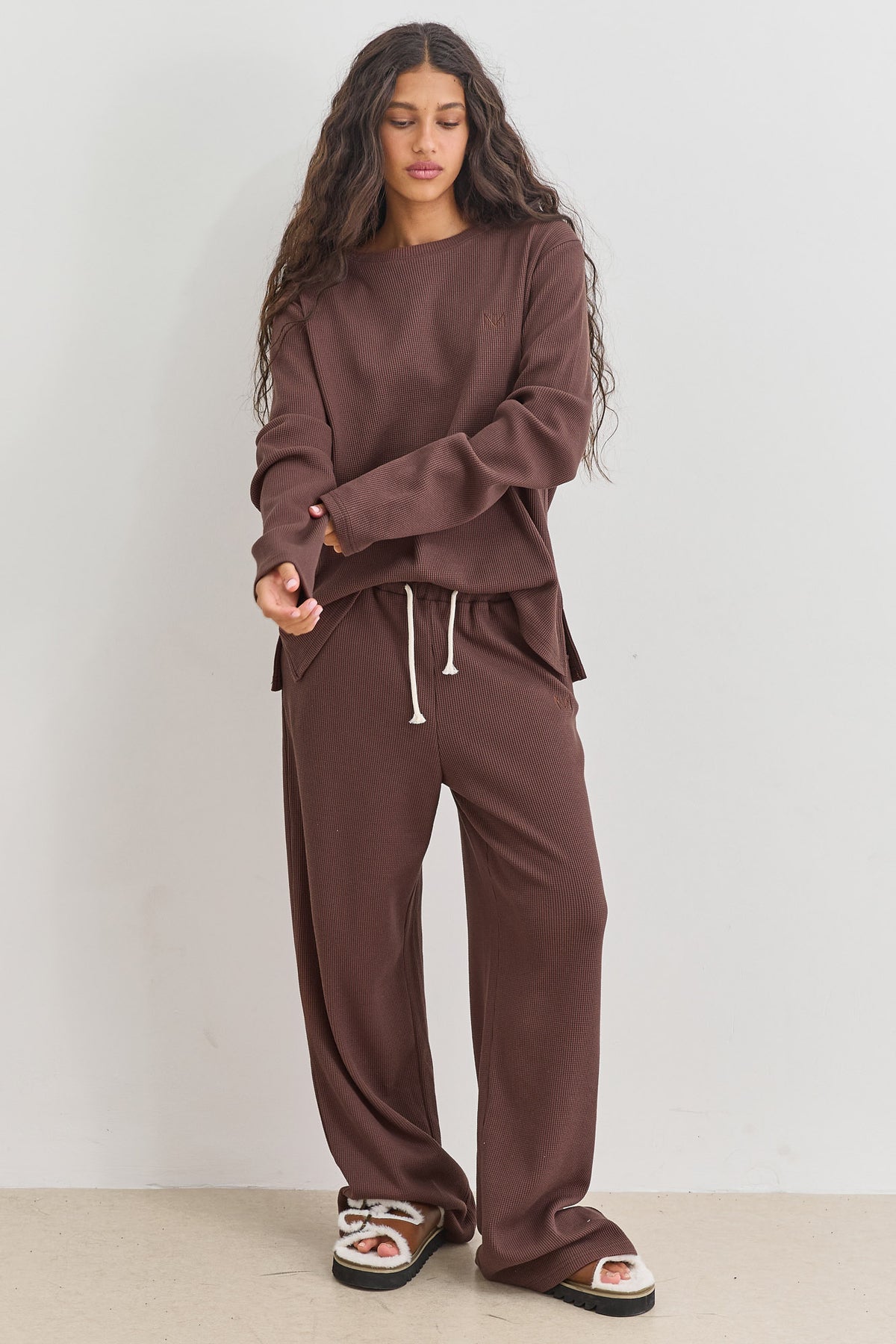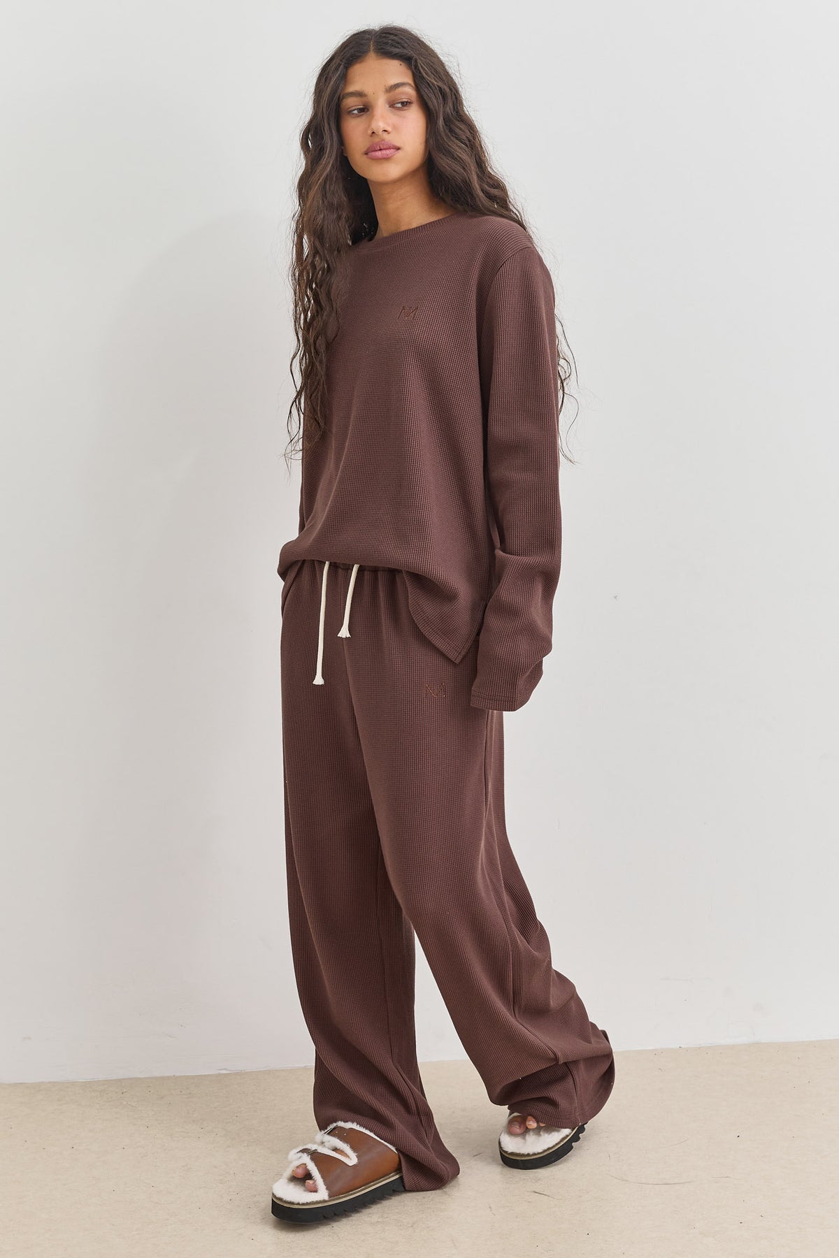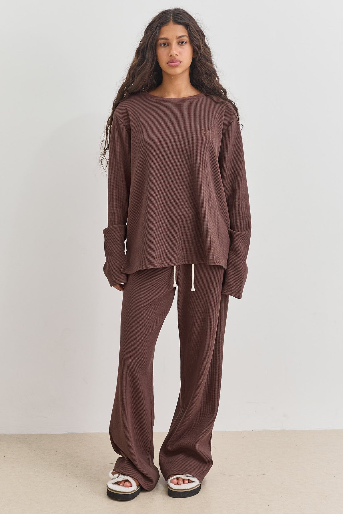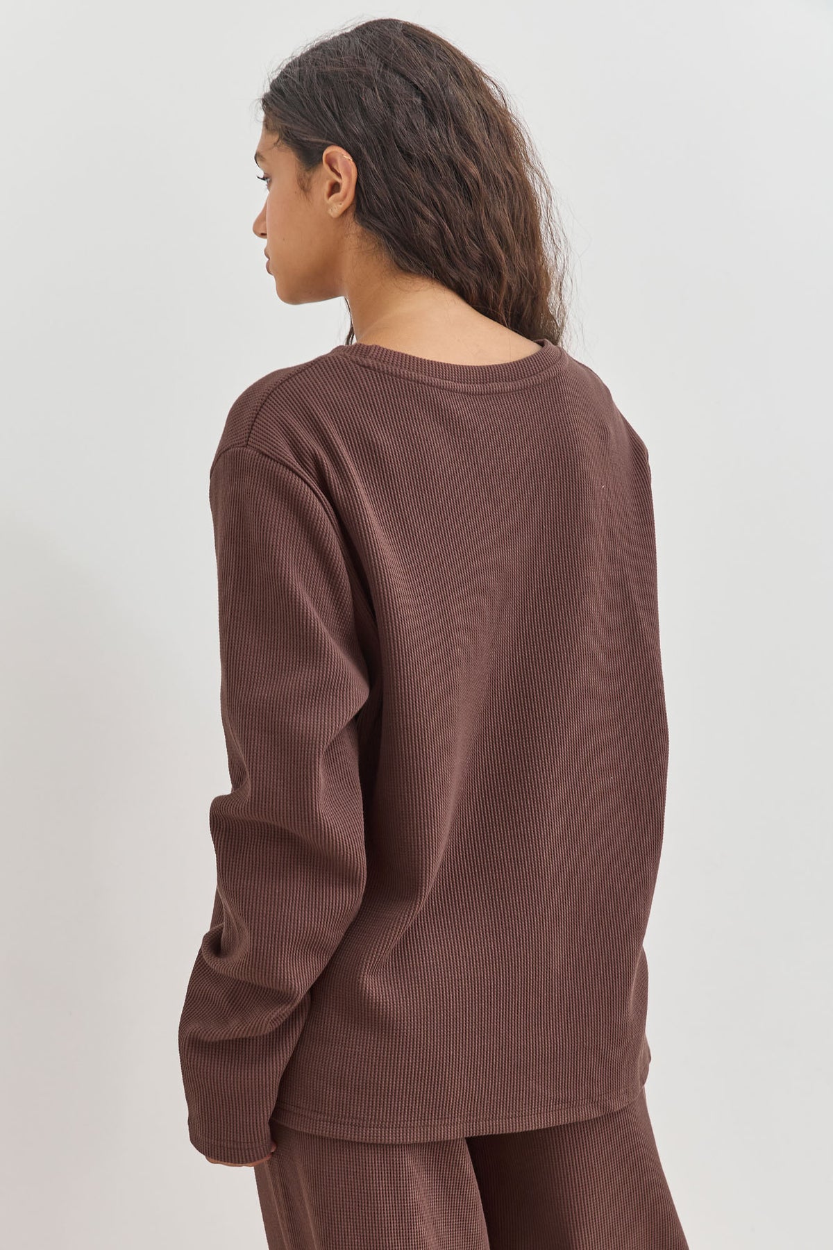 חולצת טי אוברסייז עם שרוולים ארוכים ורקמת לוגו מבד וופל מפנק