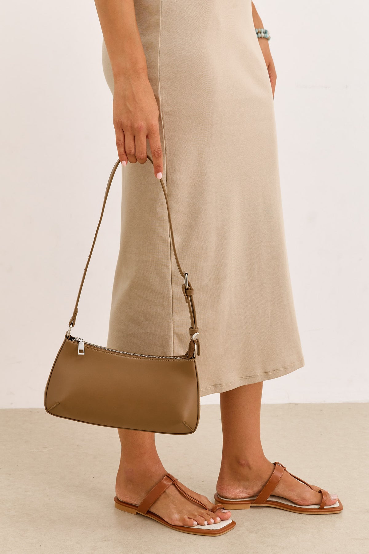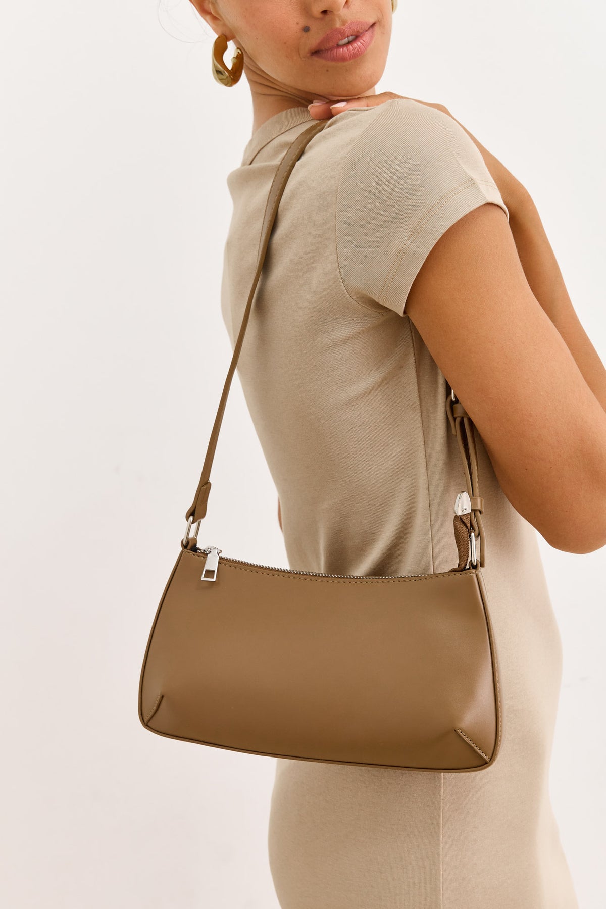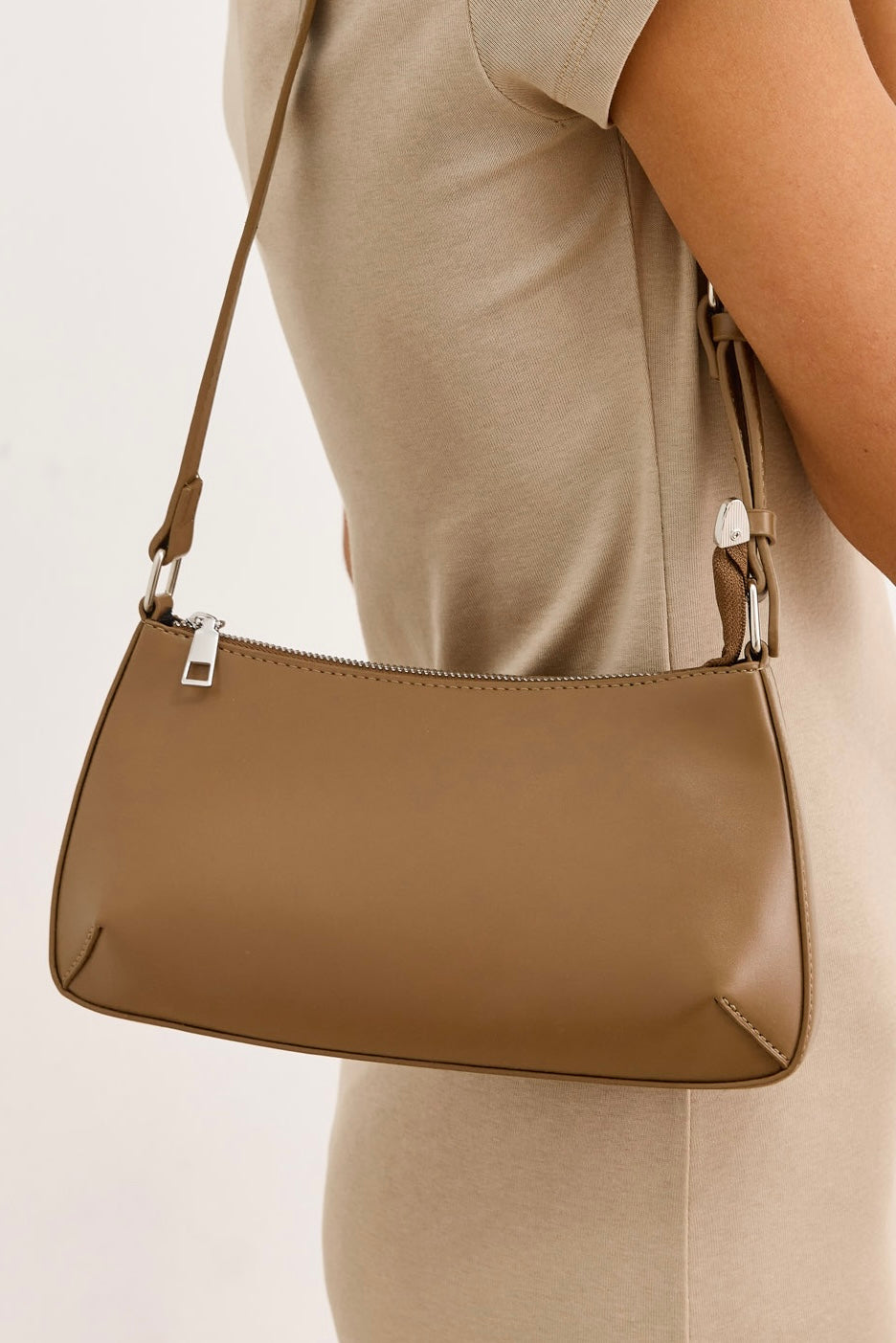תיק צד דמוי עור בסגירת רוכסן, עם רצועה מתכווננת ותא אחסון פנימי יחיד