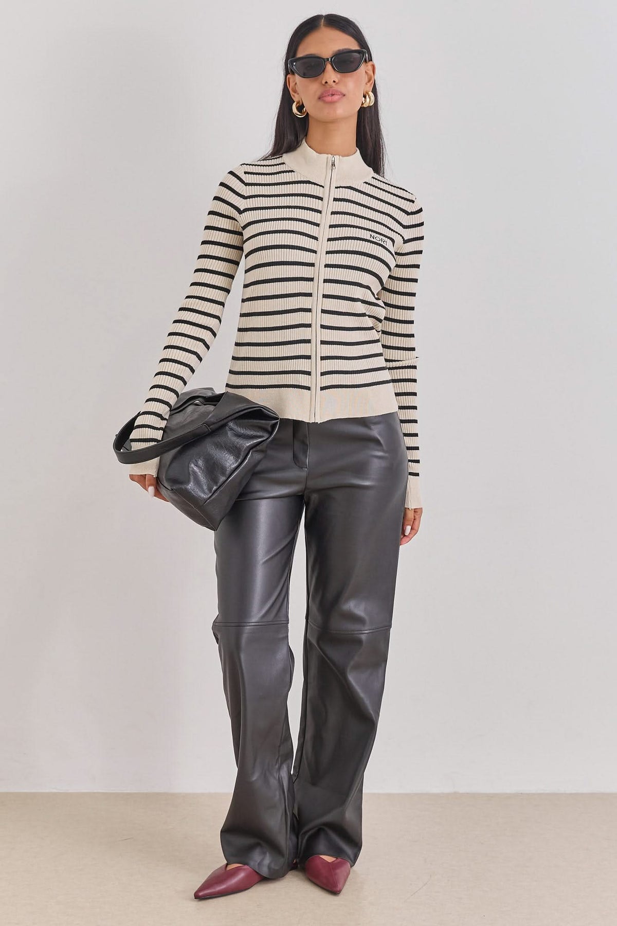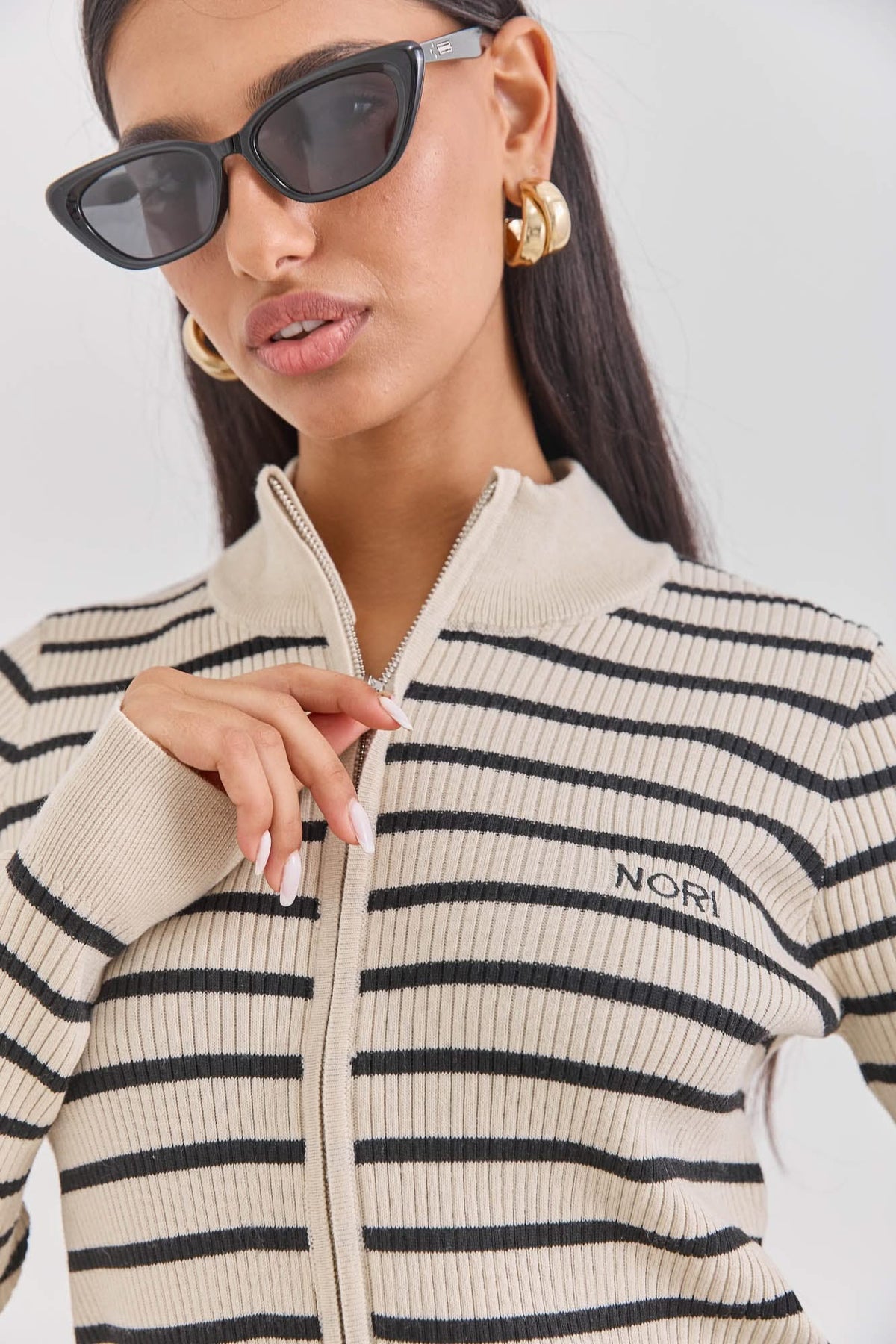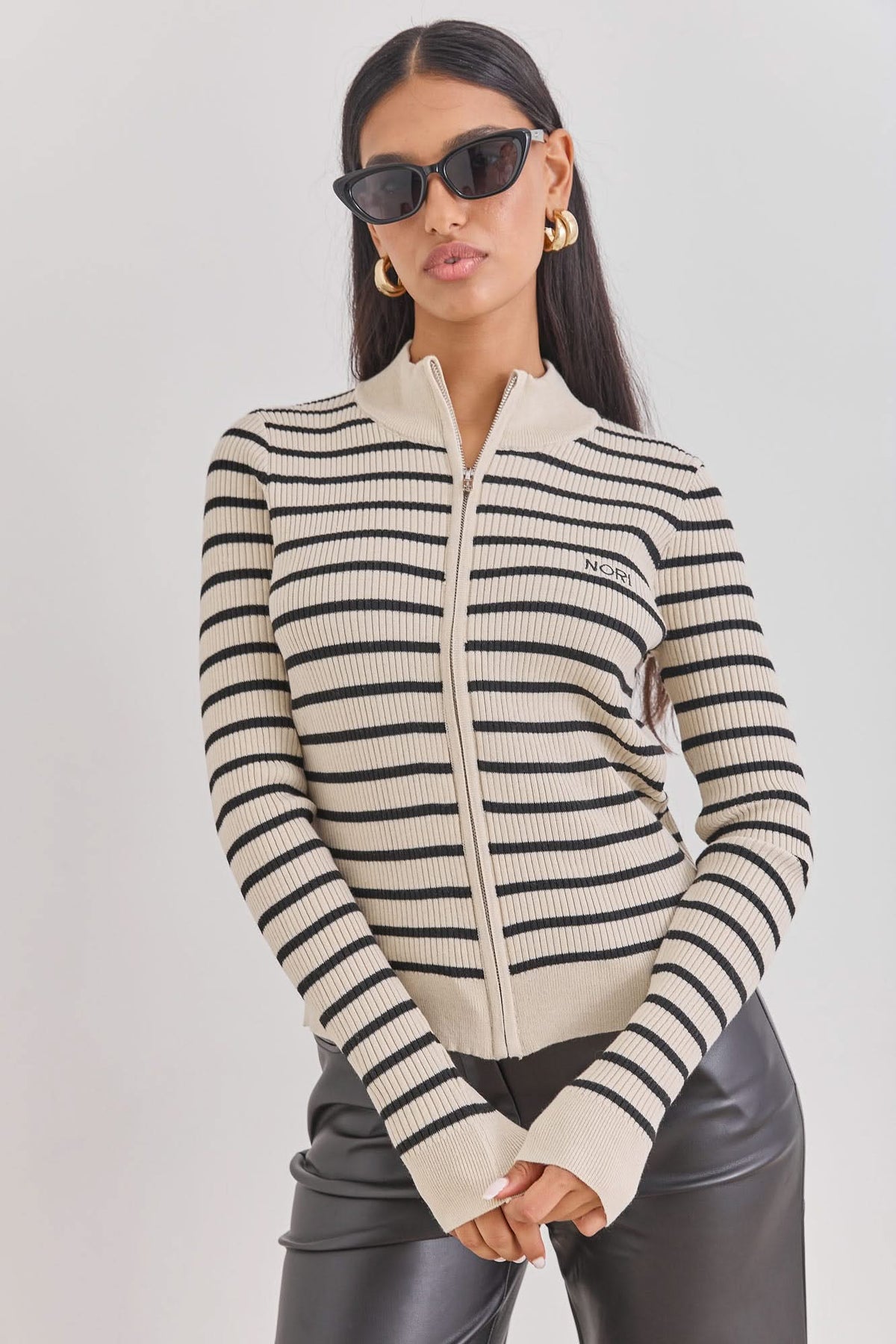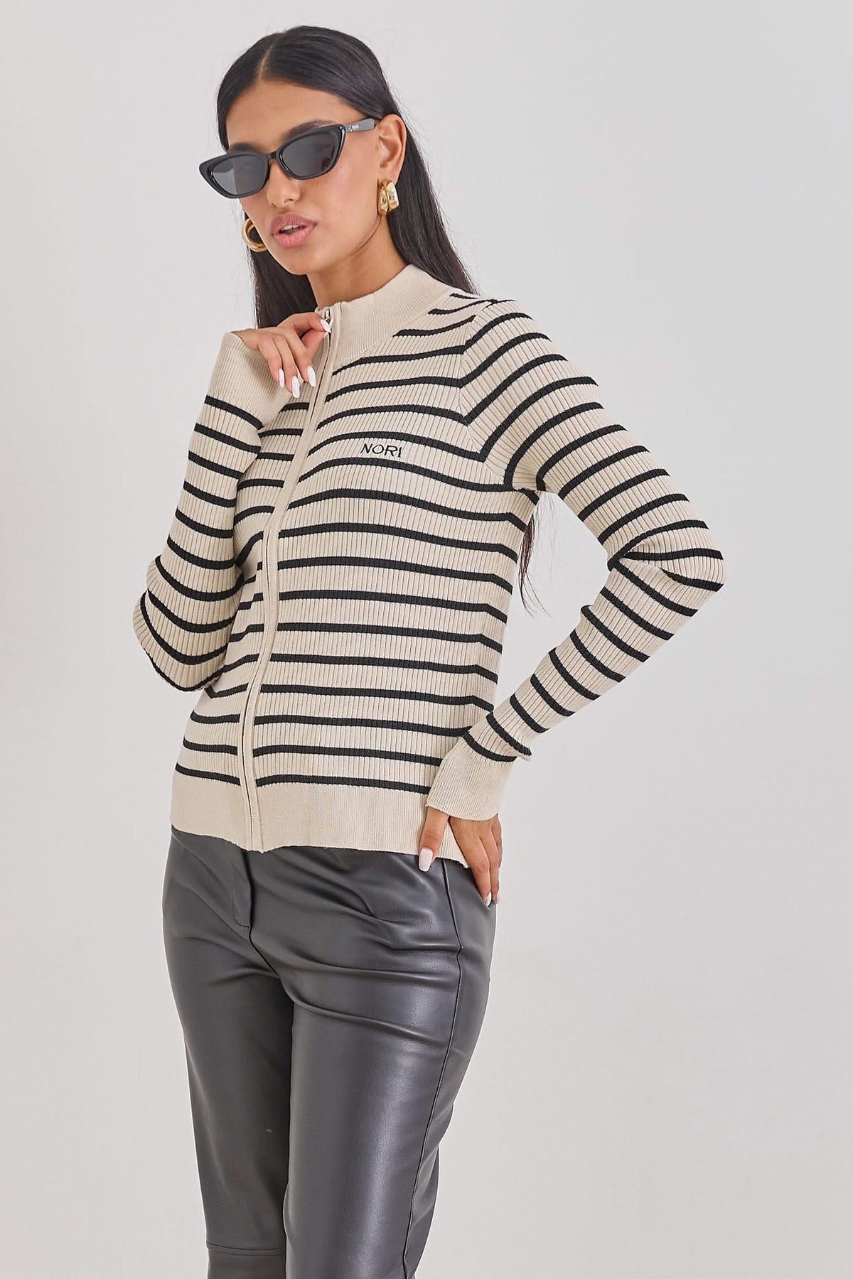 סריג ברי סטרייפס סגירת רוכסן | בז'/שחור