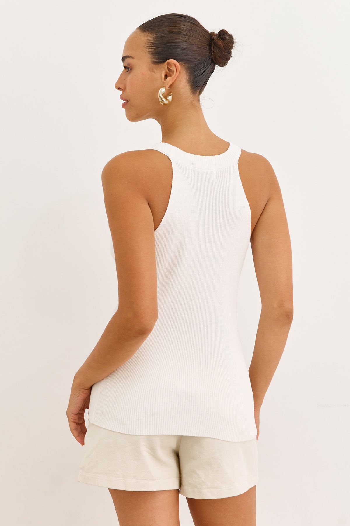 גופייה מבד סריג בשילוב מחשוף וי וסגירת כפתורים